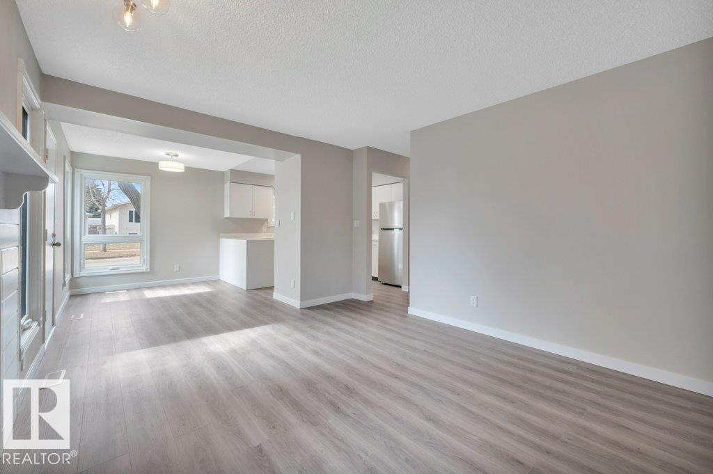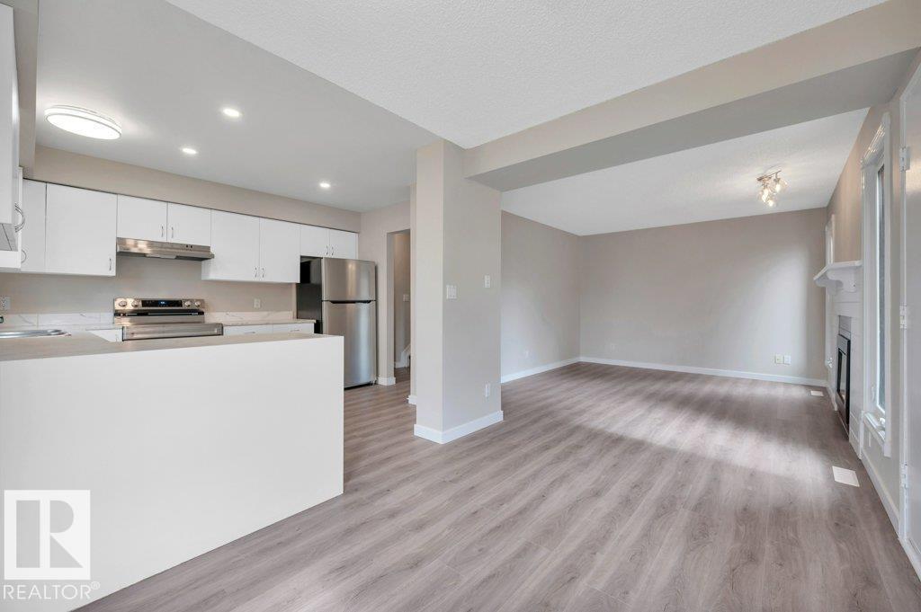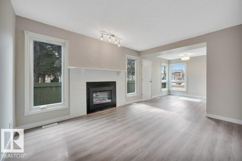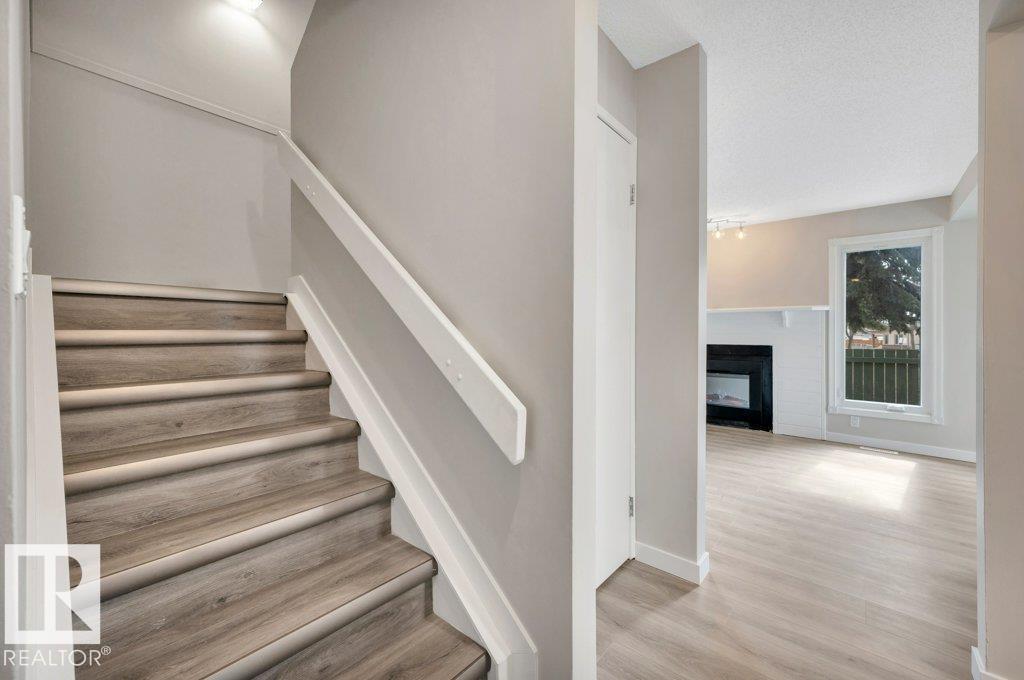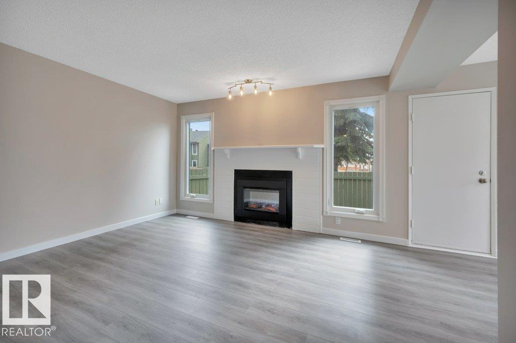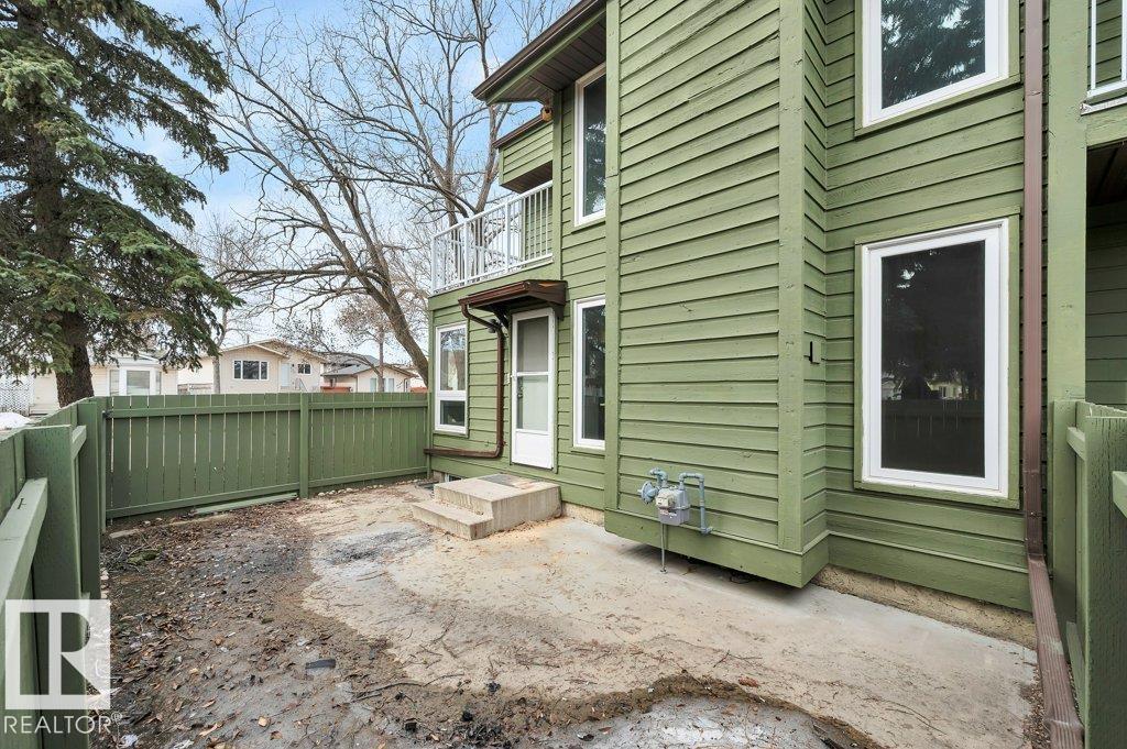 Bright and private end-unit townhouse, perfectly designed for comfortable living. Filled with natural light, the open-concept main floor features a cozy Fireplace, a versatile Den, ideal for a home office or flex space. Upstairs offers three spacious bedrooms, including the Master Bedroom with a walk-in closet and a private balcony. This home has been freshly painted and showcases durable luxury vinyl plank and laminate flooring throughout. The unfinished basement provides endless potential for future development. Enjoy the convenience of a single attached garage and a fully fenced, low-maintenance backyard, newer windows and roof, this home offers peace of mind. Located in a highly desirable area with easy access to Anthony Henday, and just minutes from Andorra Lake, Lago Lindo School, parks, and the community league, this is an ideal opportunity for families, first-time buyers, or investors (id:63190)