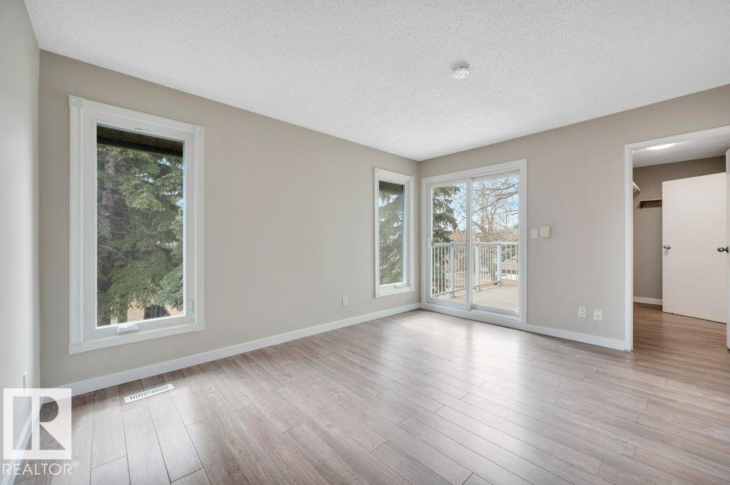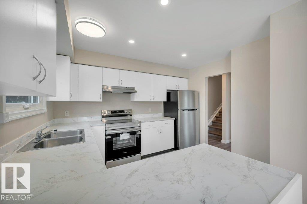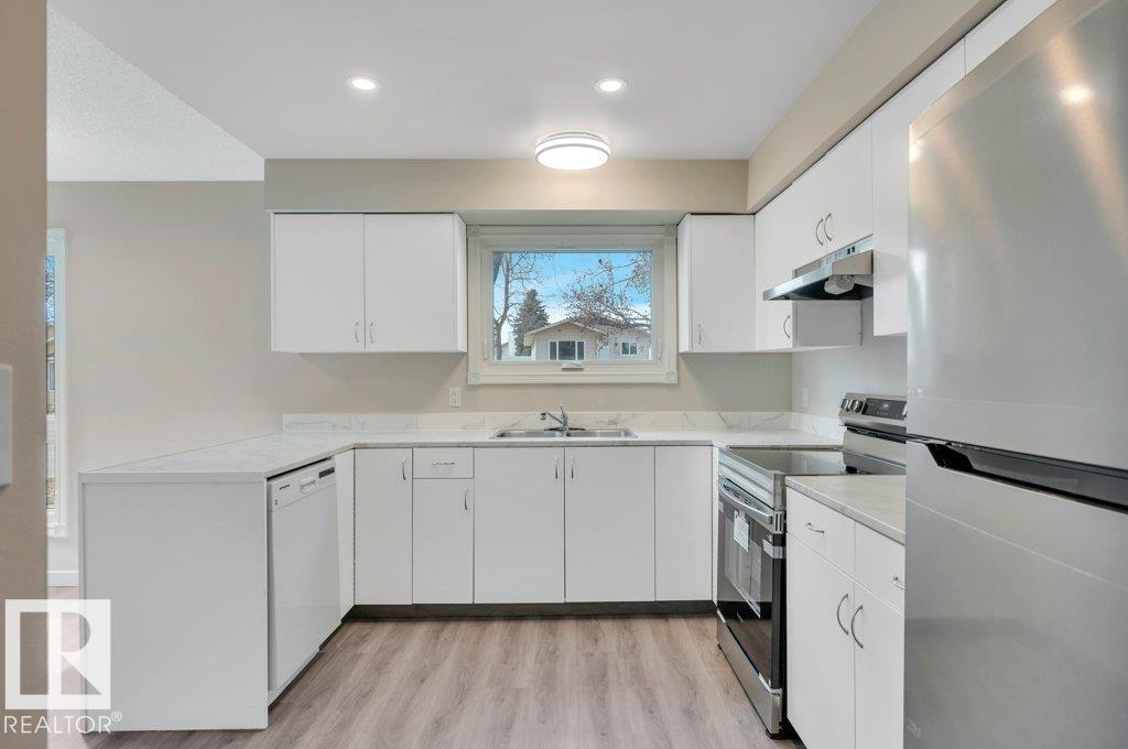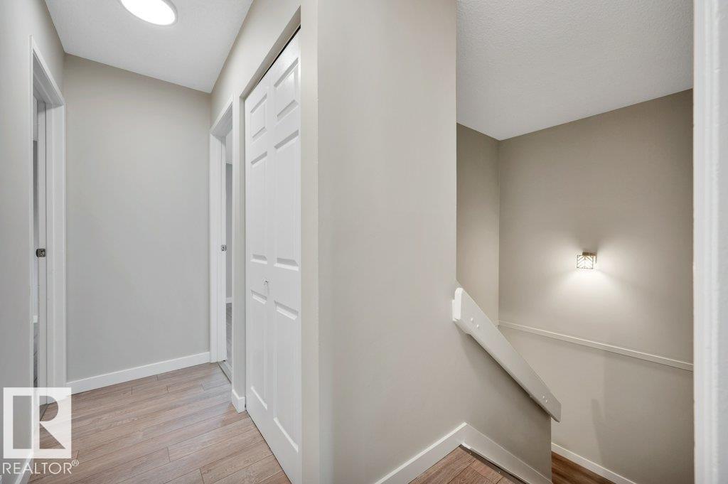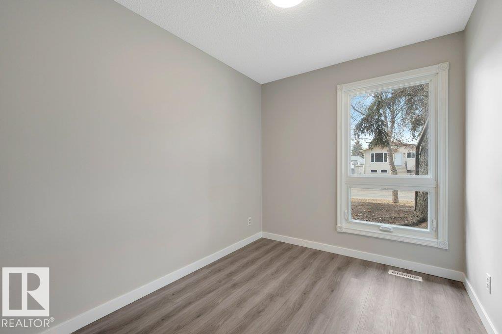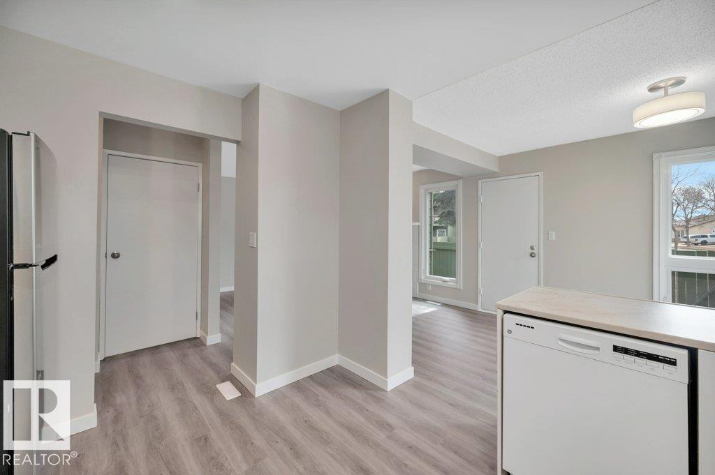 Bright and private end-unit townhouse, perfectly designed for comfortable living. Filled with natural light, the open-concept main floor features a cozy Fireplace, a versatile Den, ideal for a home office or flex space. Upstairs offers three spacious bedrooms, including the Master Bedroom with a walk-in closet and a private balcony. This home has been freshly painted and showcases durable luxury vinyl plank and laminate flooring throughout. The unfinished basement provides endless potential for future development. Enjoy the convenience of a single attached garage and a fully fenced, low-maintenance backyard, newer windows and roof, this home offers peace of mind. Located in a highly desirable area with easy access to Anthony Henday, and just minutes from Andorra Lake, Lago Lindo School, parks, and the community league, this is an ideal opportunity for families, first-time buyers, or investors (id:63190)