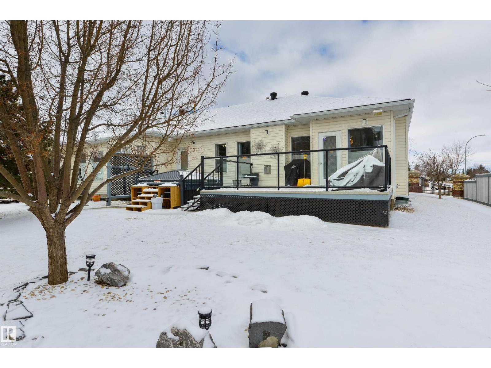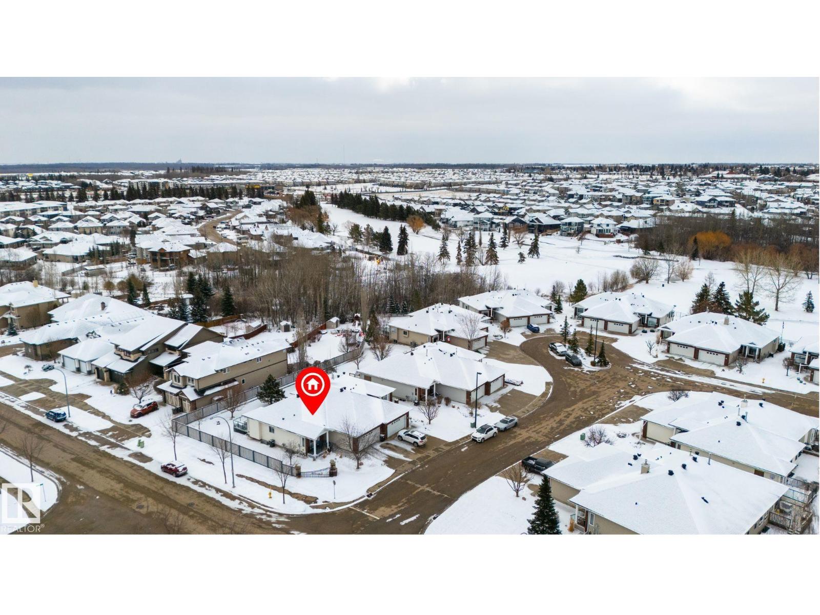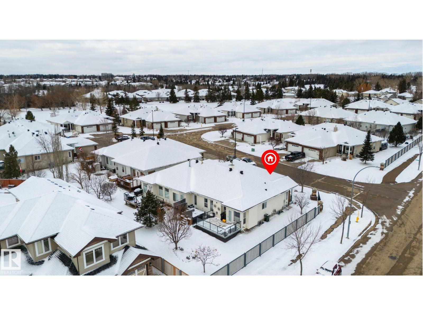 Downsize without compromise in Fairway 8 – one of Spruce Grove’s most established 55+ adult-living communities, where seasonal outdoor maintenance (lawn & snow) is covered by the HOA. This home has been thoughtfully updated throughout, with a full main floor renovation completed in 2021 and the basement done in Sept. 2025. The main floor is anchored by a chef's kitchen with granite counters, stainless appliances, corner pantry, and a separate dinette (with a garden door leading out to the deck), a large living room with gas fireplace, dedicated office/den, main-floor laundry, 3pc bath, and a king-sized owner's suite with a walk-in closet and 5pc ensuite. Downstairs adds exceptional value: in-floor heat, a wet bar, large rec room, two additional bedrooms, and a 3pc bath. Complete with new shingles (2021), underground sprinklers, and a double-attached garage, this home offers low-maintenance living in one of Spruce Grove's most desirable adult communities. (id:63190)