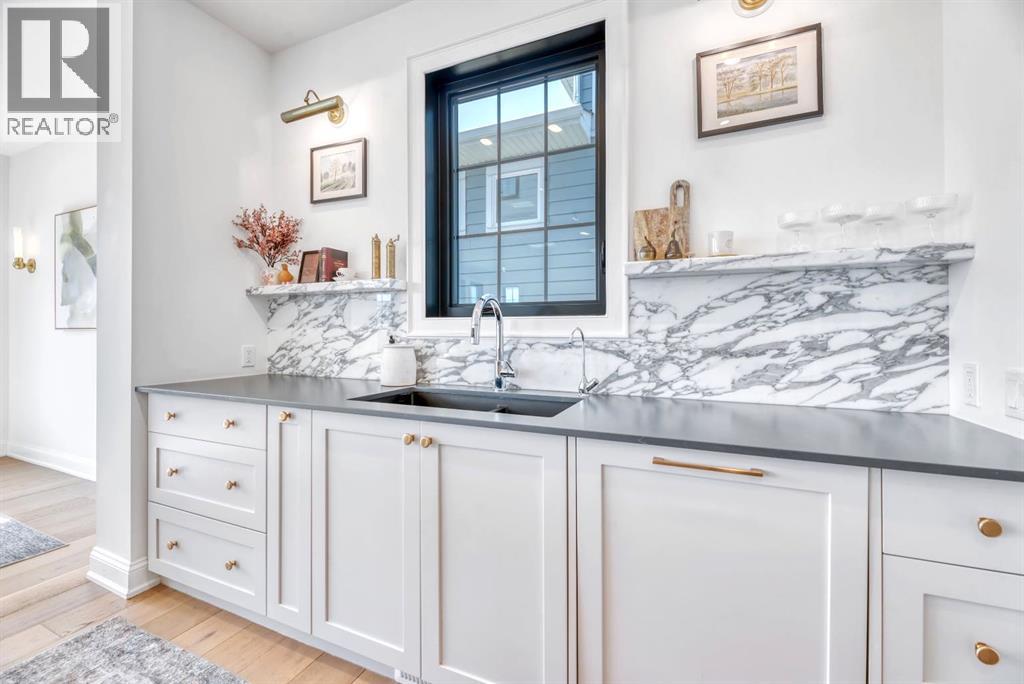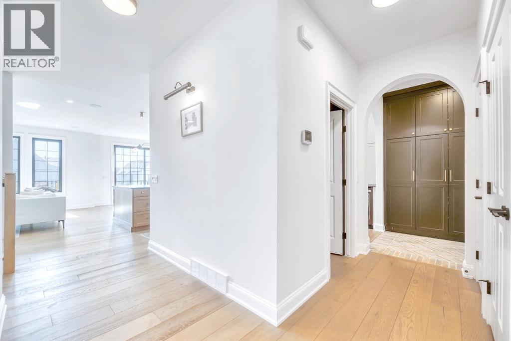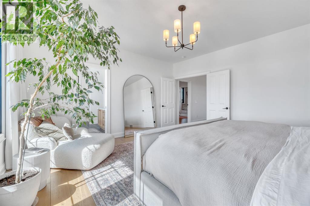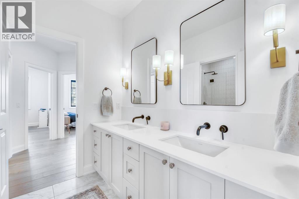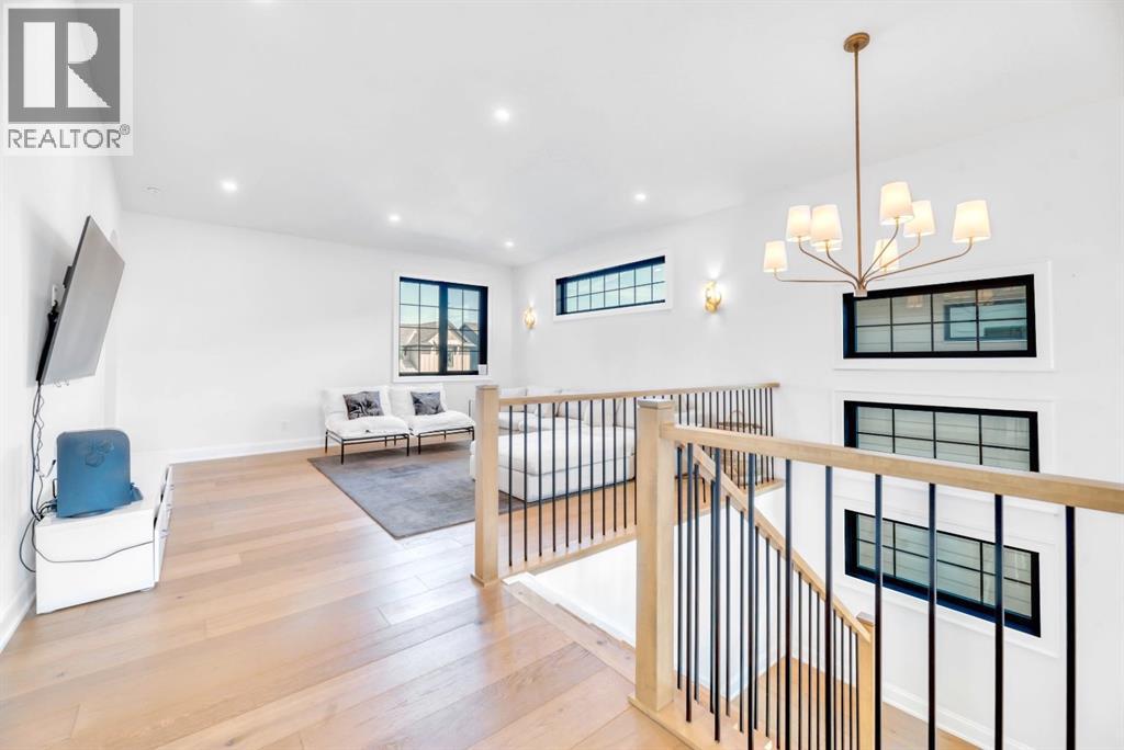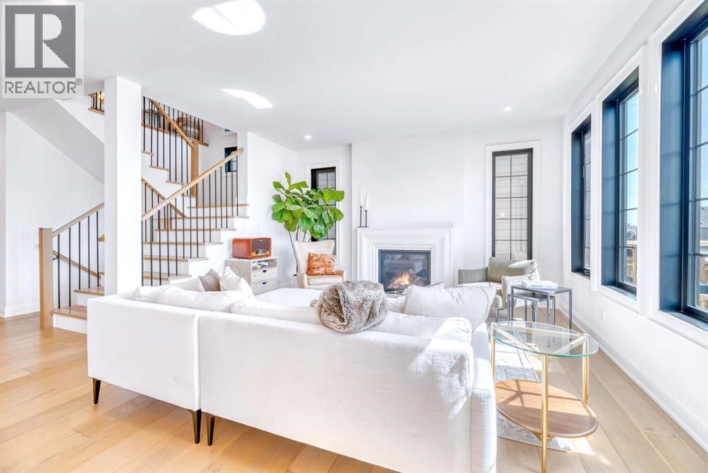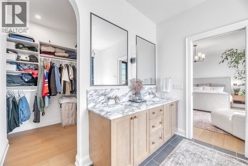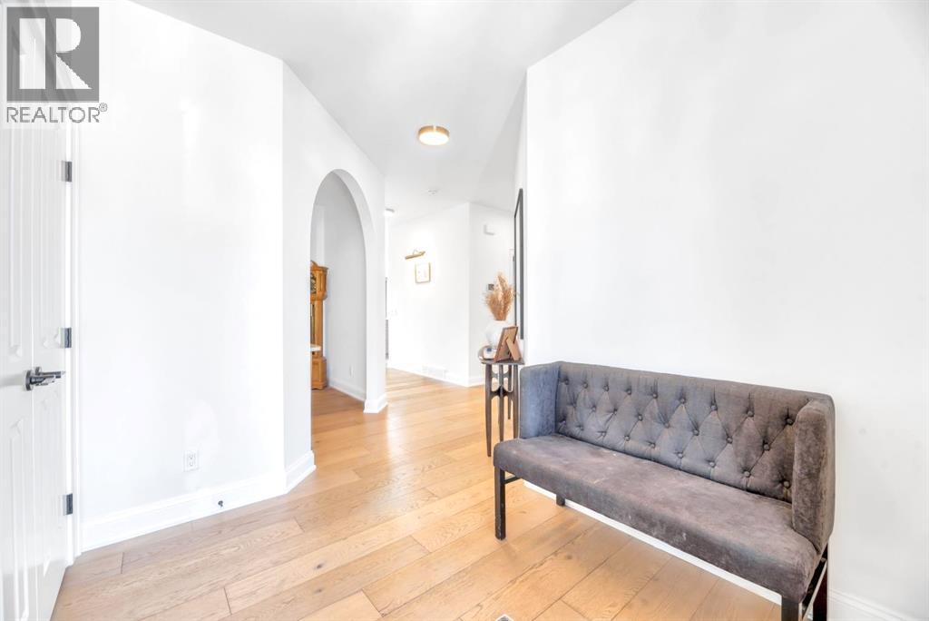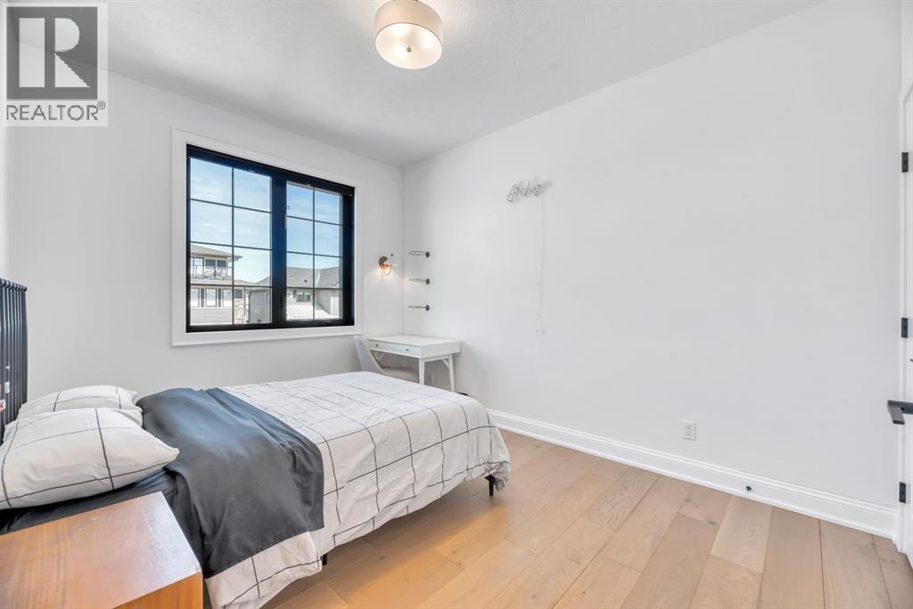 Welcome to an architecturally inspired Organic Modern residence in the award-winning lake community of Harmony—where elevated design meets an unmatched lifestyle just minutes west of Calgary. Enjoy quick access to the city, the renowned Mickelson National Golf Club, and a growing collection of amenities including the lake, beach, pathways, parks, and future village centre—offering a rare blend of recreation, convenience, and community. This modern transitional home offers over 2,700 sq ft of thoughtfully curated living space, combining clean architectural lines with warm, organic finishes. From the moment you arrive, the herringbone brick walkway, soft neutral palette, and striking black-framed windows set the tone for what’s inside. Step into a light-filled interior defined by wide plank natural white oak flooring, soaring ceilings, and custom archways that soften the modern aesthetic and create a sense of flow throughout. The main floor features a stylish front office/den, perfect for working from home, while the open-concept living space is both refined and inviting. At the heart of the home is a stunning designer kitchen that perfectly captures today’s most sought-after style—featuring marble backsplash, marble and honed quartz surfaces, panel-ready appliances, and an induction cooktop with a concealed hood fan. A thoughtfully designed coffee bar and walk-through pantry connect seamlessly to the mudroom, where custom cabinetry and chevron brick flooring elevate everyday function with designer flair. Upstairs, the home continues to impress with 4 spacious bedrooms plus a lofted bonus room with a half-vault ceiling, creating a bright and airy retreat. The primary suite is a true sanctuary, complete with custom drapery and a spa-inspired ensuite featuring floating vanities, wall-mounted faucets, a freestanding soaker tub with bath filler, and a large glass-encased marble shower. The main bathroom is ideal for family living, offering a smart layout with a separate v anity area from the water closet. Every detail has been carefully selected—from champagne bronze hardware and custom lighting to elevated millwork, trim, and finishes throughout—creating a cohesive, high-end aesthetic that feels both modern and timeless. Outdoor living is equally impressive with a composite deck (with storage below), stone patio, and hot tub, plus gas lines to the deck, patio, and garage—perfect for entertaining year-round. Additional features include hot and cold exterior taps, Gemstone permanent soffit lighting, a reverse osmosis system, and a sunshine basement filled with natural light and ready for future development. Sod will be completed as weather permits. Complete with a double attached garage and located in one of the most desirable communities in the Calgary area, this home offers a rare opportunity to own a design-forward, move-in ready property in Harmony. Modern. Warm. Effortlessly elevated. (id:63190)