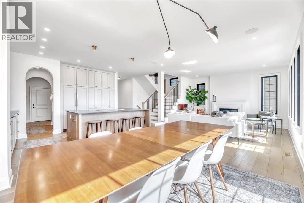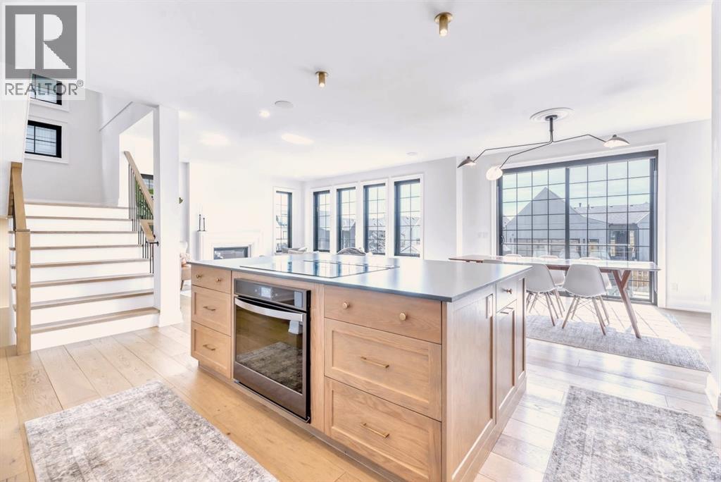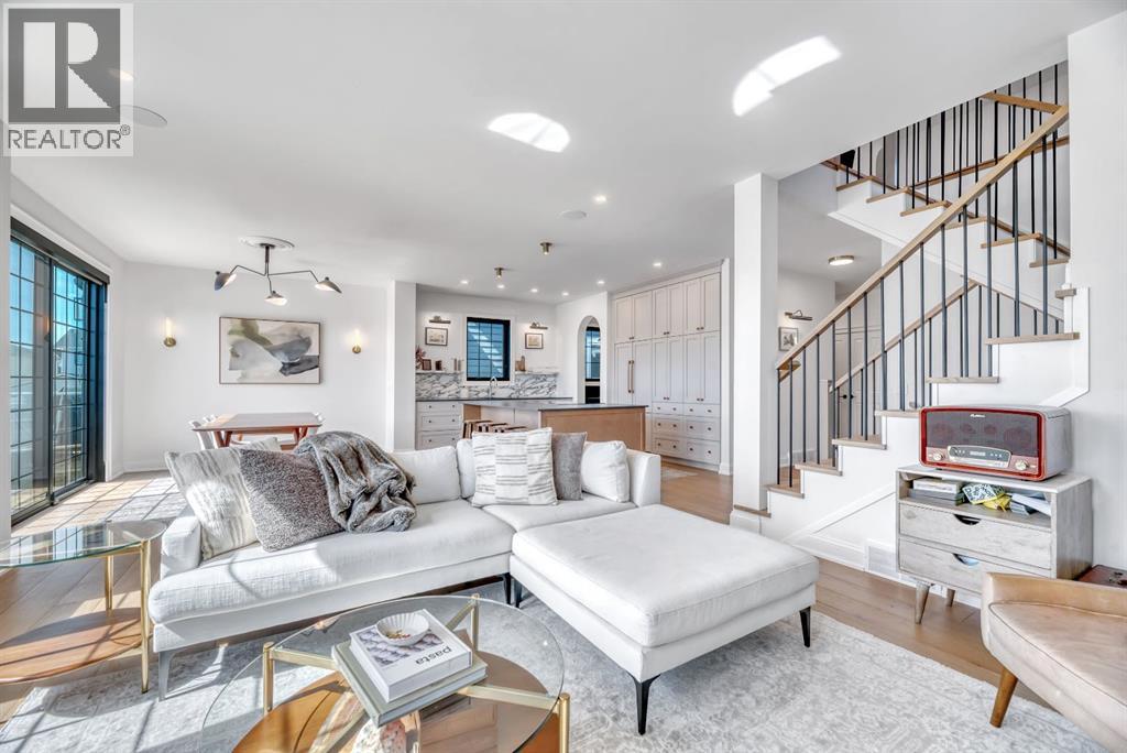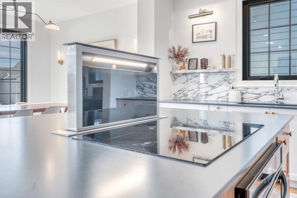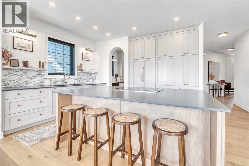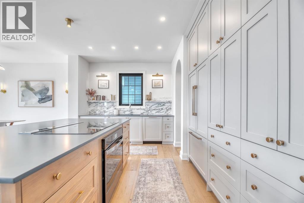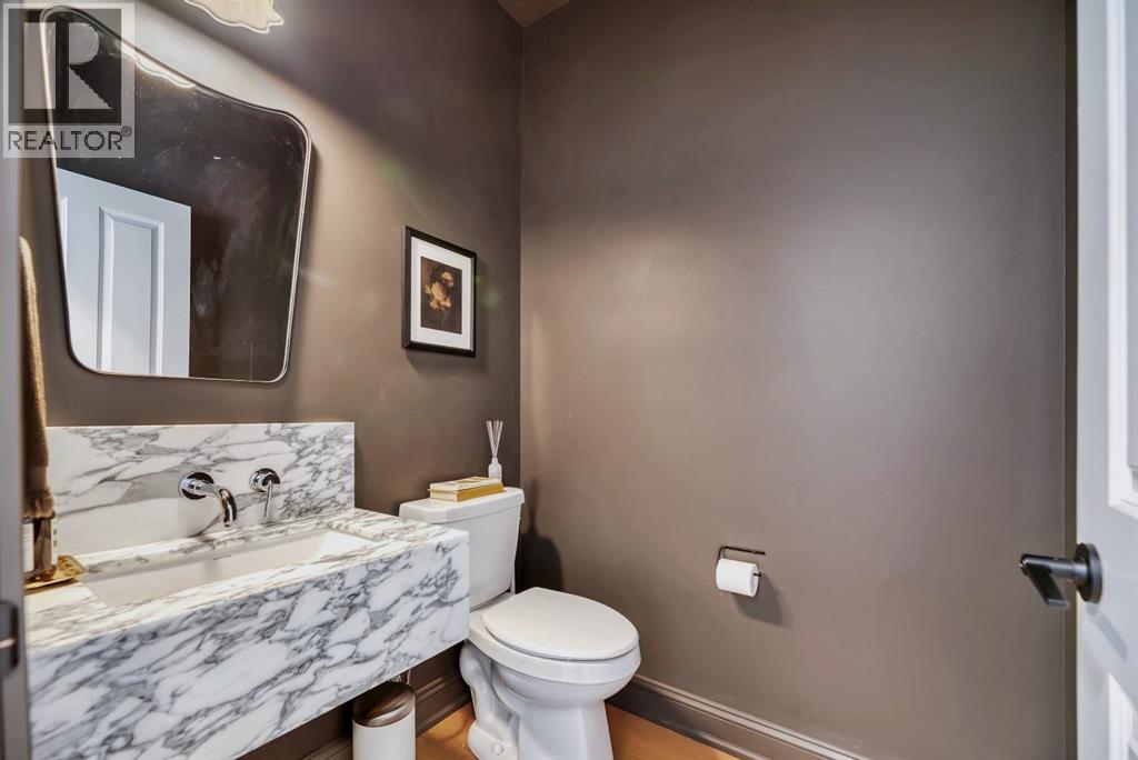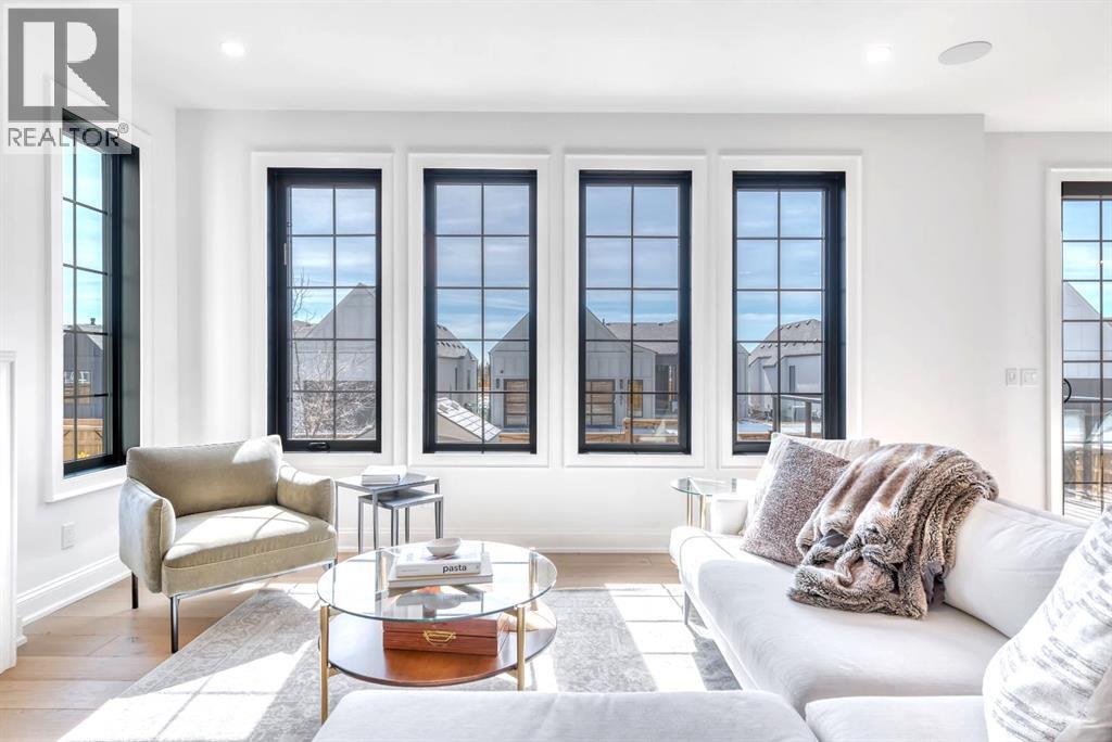 Welcome to an architecturally inspired Organic Modern residence in the award-winning lake community of Harmony—where elevated design meets an unmatched lifestyle just minutes west of Calgary. Enjoy quick access to the city, the renowned Mickelson National Golf Club, and a growing collection of amenities including the lake, beach, pathways, parks, and future village centre—offering a rare blend of recreation, convenience, and community. This modern transitional home offers over 2,700 sq ft of thoughtfully curated living space, combining clean architectural lines with warm, organic finishes. From the moment you arrive, the herringbone brick walkway, soft neutral palette, and striking black-framed windows set the tone for what’s inside. Step into a light-filled interior defined by wide plank natural white oak flooring, soaring ceilings, and custom archways that soften the modern aesthetic and create a sense of flow throughout. The main floor features a stylish front office/den, perfect for working from home, while the open-concept living space is both refined and inviting. At the heart of the home is a stunning designer kitchen that perfectly captures today’s most sought-after style—featuring marble backsplash, marble and honed quartz surfaces, panel-ready appliances, and an induction cooktop with a concealed hood fan. A thoughtfully designed coffee bar and walk-through pantry connect seamlessly to the mudroom, where custom cabinetry and chevron brick flooring elevate everyday function with designer flair. Upstairs, the home continues to impress with 4 spacious bedrooms plus a lofted bonus room with a half-vault ceiling, creating a bright and airy retreat. The primary suite is a true sanctuary, complete with custom drapery and a spa-inspired ensuite featuring floating vanities, wall-mounted faucets, a freestanding soaker tub with bath filler, and a large glass-encased marble shower. The main bathroom is ideal for family living, offering a smart layout with a separate v anity area from the water closet. Every detail has been carefully selected—from champagne bronze hardware and custom lighting to elevated millwork, trim, and finishes throughout—creating a cohesive, high-end aesthetic that feels both modern and timeless. Outdoor living is equally impressive with a composite deck (with storage below), stone patio, and hot tub, plus gas lines to the deck, patio, and garage—perfect for entertaining year-round. Additional features include hot and cold exterior taps, Gemstone permanent soffit lighting, a reverse osmosis system, and a sunshine basement filled with natural light and ready for future development. Sod will be completed as weather permits. Complete with a double attached garage and located in one of the most desirable communities in the Calgary area, this home offers a rare opportunity to own a design-forward, move-in ready property in Harmony. Modern. Warm. Effortlessly elevated. (id:63190)