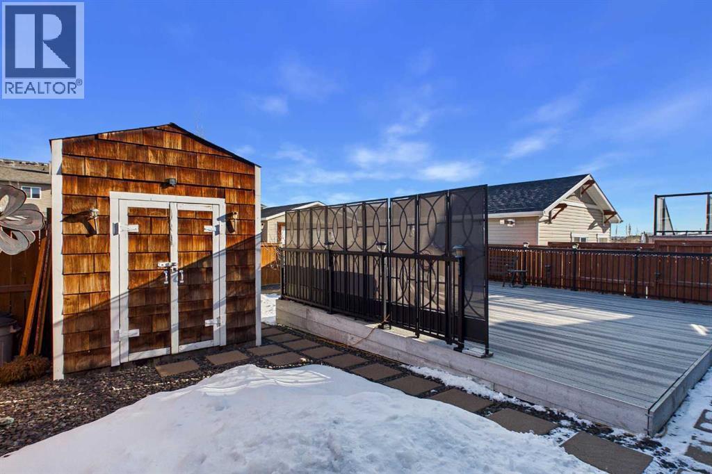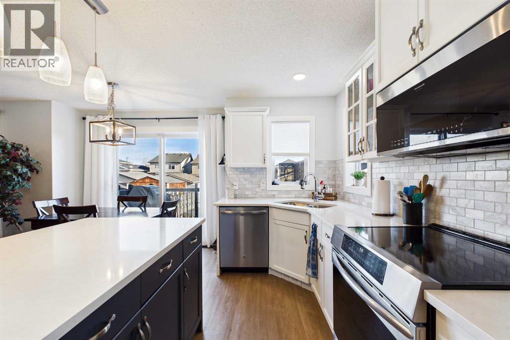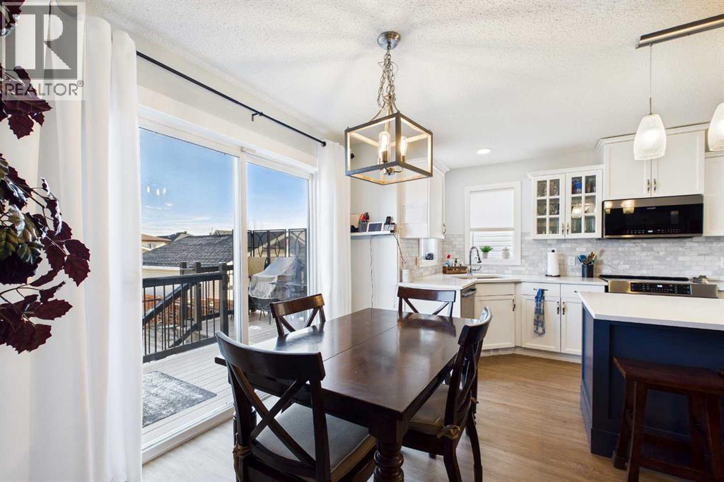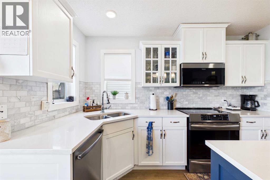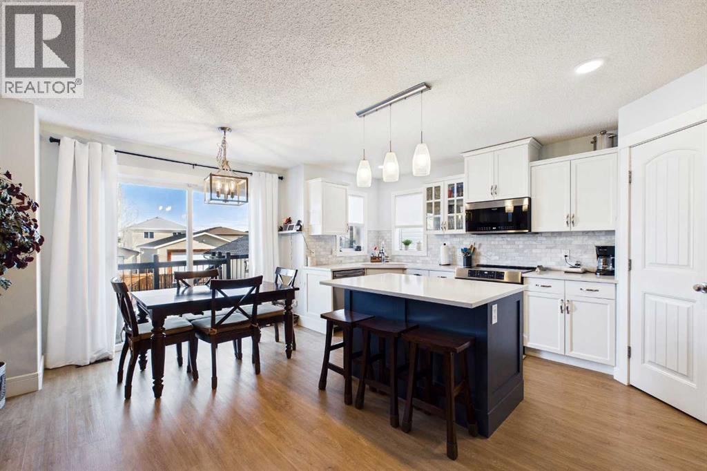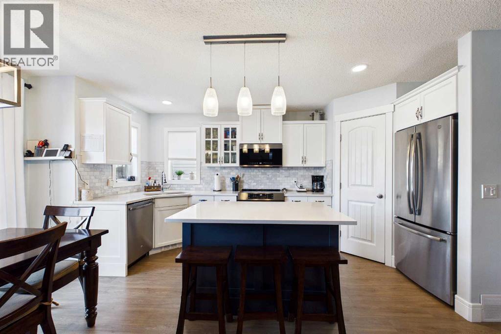 Welcome to this flawlessly renovated 1,531 sqft gem in the heart of Sagewood, Airdrie—a home that perfectly balances charm with modern sophistication. The main floor welcomes you with a bright spacious entrance and open-concept layout that has been thoughtfully updated to create a seamless flow between the stylish living areas and the gourmet kitchen. This new kitchen offers stunning white cabinets, a vibrant blue island for that pop of colour, a corner pantry, a perfectly placed sink facing the windows, quartz counters, stainless steel appliances, new lighting, backsplash, and LVP flooring. The adjacent dining area is purposeful and functional yet also provides versatility to pivot the table to entertain large gatherings on those special occasions. The living room can accommodate oversized furniture and is perfectly designed for entertaining in mind. Upstairs, three spacious bedrooms offer a peaceful retreat for the whole family including a spacious primary bedroom with a spa like ensuite and walk in closet. The fully finished basement provides the ultimate flexible space with a bedroom, bathroom, and a flex space which gives you options for a media room, gym, play area or all 3! The outdoor living space is a true showstopper, featuring massive double-tier decks designed for grand-scale entertaining or quiet morning coffees. The expansive backyard is further enhanced by convenient alley access and storage sheds, while the front-attached double car garage ensures your vehicles are protected year-round. Situated in a family-friendly community known for its winding canals and scenic pathways, this home offers a rare combination of turnkey interior luxury and an outdoor oasis that is hard to find. (id:63190)