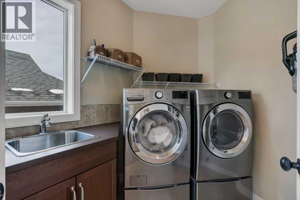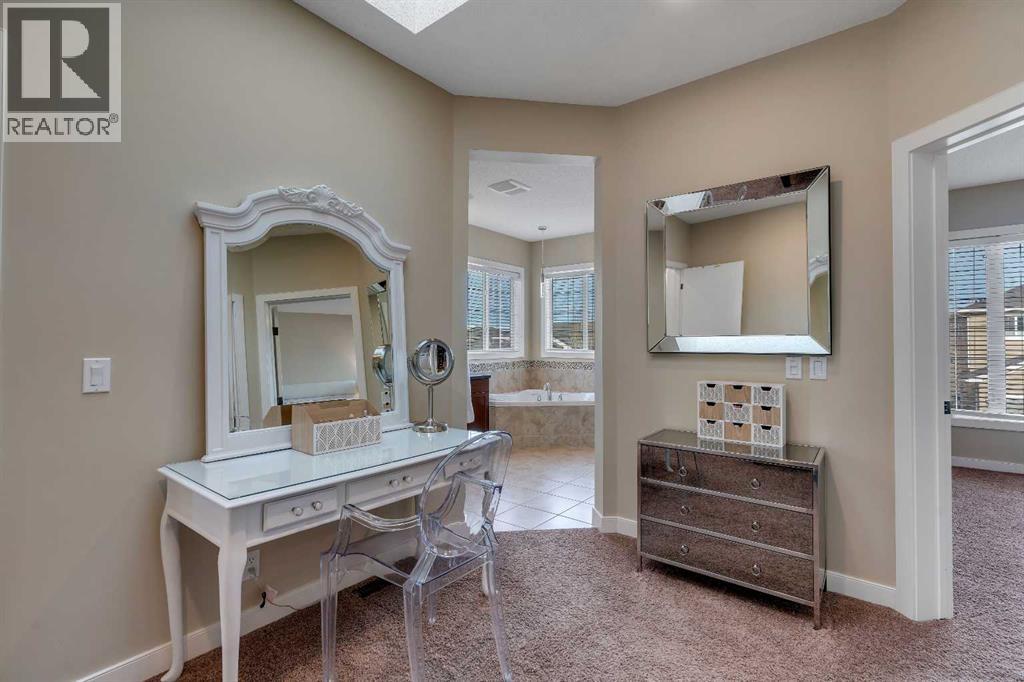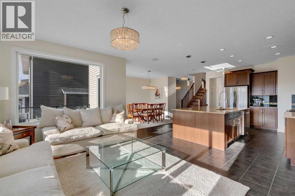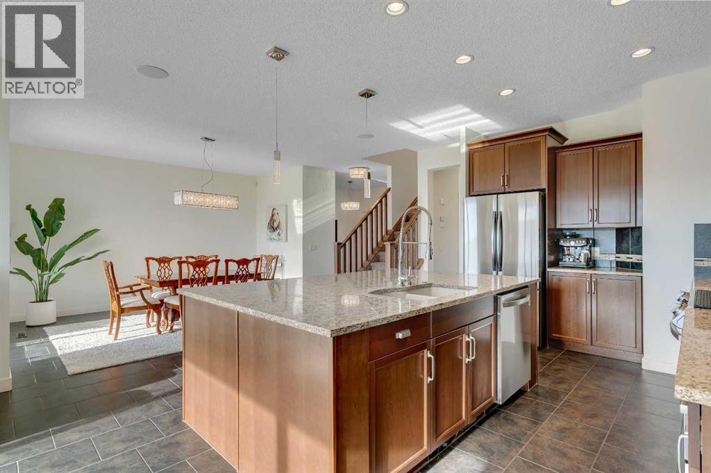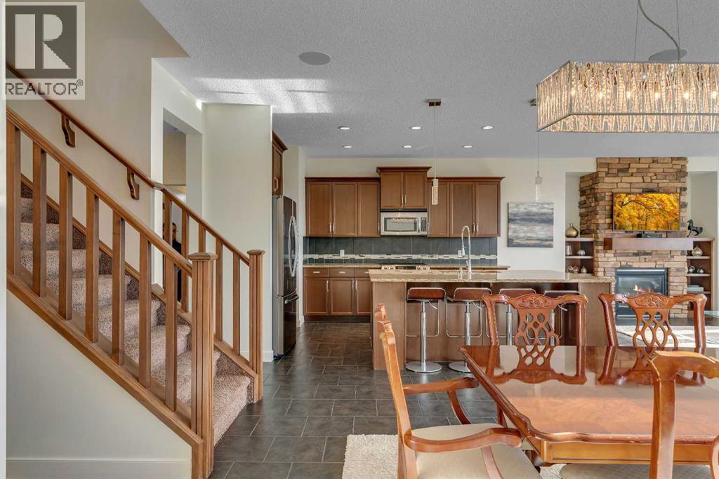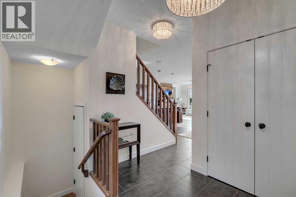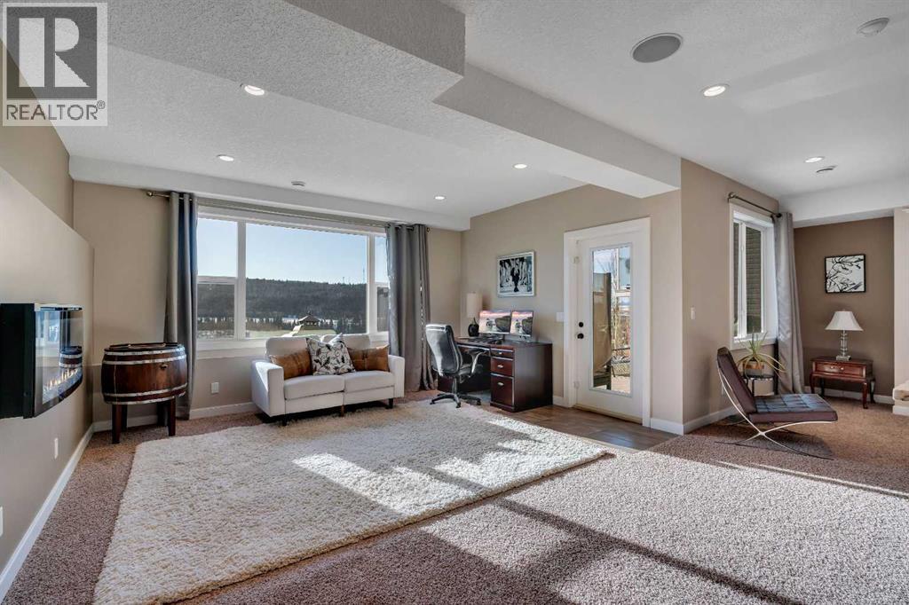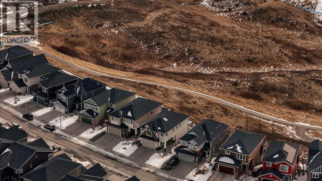 Welcome to this beautifully maintained two-storey walk-out home backing directly onto a stunning environmental reserve with pathways, nature and incredible mountain views. Built in 2011 and thoughtfully positioned to capture the scenery from nearly every window, this home offers the perfect blend of privacy, space and functionality. The main floor welcomes you with a spacious front foyer and an open-concept layout featuring an expansive kitchen with oversized eat-up island, stainless steel appliances, a large pantry and abundant cabinetry for exceptional storage. The kitchen flows seamlessly into the dining area and spacious living room with gas fireplace, solid wood built-in shelving and solid wood staircase railings that add warmth and character. The dining area leads to the deck where you can relax and enjoy the peaceful reserve and mountain views. The main floor also includes a private 2-piece bathroom and a functional boot room with storage that leads to the attached garage. Upstairs offers a central open office/den with double desks, a massive bonus room with stunning views, two bedrooms with a shared 4-piece bathroom, and a convenient laundry room with a sink. The private primary retreat is a standout feature with a unique bright dressing room with oversized skylight offering endless natural lighting, spa-inspired ensuite with soaker tub, shower and dual sinks, plus a separate walk-in closet and private bedroom access designed to avoid disrupting anyone sleeping while getting ready for the day. The professionally developed walk-out basement features a large entertaining bar, spacious rec room with two intentional entertaining spaces offering covered patio & backyard access, custom Murphy bed for guests or optional fourth bedroom, a 4-piece bathroom, multiple storage closets including a large walk-in closet and a mechanical room with additional storage. Additional Features include Central Air Conditioning installed 2 years ago, Telus Alarm system including cameras, doorbell & sensors, upgraded lighting throughout, Refrigerator (2025), Dishwasher (2024), Range (2025), Ceiling speakers on all 3 floors and include the master retreat. A rare opportunity to own a walk-out home backing onto protected green space with breathtaking views in desirable Sunset Ridge. Sunset Ridge is a sought-after community known for incredible Rocky Mountain views, extensive parks and welcoming neighbourhood feel. Residents enjoy over 5 km of scenic walking & biking pathways, numerous playgrounds, green spaces and a central park with ponds, all designed to encourage an active outdoor lifestyle. Appreciate the convenience of nearby schools including RancheView School (K-8) and St. Timothy Jr./Sr. High School, both located within the community. Local amenities at the entrance to Sunset Ridge include restaurants, medical services, pharmacy, daycare and other everyday conveniences, while the charming shops and services of downtown Cochrane are minutes away and Calgary a short commute. (id:63190)