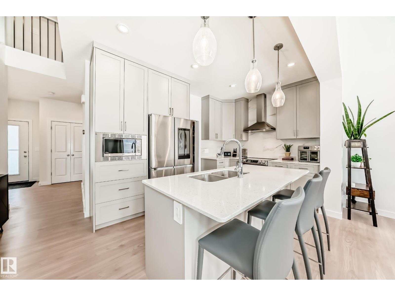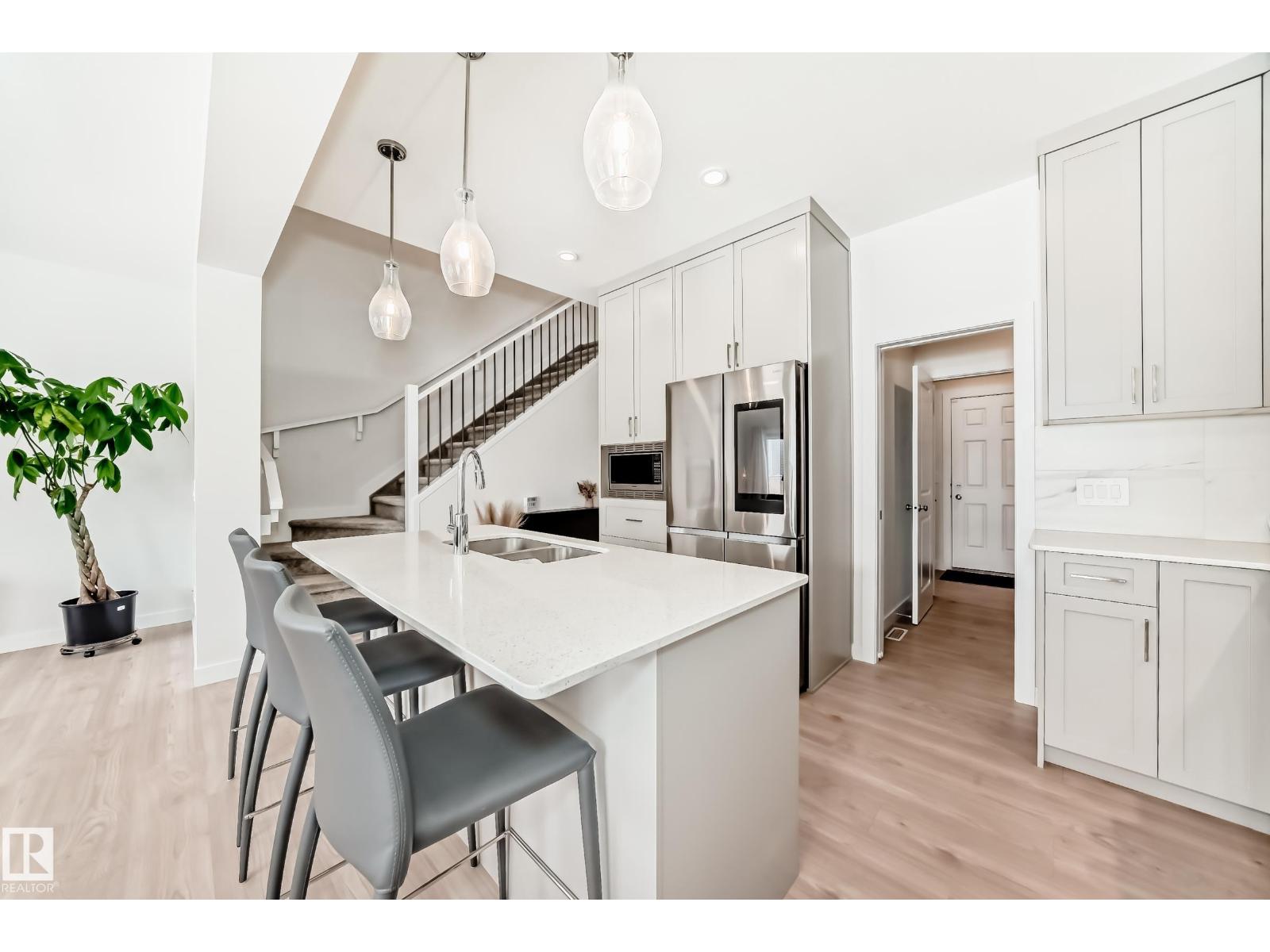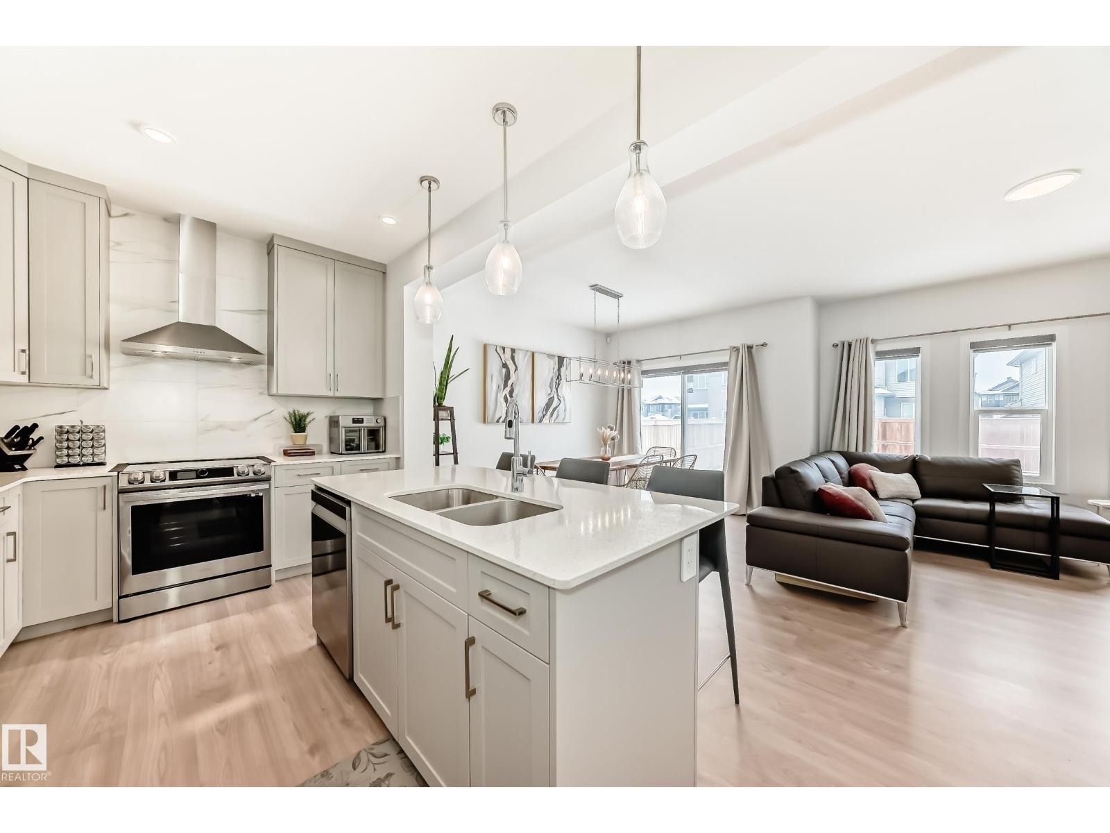 This better-than-new 3-bedroom, 2.5-bath home showcases a bright, spacious layout designed for modern living. The chef’s kitchen features a chimney hood fan, stainless steel appliances, and timeless finishes that elevate the space. Upstairs, a generous bonus room is ready for entertaining. The spacious primary retreat with a spa-like ensuite offers a relaxing escape, along with two additional bedrooms perfect for family or hobbies. Enjoy year-round comfort with central A/C and the added benefit of a water softener. Control with a smart thermostat and motor blinds. A separate side entrance provides potential for future basement development - ideal for a suite or expanded family space. All of this sits on a rare full width traditional lot. Located steps from a school and minutes to shopping, including Costco and WEM, with quick access to Anthony Henday and Whitemud, this home delivers comfort, convenience, and long-term value in one of West Edmonton’s top neighbourhoods. (id:63190)