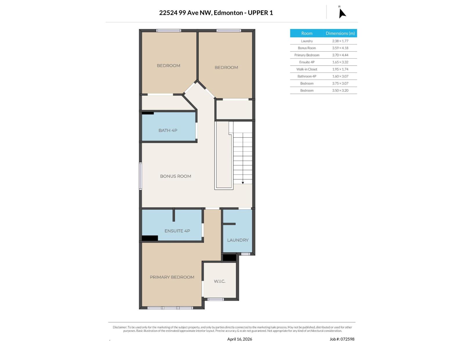 | Primary Bedroom | Upper Level | 3.70 × 4.44 | — |