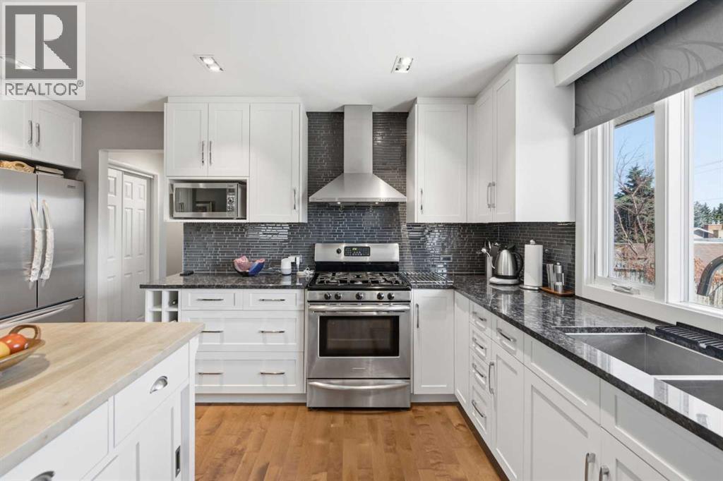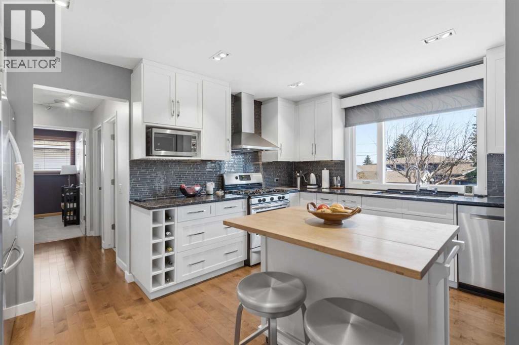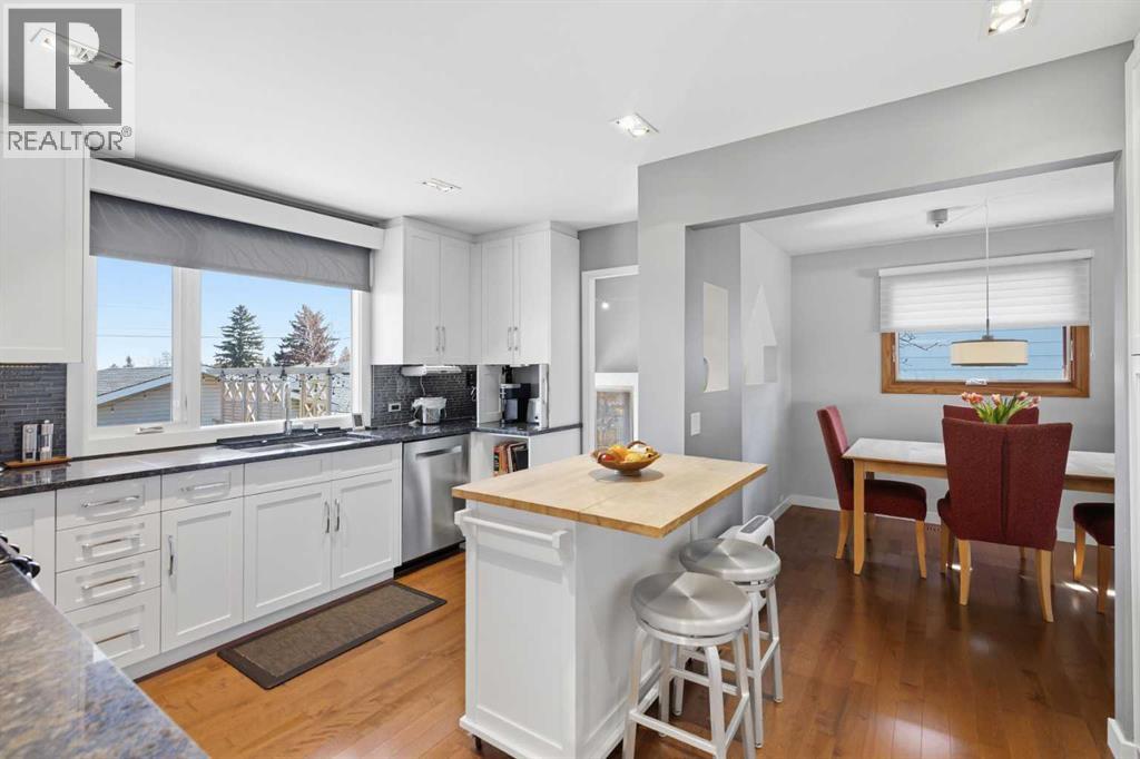 Welcome to this immaculate bungalow located in the sought after community of Canyon Meadows! The main floor features 3 good size bedrooms, full bathroom(heated floors), spacious living room, dining room and kitchen. A focal point of the home is the kitchen. The kitchen, which is open to the dining room, has been professionally designed and custom built with timeless finishes. Featuring black granite countertops, glass tiled backsplash, custom shaker cabinets that extend to the ceiling, under cabinet LED lighting, appliance garage and a moveable kitchen island. Engineered Hardwood flooring throughout the main floor except for the 3 bedrooms(carpet) and the bathroom(stone tile). Downstairs development includes a huge family room with gas fireplace, bedroom, 3 piece bathroom and generous storage/utility areas. The sun drenched backyard is a gardener's delight and also features 2 large deck areas. A double detached garage and large shed complete the backyard. At the end of the street is the community centre. There are 4 schools in Canyon Meadows as well as the Pool and Aquatic Centre. Locaed close to Southcentre Shopping Mall as well as other major shopping and to the south of Canyon Meadows is the Fish Creek Provincial Park. (id:63190)