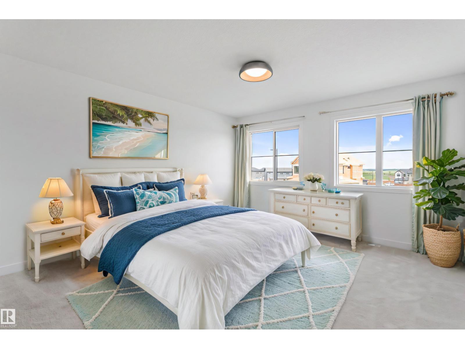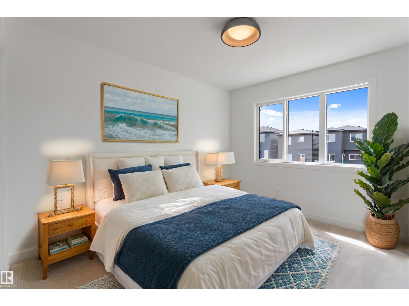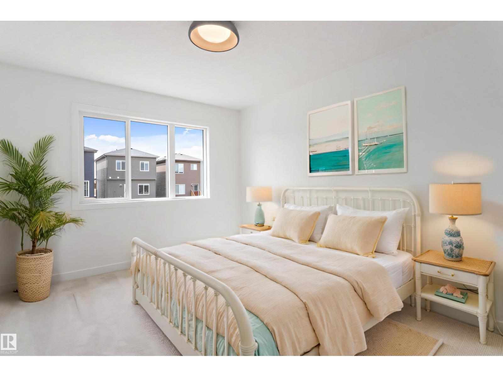 Welcome to Cambrian in Sherwood Park! This move-in ready Landon model by award-winning Rohit Homes offers 1,565 sq ft with 3 bedrooms, 2.5 baths plus a double attached garage. Finished in an Ethereal Zen Designer Interior, designed to bring a sense of tranquility and lightness to everyday living. The open-concept main floor features a modern kitchen with quartz island, pantry and abundant cabinetry overlooking the dining and living areas. 9' ceilings enhance the bright main floor. Upstairs you’ll find a spacious primary suite with walk-in closet and 5-piece ensuite with dual sinks, two additional bedrooms, full bath, upstairs laundry and a versatile flex room. Separate side entrance provides excellent potential for a future basement suite. Highlights include triple-pane windows and FRONT & BACK LANDSCAPING INCLUDED. Appliance, blind and AC packages available through the builder. Steps from parks, playgrounds and trails with easy access to the Henday. Photos may not reflect exact home. (id:63190)