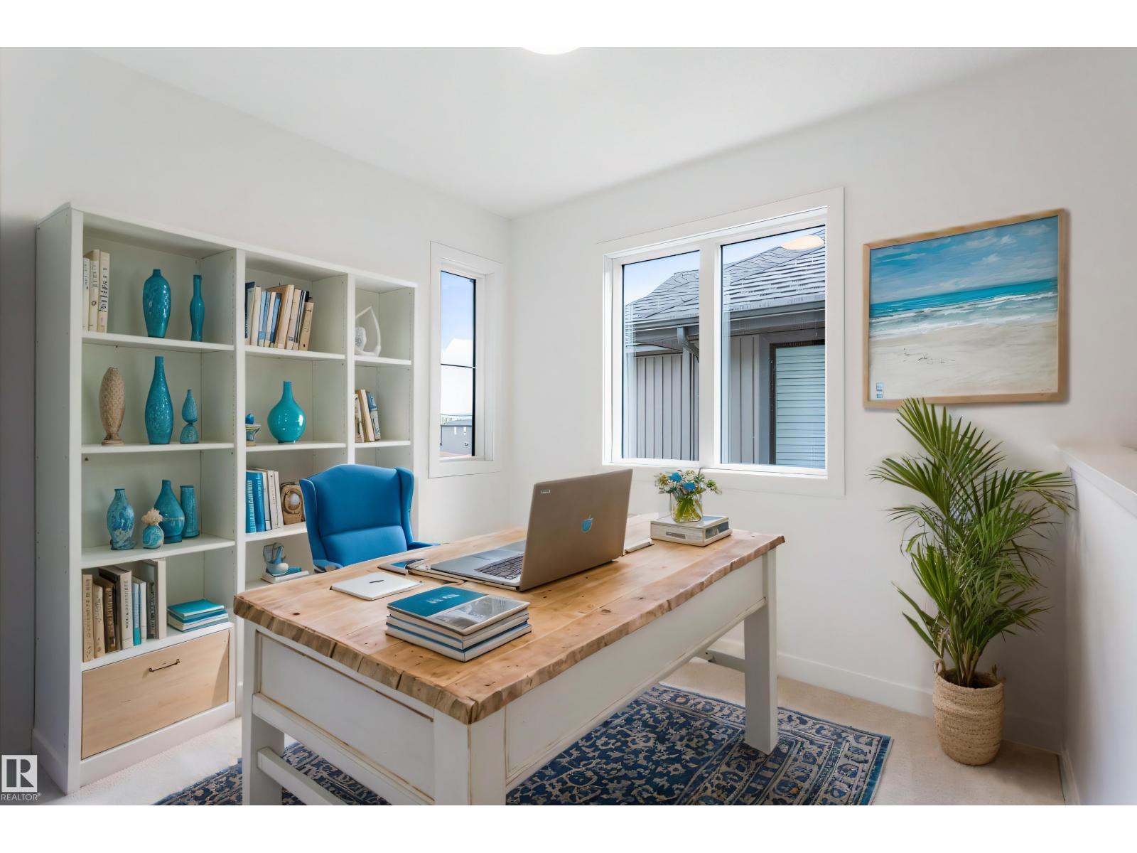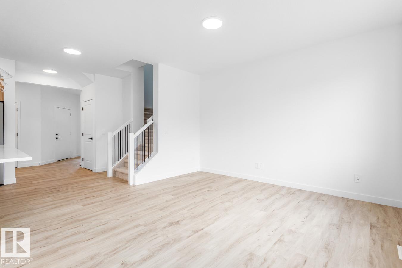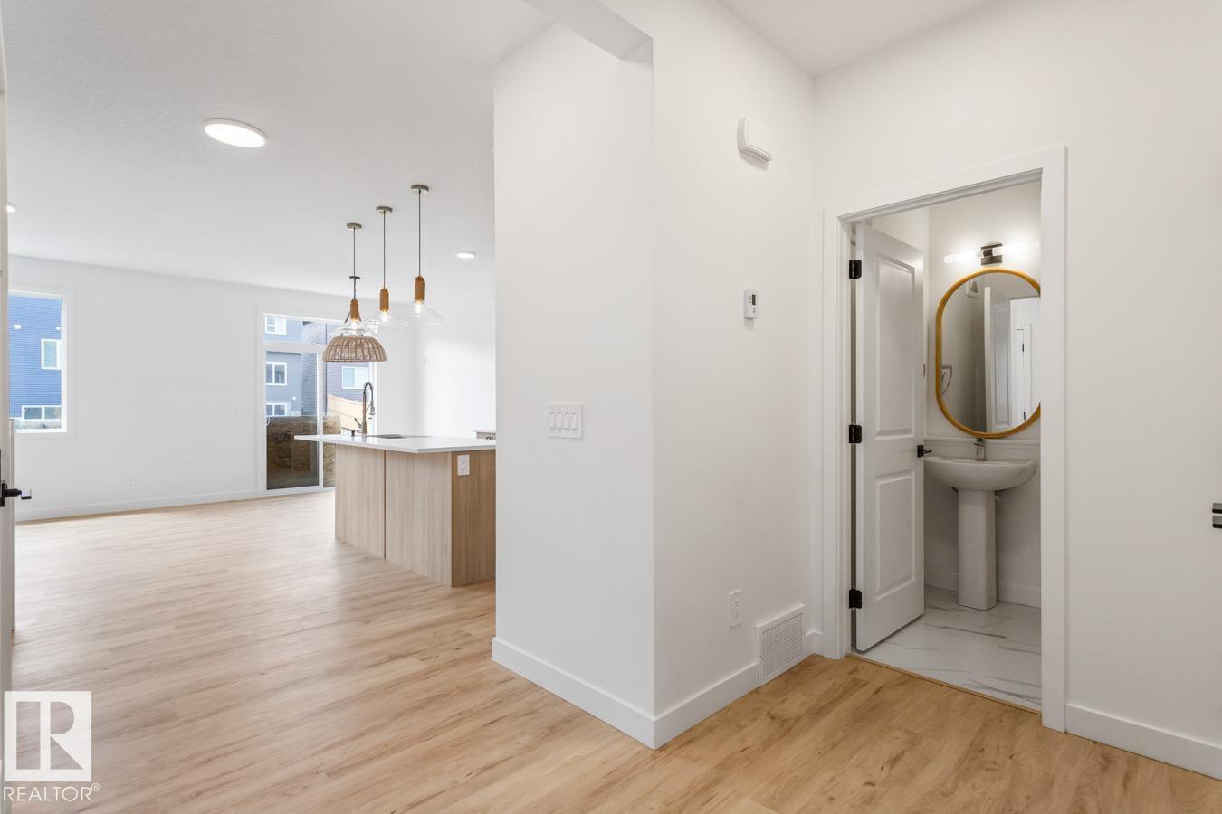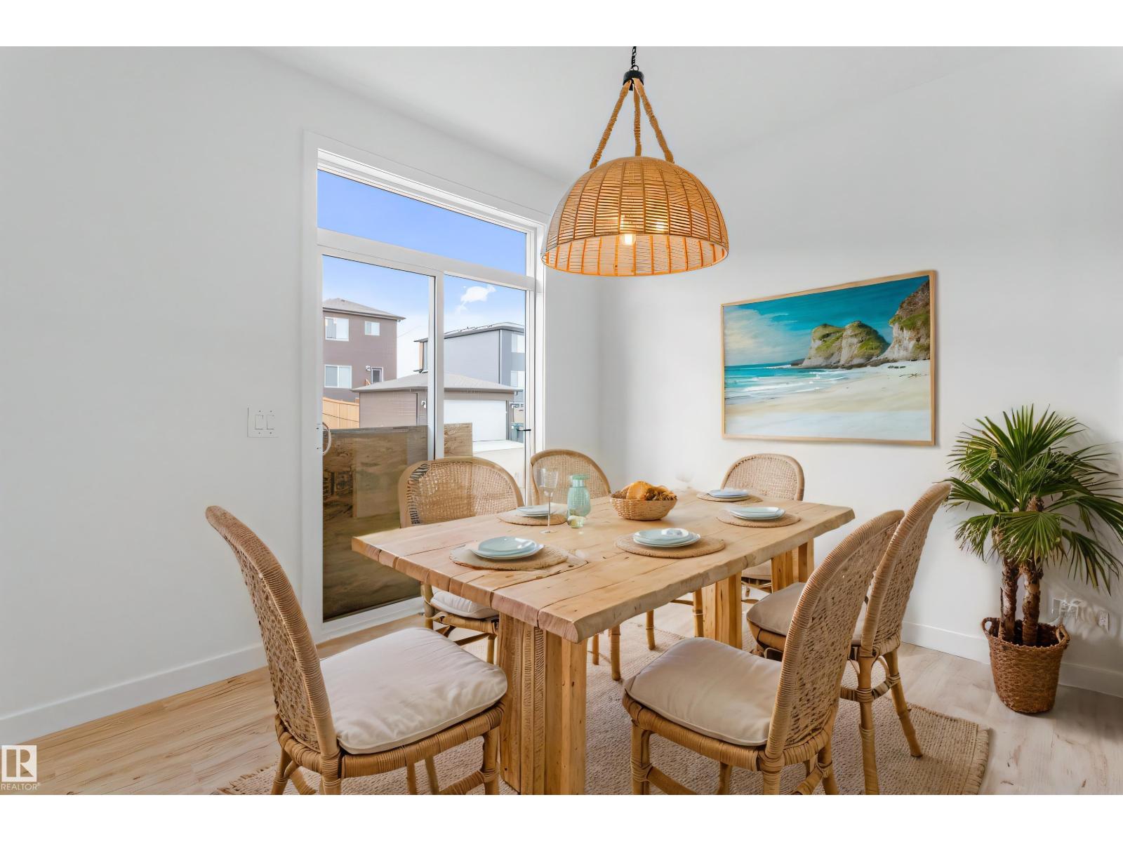 Welcome to Cambrian in Sherwood Park! This move-in ready Landon model by award-winning Rohit Homes offers 1,565 sq ft with 3 bedrooms, 2.5 baths plus a double attached garage. Finished in an Ethereal Zen Designer Interior, designed to bring a sense of tranquility and lightness to everyday living. The open-concept main floor features a modern kitchen with quartz island, pantry and abundant cabinetry overlooking the dining and living areas. 9' ceilings enhance the bright main floor. Upstairs you’ll find a spacious primary suite with walk-in closet and 5-piece ensuite with dual sinks, two additional bedrooms, full bath, upstairs laundry and a versatile flex room. Separate side entrance provides excellent potential for a future basement suite. Highlights include triple-pane windows and FRONT & BACK LANDSCAPING INCLUDED. Appliance, blind and AC packages available through the builder. Steps from parks, playgrounds and trails with easy access to the Henday. Photos may not reflect exact home. (id:63190)