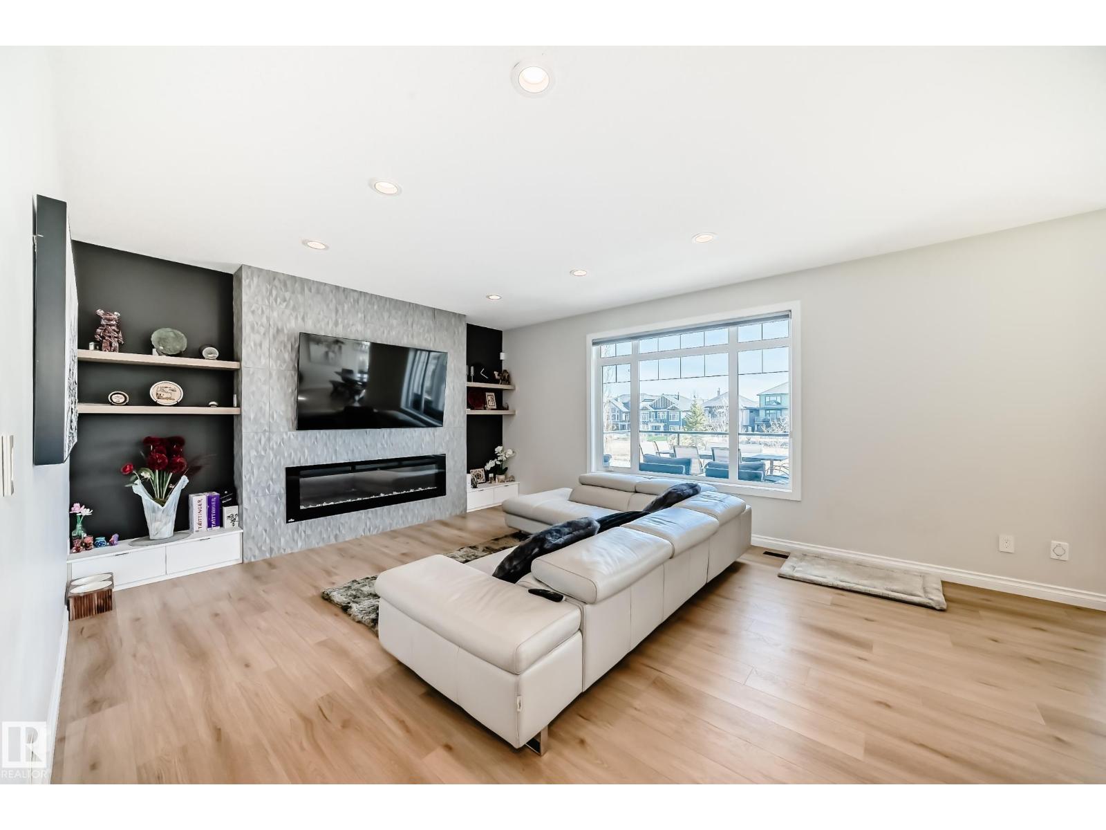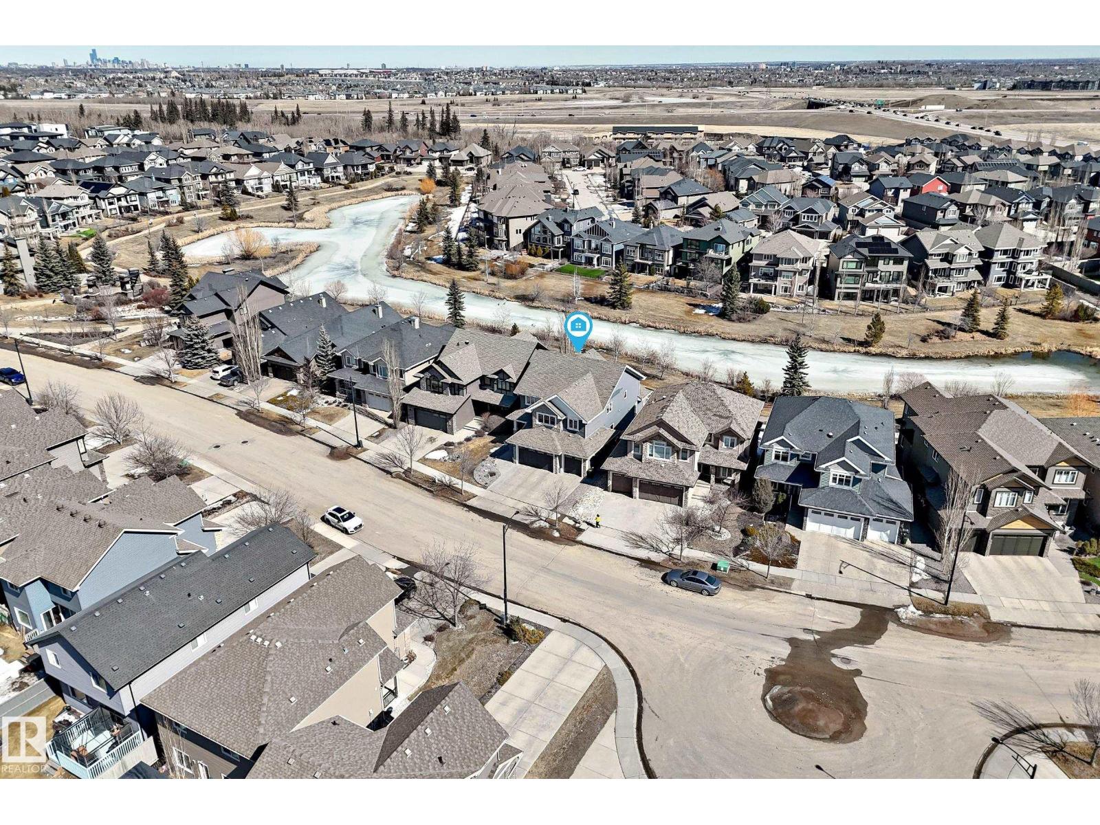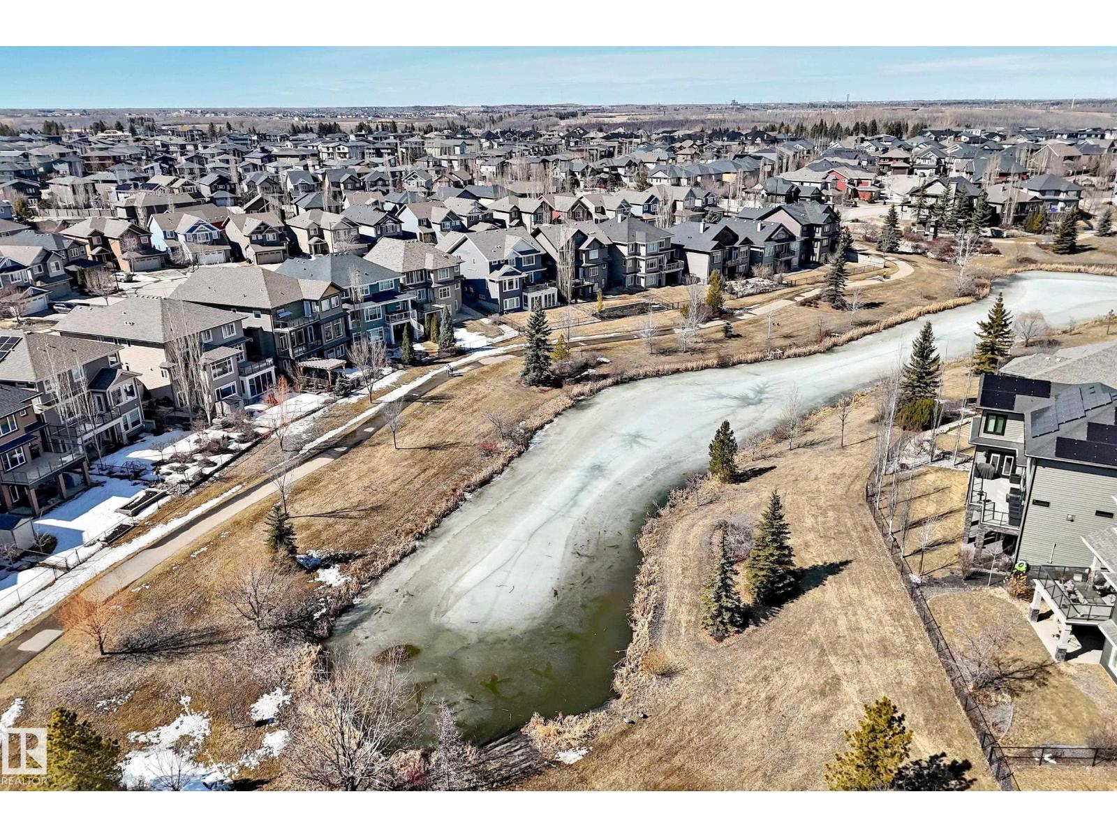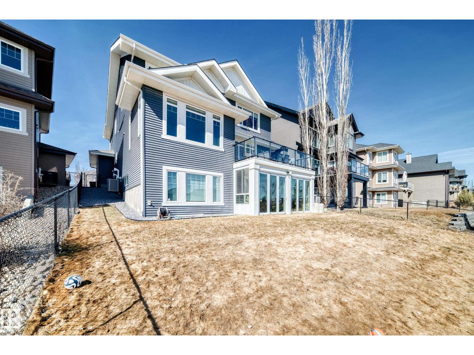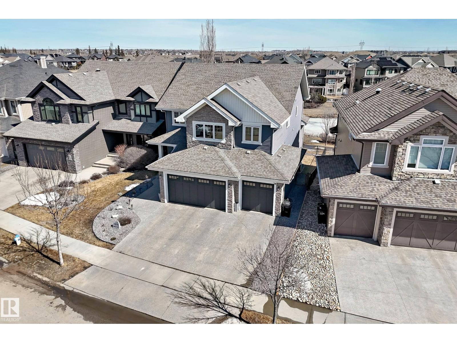 Quality Masterpiece custom built by ACE LANGE provides timeless living in a Stylish & Tranquil environment. 3068+ sqft 2-story WALK-OUT & a beautiful VIEW OF THE POND. This HOME has a wonderful open concept floor plan & boasts all the Luxuries of an Estate Home. Main floor boasts inviting foyer, conveniently located den, cozy great room w/9 ft ceilings, large windows providing tons of natural light & tiled fireplace; gourmet kitchen w/ample cabinets/large island/huge walk thru butler pantry, bright & airy eating nook that overlooks ponds & greens, powder room & mud room. Upstairs features entertaining sized bonus room w/vaulted ceilings, Primary bedroom w/lavish 5pc ensuite & large walk-in closet, 2 more spacious bedrooms, 4pc main bath and laundry room. Walk-Out lower level is fully developed w/IN-FLOOR heating, Rec/Flex Rm, Bedroom, full bath & a professionally installed Sunroom. Ideally located walking distance to schools, close to all amenities, quick access to YEG and Henday. Must See - A Real Gem! (id:63190)