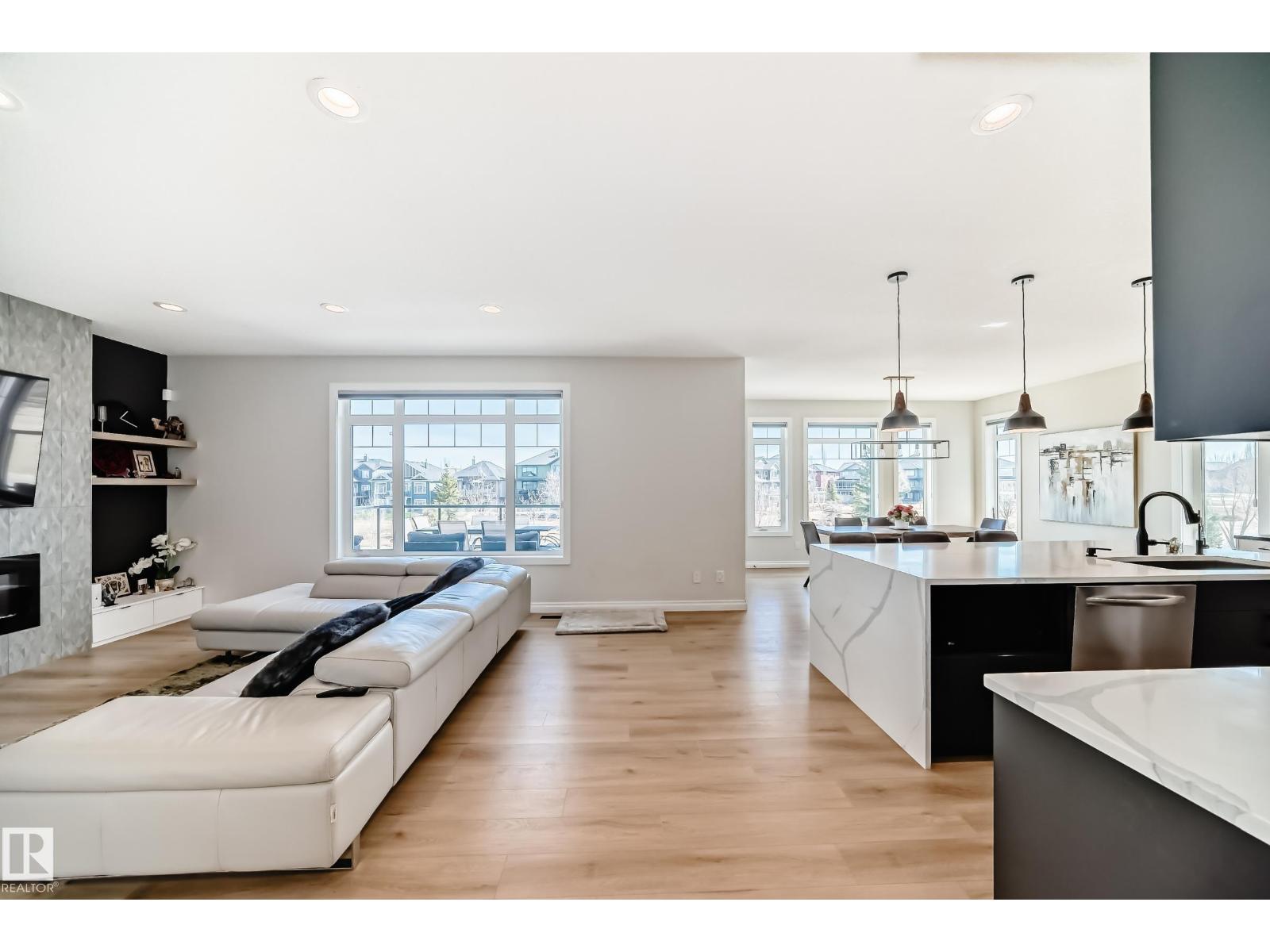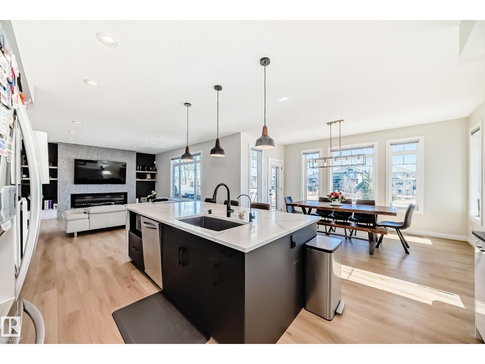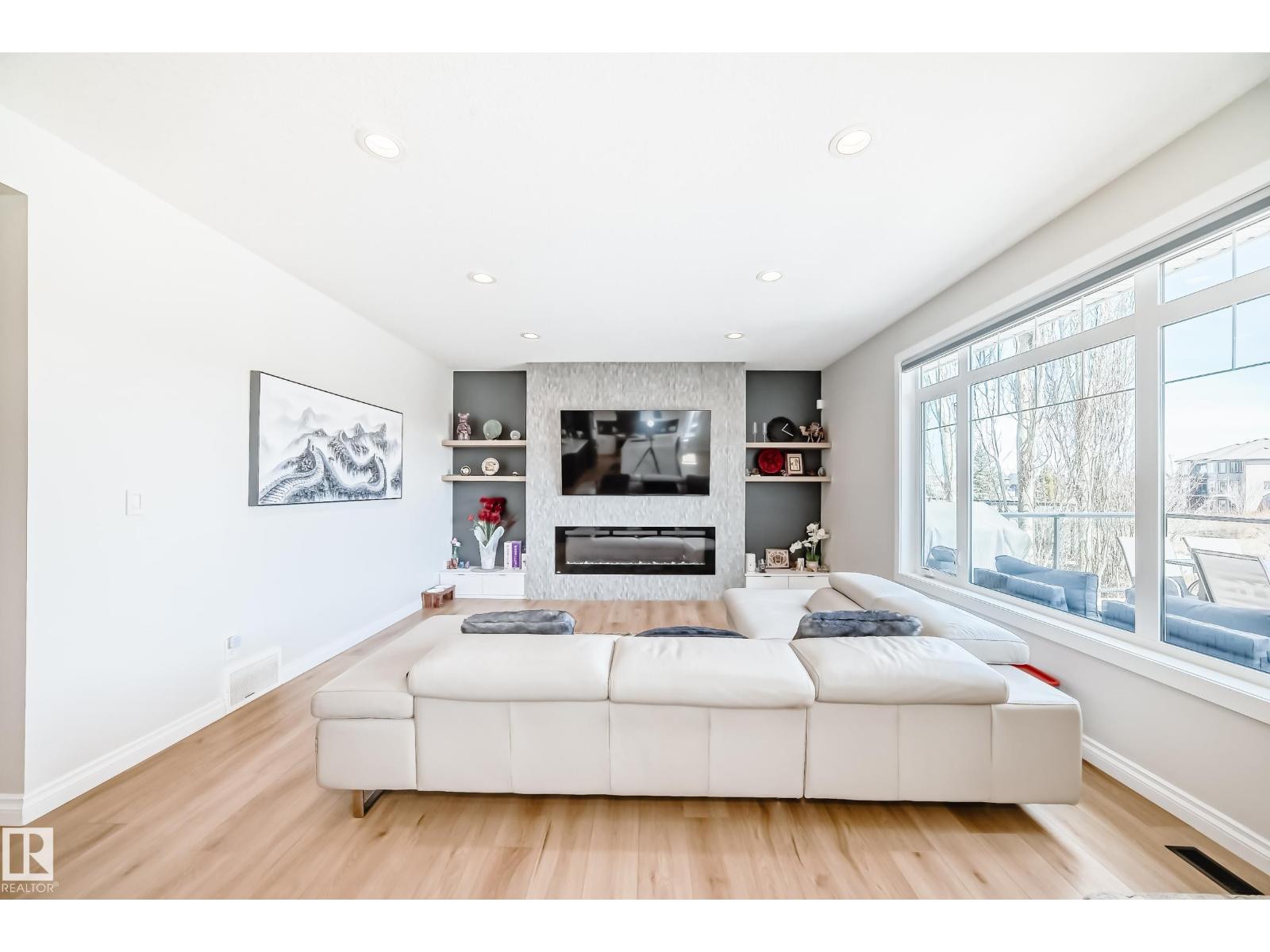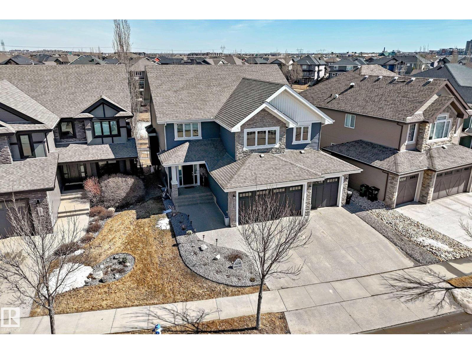 Quality Masterpiece custom built by ACE LANGE provides timeless living in a Stylish & Tranquil environment. 3068+ sqft 2-story WALK-OUT & a beautiful VIEW OF THE POND. This HOME has a wonderful open concept floor plan & boasts all the Luxuries of an Estate Home. Main floor boasts inviting foyer, conveniently located den, cozy great room w/9 ft ceilings, large windows providing tons of natural light & tiled fireplace; gourmet kitchen w/ample cabinets/large island/huge walk thru butler pantry, bright & airy eating nook that overlooks ponds & greens, powder room & mud room. Upstairs features entertaining sized bonus room w/vaulted ceilings, Primary bedroom w/lavish 5pc ensuite & large walk-in closet, 2 more spacious bedrooms, 4pc main bath and laundry room. Walk-Out lower level is fully developed w/IN-FLOOR heating, Rec/Flex Rm, Bedroom, full bath & a professionally installed Sunroom. Ideally located walking distance to schools, close to all amenities, quick access to YEG and Henday. Must See - A Real Gem! (id:63190)