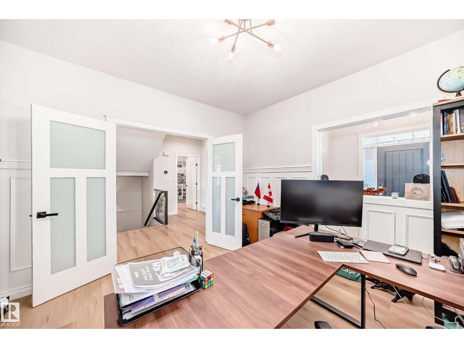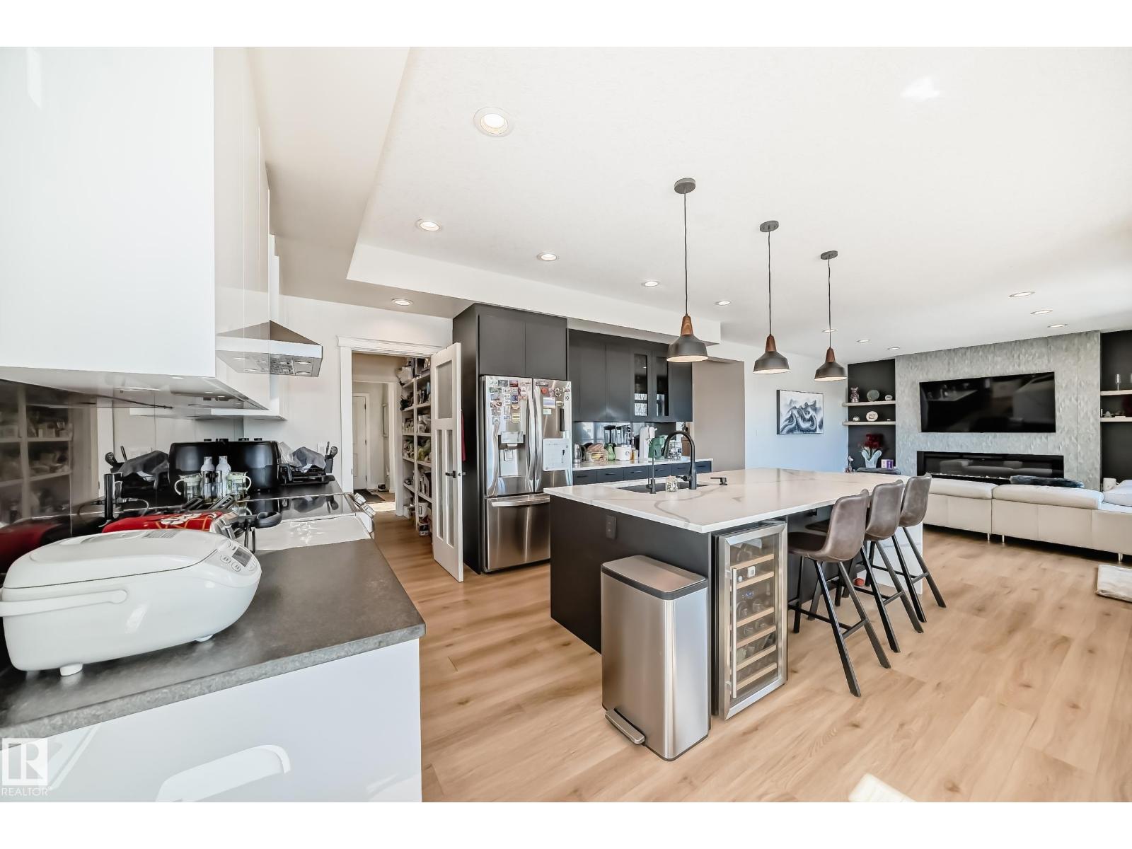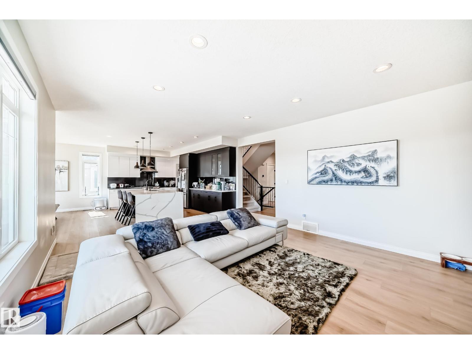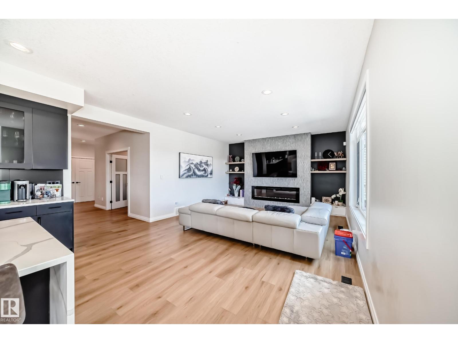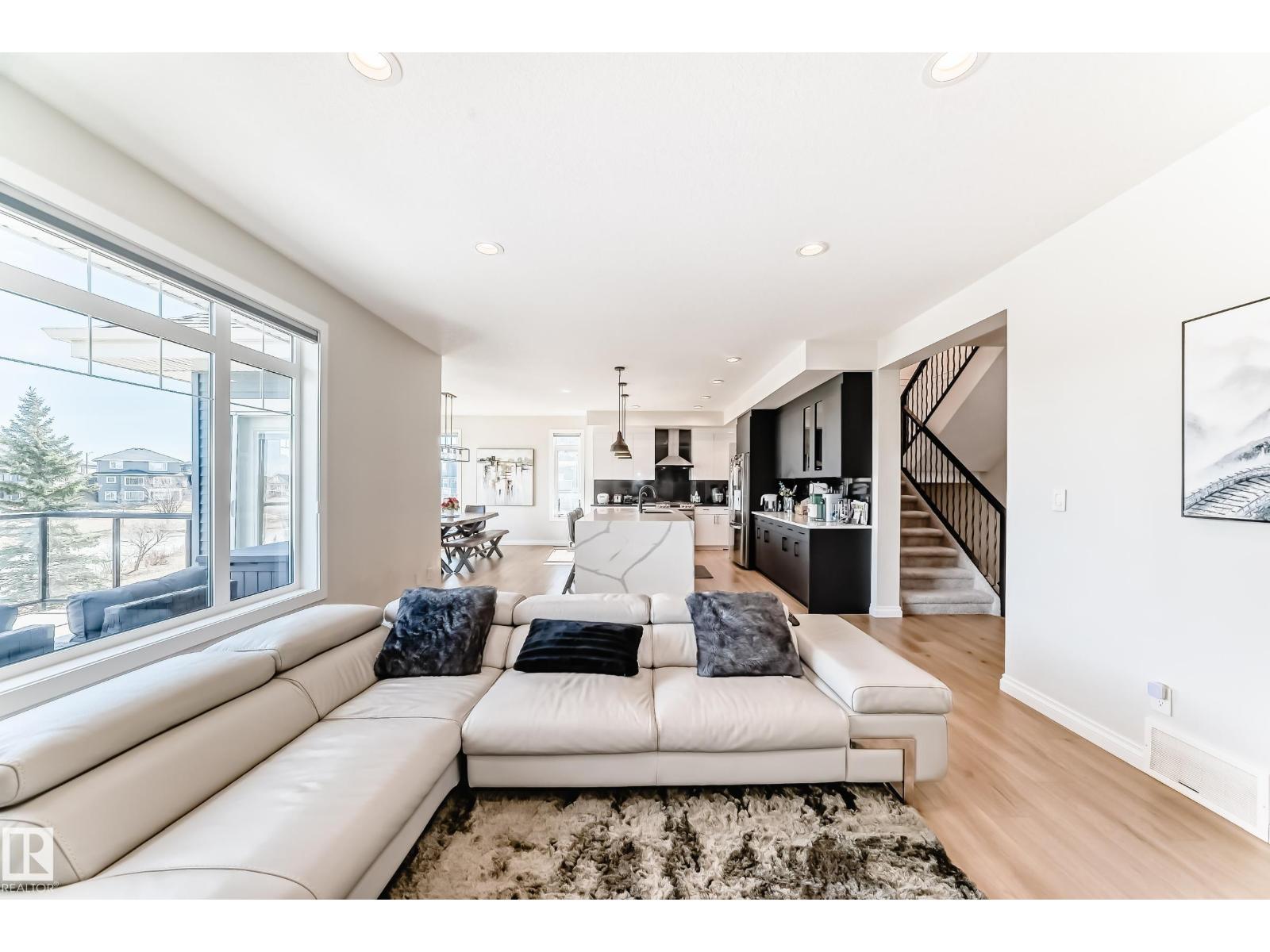 Quality Masterpiece custom built by ACE LANGE provides timeless living in a Stylish & Tranquil environment. 3068+ sqft 2-story WALK-OUT & a beautiful VIEW OF THE POND. This HOME has a wonderful open concept floor plan & boasts all the Luxuries of an Estate Home. Main floor boasts inviting foyer, conveniently located den, cozy great room w/9 ft ceilings, large windows providing tons of natural light & tiled fireplace; gourmet kitchen w/ample cabinets/large island/huge walk thru butler pantry, bright & airy eating nook that overlooks ponds & greens, powder room & mud room. Upstairs features entertaining sized bonus room w/vaulted ceilings, Primary bedroom w/lavish 5pc ensuite & large walk-in closet, 2 more spacious bedrooms, 4pc main bath and laundry room. Walk-Out lower level is fully developed w/IN-FLOOR heating, Rec/Flex Rm, Bedroom, full bath & a professionally installed Sunroom. Ideally located walking distance to schools, close to all amenities, quick access to YEG and Henday. Must See - A Real Gem! (id:63190)