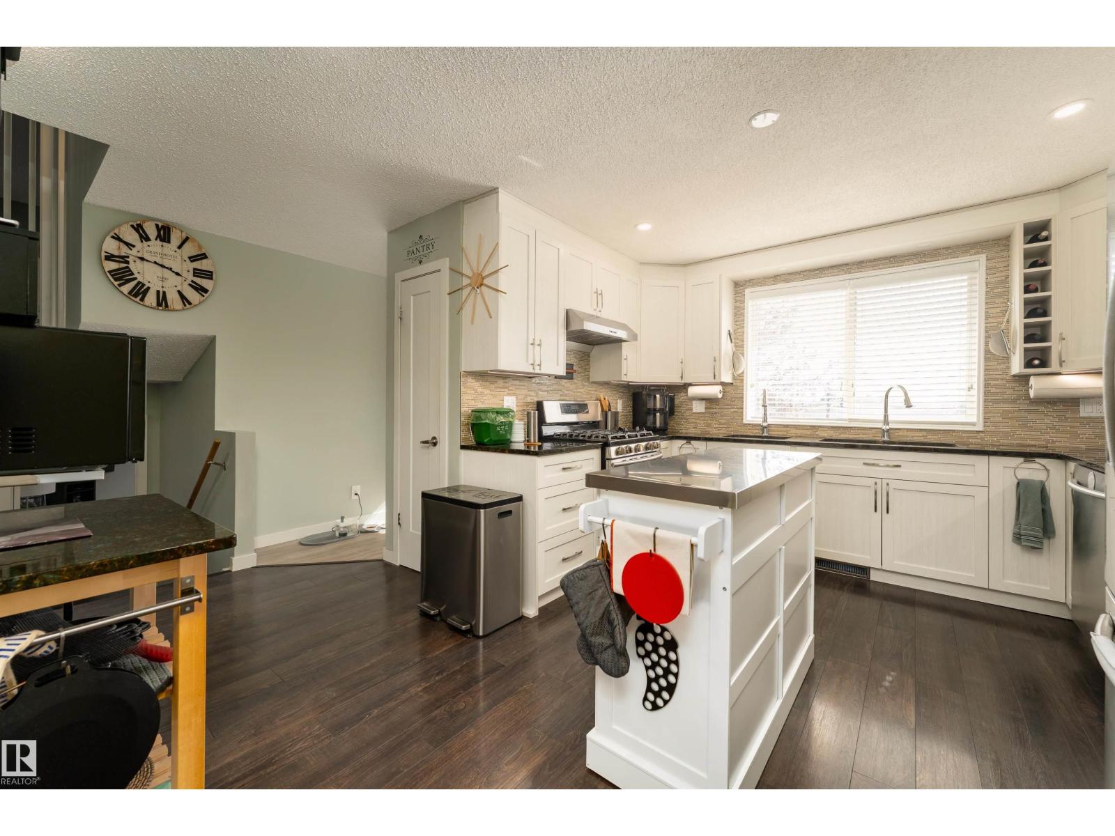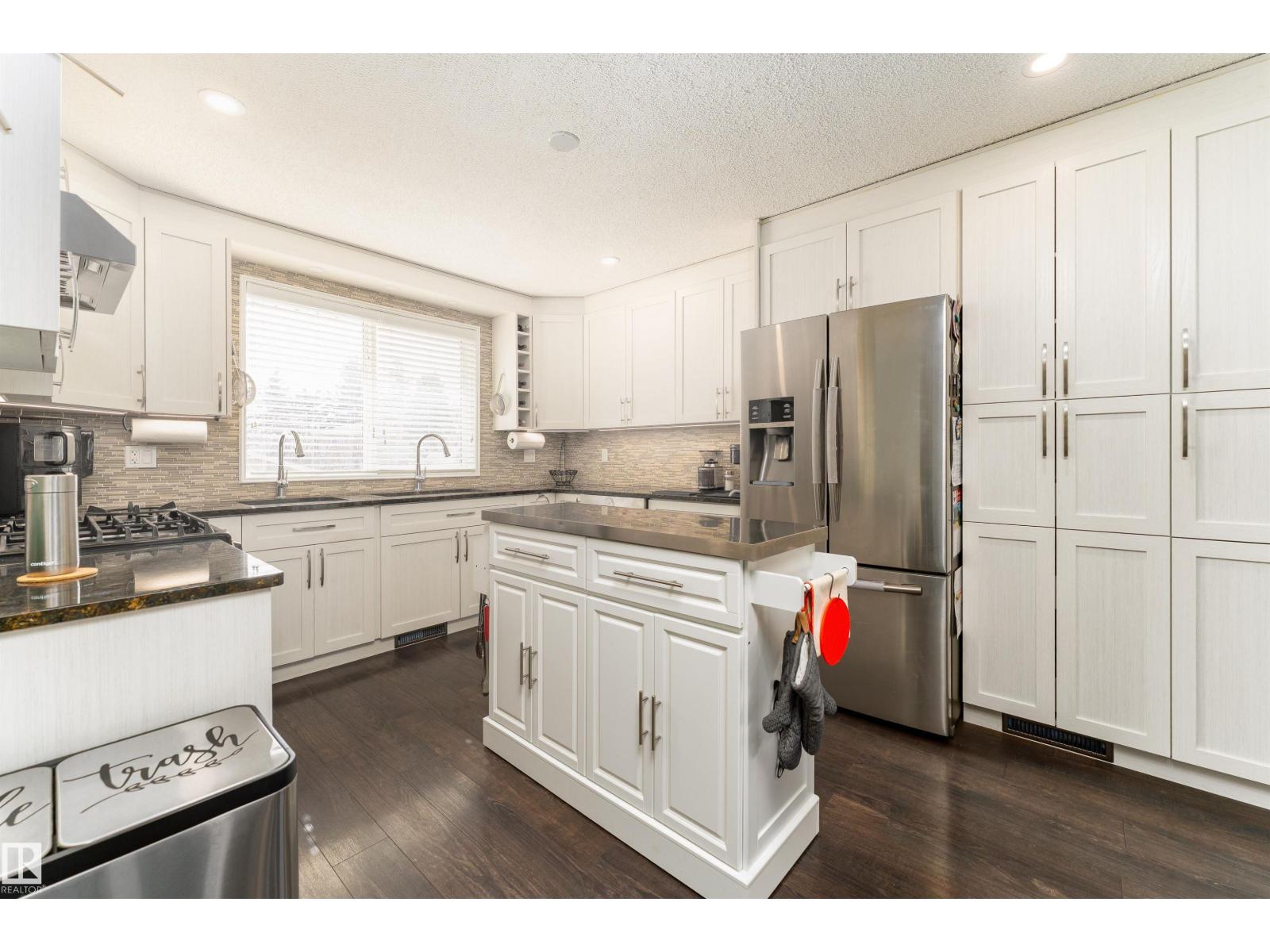 At 1,885 sq ft, step into a home that instantly feels like the one—spacious, stylish, and built for entertaining. This unique 2 storey split home is completely updated throughout. The main floor offers a bright open layout with a white kitchen, stainless steel appliances, central island, and ample storage, flowing into the dining area and living room with a stone-facing fireplace. Upstairs features 3 spacious bedrooms and 2 full bathrooms, including a primary retreat with ensuite and private balcony! A few steps down, the lower bi-level includes a cozy family room, 2-piece bath, and standout bar area. The basement has a built-in sauna and laundry room. Theres opportunity to add space for a storage, gym or rec room. Outside, enjoy a massive yard & deck great for gatherings, double attached garage, & outside RV parking pad. Close to schools, parks, playgrounds, shopping, and easy access to major routes for a quick commute. Too many updates to list, message me for full details! (id:63190)