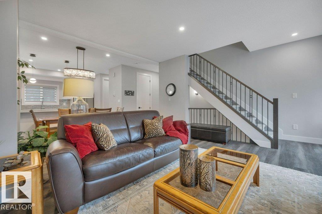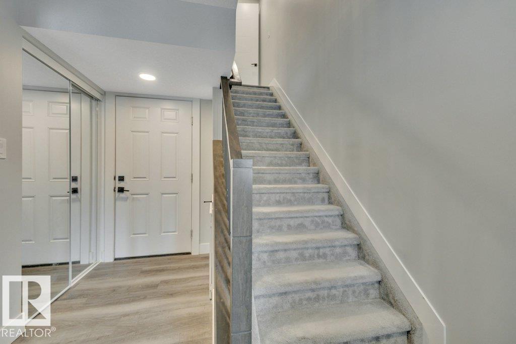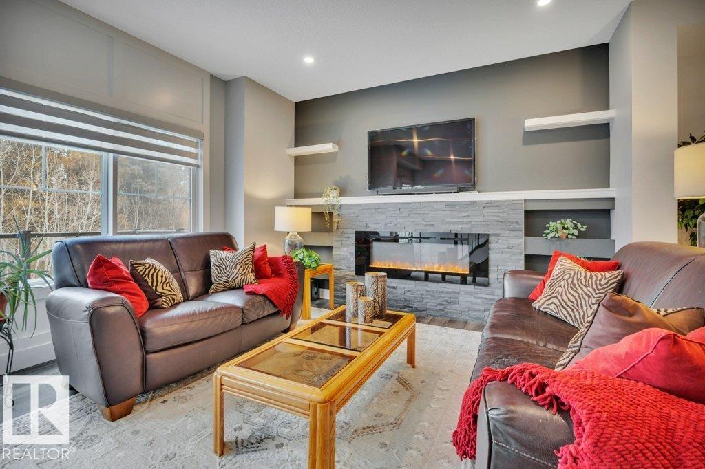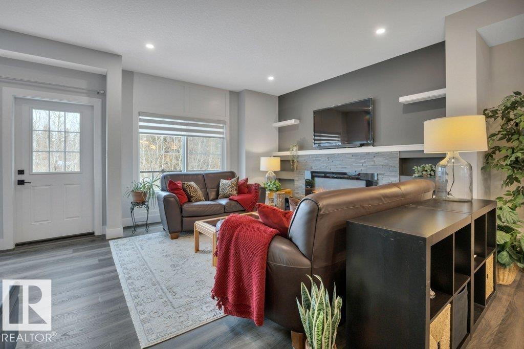 SERENE VIEWS overlooking TREED Agricultural land in Edgemont. LUX townhouse with DOUBLE ATT. GARAGE, Patio & Balcony. Upgrades galore in this 3 level, 1700 ft2 MODERN EXECUTIVE home with open design.As you enter ground level you have a Convenient OFFICE(flex room) & storage area near access to garage. UPGRADES include: IRON RAILING, QUARTZ countertops, SS Appliances, 5' LINEAR FIREPLACE featuring STONE mantel, LUX VINYL PLANK flooring,large main floor LAUNDRY room with SOUTH window,9' CEILINGS, 8' Interior Doors.he abundance of Windows emphasize the gorgeous views from the LIVING room, PRIMARY Bedroom,OFFICE too! The main floor has WHITE kitchen, PENSINSULA for break bar stools open to DINING rm all open to the LIVING rm that is perfect for entertaining ending the day on the amazing balcony views.Upstairs are 3 Large Bedrooms 2 full Bathrooms including the DREAMY PRIMARY bedroom featuring WALK-IN closet plus LUX ENSUITE with 4.5' Vanity with QUARTZ, 4' TILED SHOWER with GLASS door. Looks like a Showhome!! (id:63190)