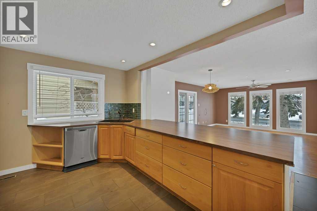 Welcome to this charming bungalow in the desirable lake community of Lake Midnapore, where residents enjoy exclusive year-round lake access with swimming, beach days, skating, and sledding. The home offers great curb appeal with mature trees and three outdoor living spaces capturing east, south, and west sunshine. Inside, a bright open-concept layout features a sun-filled living room flowing into a spacious dining area with access to the sunny side yard. The kitchen includes stainless steel appliances, a tile backsplash, and a large breakfast bar. The main floor offers three bedrooms, an updated full bath, a spacious primary bedroom with patio doors to the front deck, and its own laundry. A mudroom leads to the side courtyard and fully fenced backyard with a double detached garage. The developed basement features a 2-bedroom illegal suite with a living area, kitchen, 3-piece bath, and separate laundry for the basement—ideal for extended family or rental potential. The landscaped yard includes an irrigation system by Rain Bird, serviced annually by Seitz Irrigation. Updates include tankless hot water (2022), windows (2017+), roof (2016), furnace serviced in 2024, and newer appliances. Close to Fish Creek Provincial Park, schools, shopping, restaurants, and the Calgary CTrain with quick access to Macleod Trail, Stoney Trail, and Deerfoot Trail. A playground across the street adds to the family appeal. (id:63190)