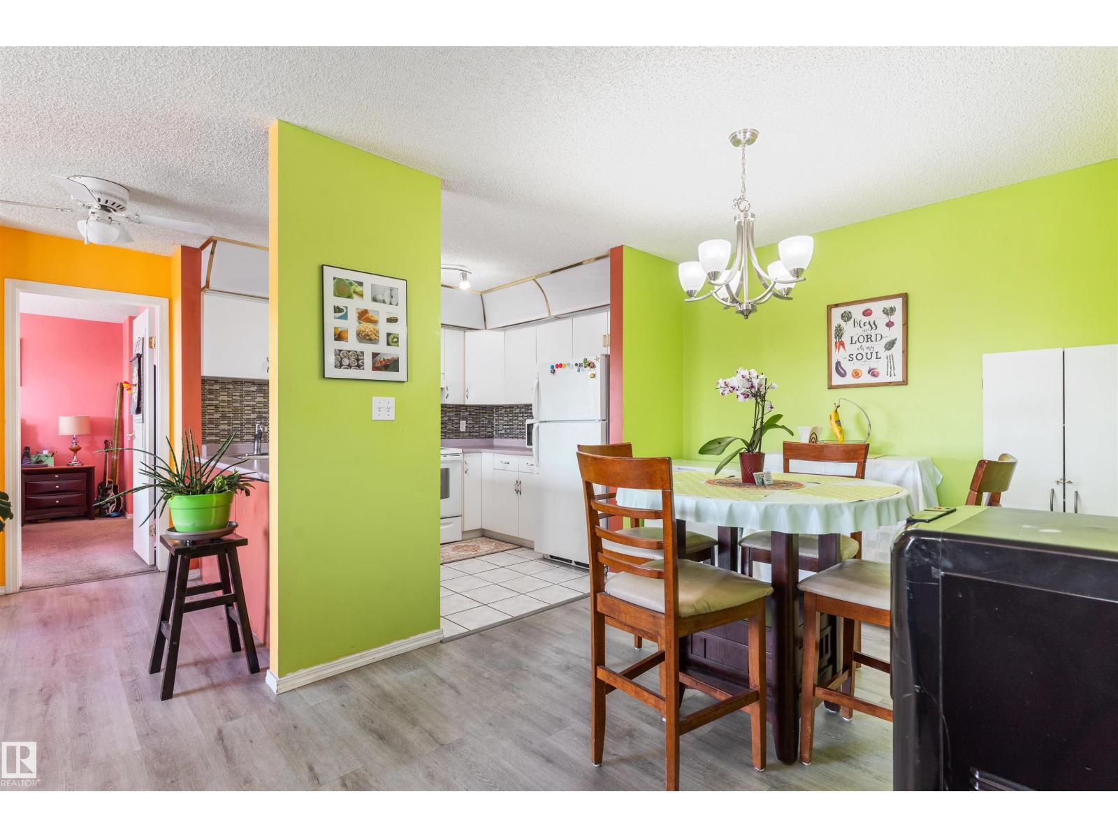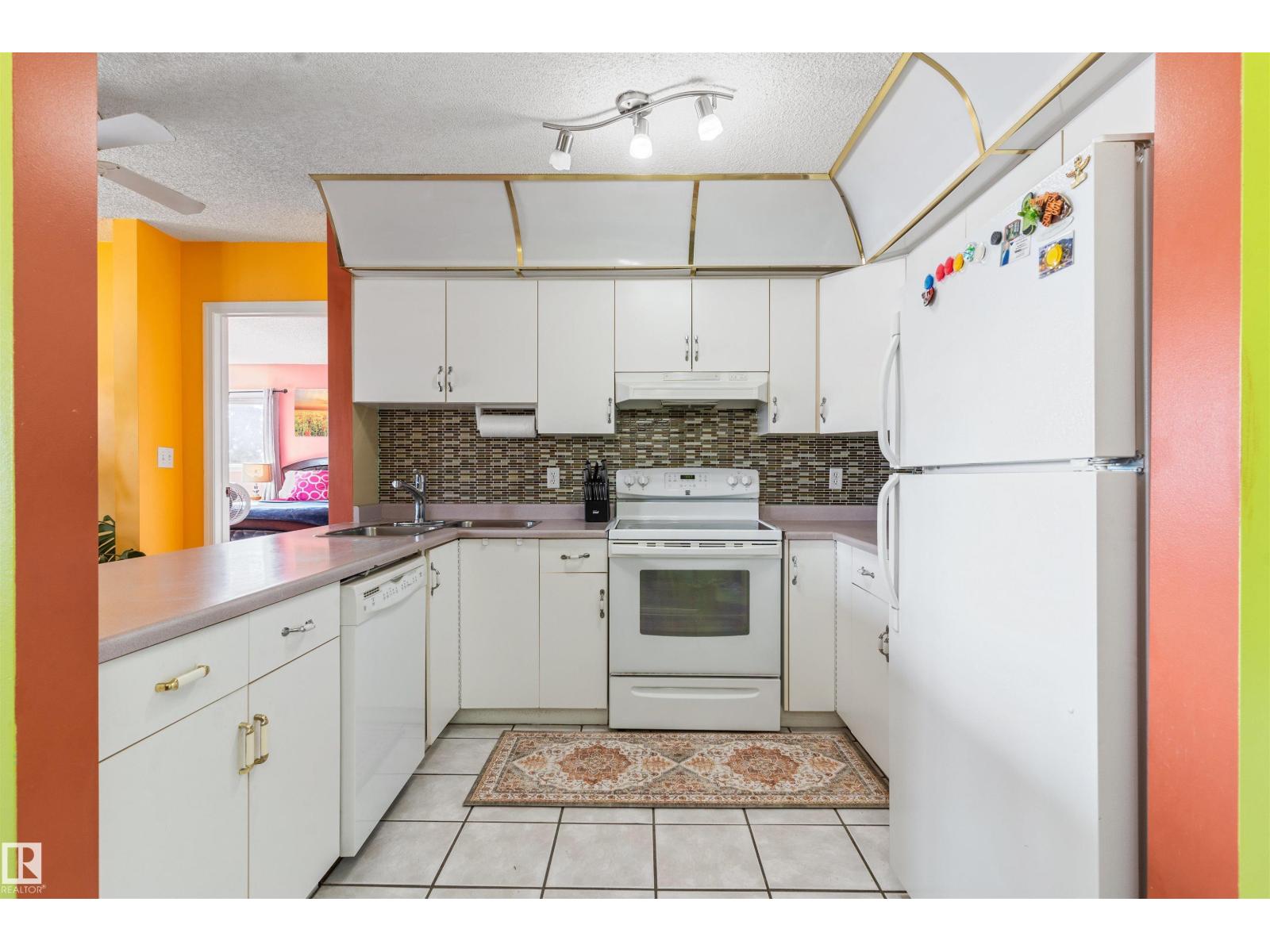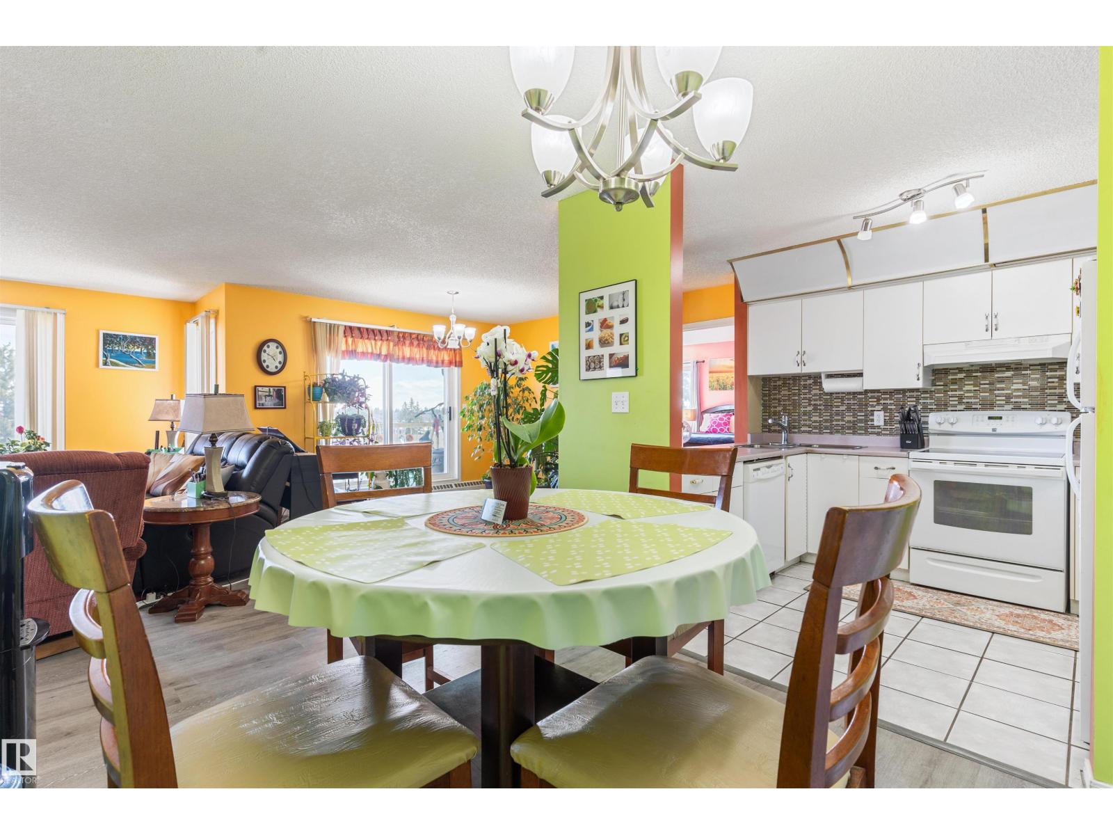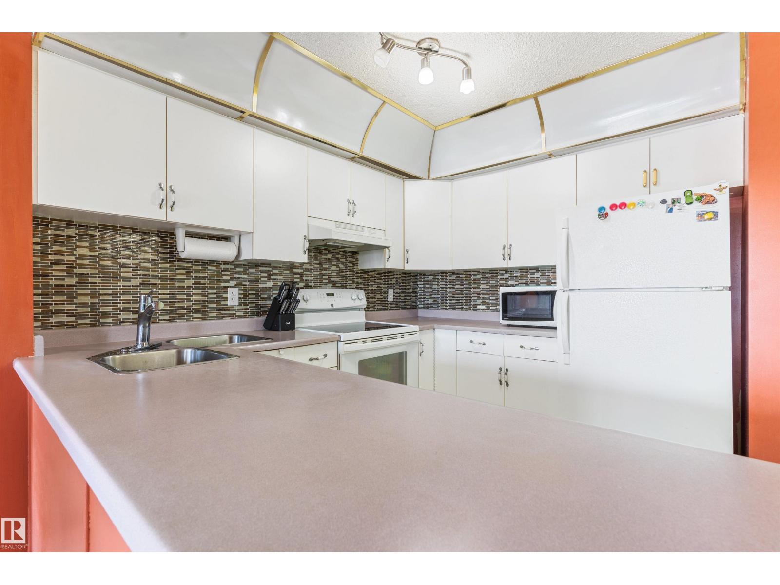 Beautiful 2-bedroom, 2-bath TOP- FLOOR CONDO offering a spacious OPEN CONCEPT LAYOUT, ideally located just minutes from WEST EDMONTON MALL and all the other amazing amenities West Edmonton has to offer! This bright and inviting unit features a LARGE ENTRANCE, a SUN FILLED LIVING ROOM with abundant natural light, and a well-appointed KITCHEN with tasteful BACKSPLASH. The GENEROUS SIZE MASTER BEDROOM includes the EN-SUITE BATHROOM, while the SECOND BEDROOM is also a great size—perfect for guests or can be used as an office. RECENT UPGRADES include NEWER FLOORING IN THE LIVING & DINNING AREA (approx. 2024), along with UPDATED BACKSPLASH & LIGHT FIXTURES (approx. 5 years ago). Additional features include EN-SUITE LAUNDRY, STORAGE and a functional layout designed for comfortable living. There is also an assigned parking stall. Enjoy access to excellent building amenities, including a swimming pool, jacuzzi, sauna, and exercise room—adding convenience and lifestyle appeal to this fantastic condo. (id:63190)