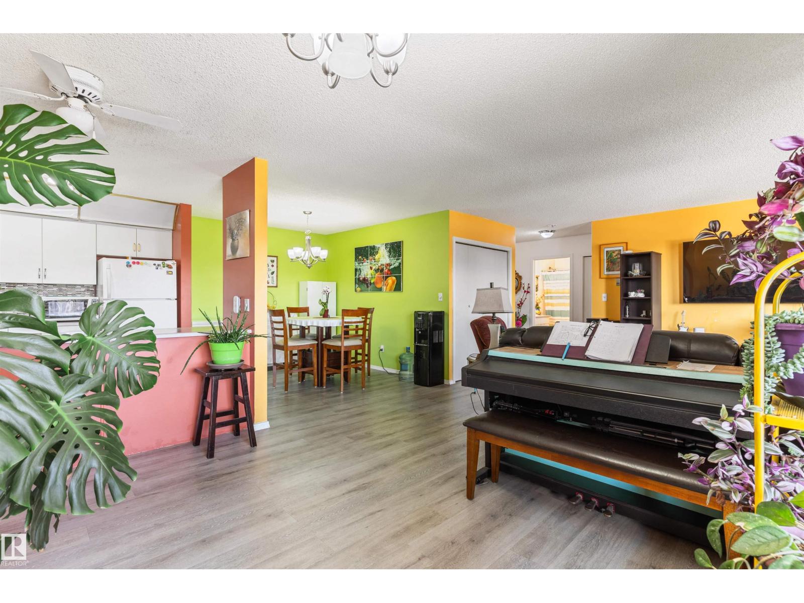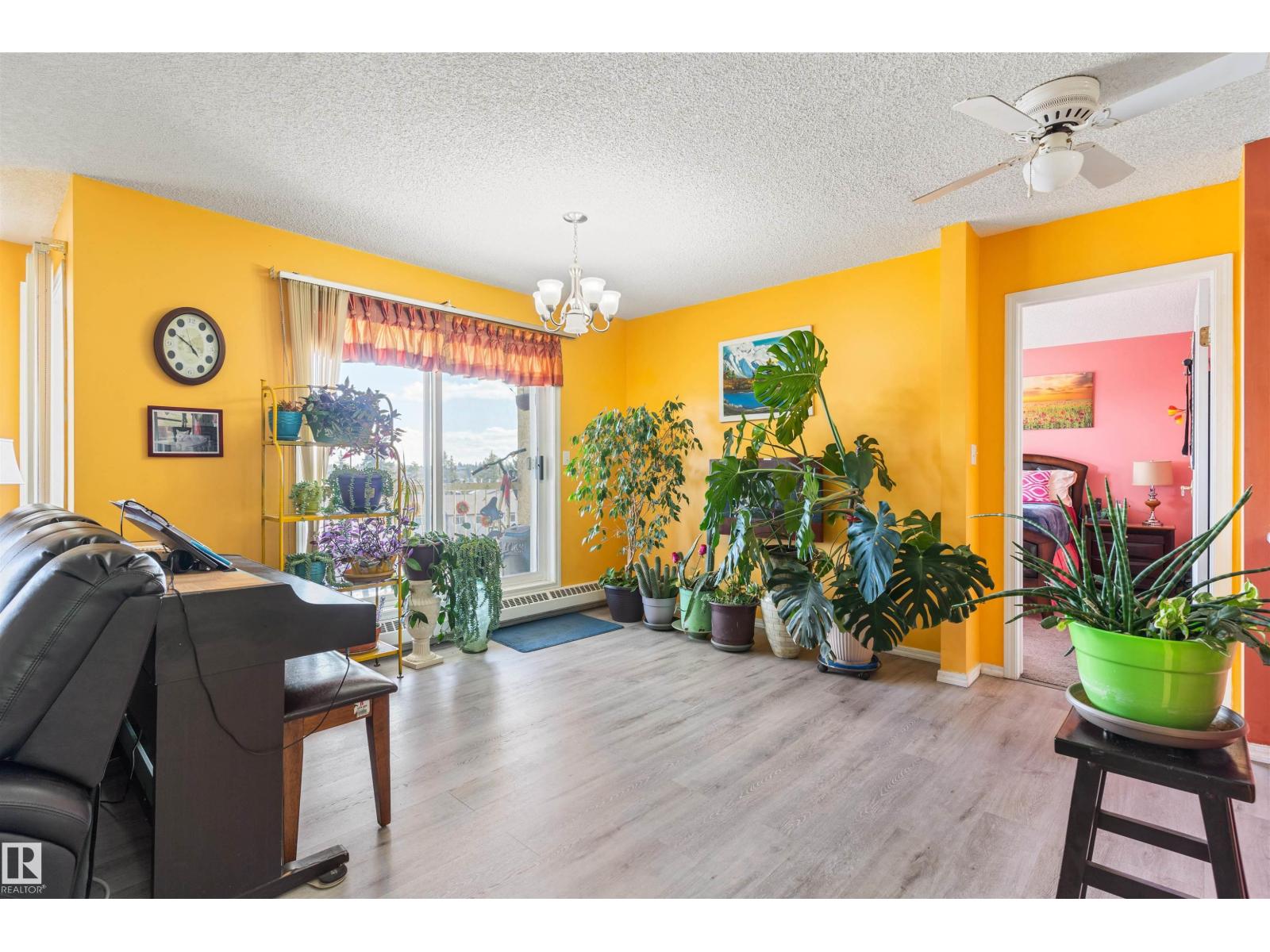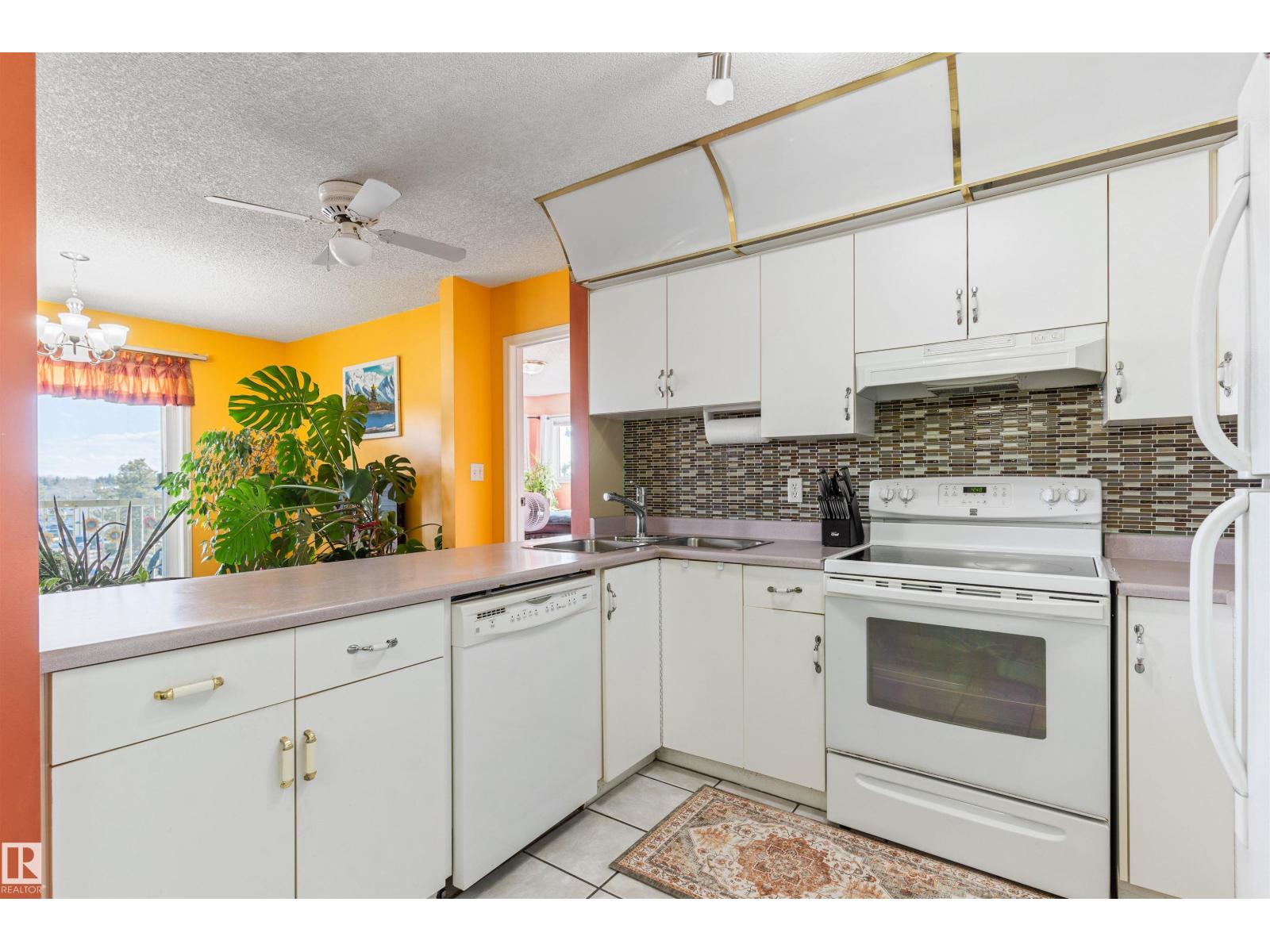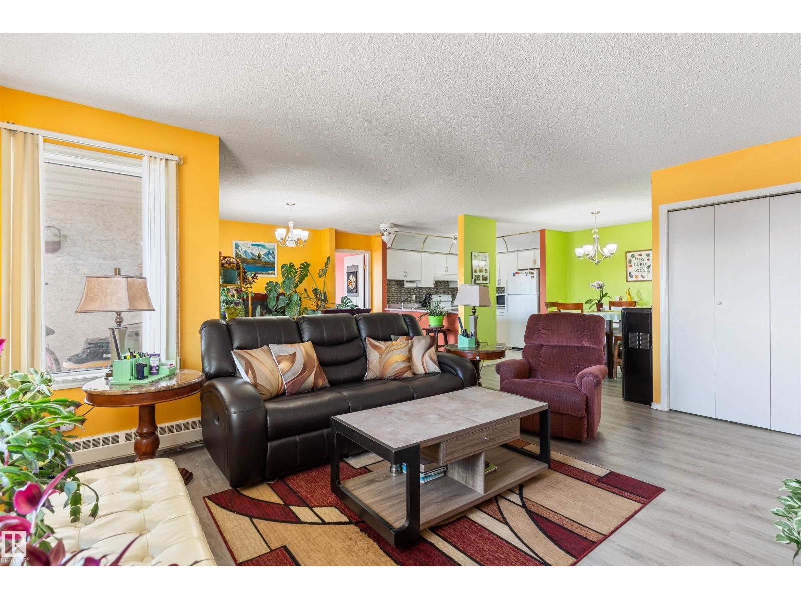 Beautiful 2-bedroom, 2-bath TOP- FLOOR CONDO offering a spacious OPEN CONCEPT LAYOUT, ideally located just minutes from WEST EDMONTON MALL and all the other amazing amenities West Edmonton has to offer! This bright and inviting unit features a LARGE ENTRANCE, a SUN FILLED LIVING ROOM with abundant natural light, and a well-appointed KITCHEN with tasteful BACKSPLASH. The GENEROUS SIZE MASTER BEDROOM includes the EN-SUITE BATHROOM, while the SECOND BEDROOM is also a great size—perfect for guests or can be used as an office. RECENT UPGRADES include NEWER FLOORING IN THE LIVING & DINNING AREA (approx. 2024), along with UPDATED BACKSPLASH & LIGHT FIXTURES (approx. 5 years ago). Additional features include EN-SUITE LAUNDRY, STORAGE and a functional layout designed for comfortable living. There is also an assigned parking stall. Enjoy access to excellent building amenities, including a swimming pool, jacuzzi, sauna, and exercise room—adding convenience and lifestyle appeal to this fantastic condo. (id:63190)