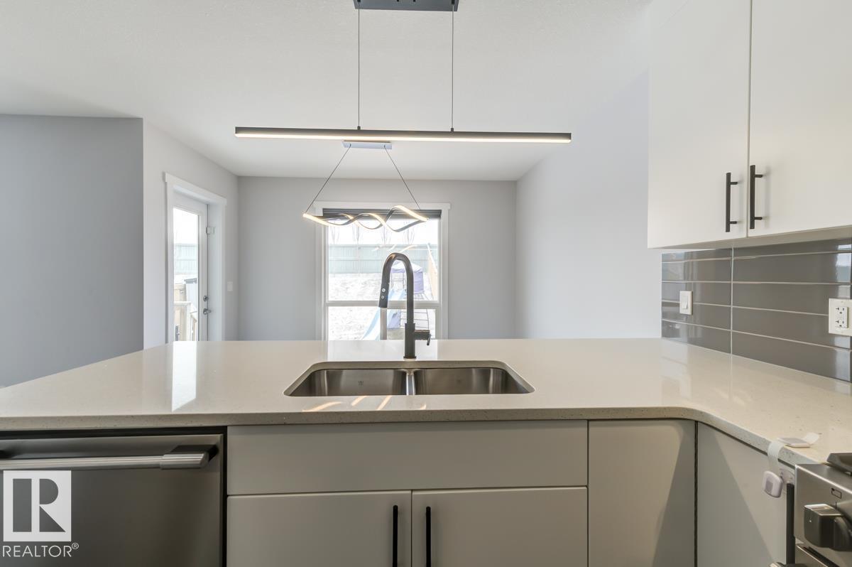 Step into this beautifully crafted half duplex that perfectly blends modern design w/ functionality, complete w/ dbl attached garage. The bright, open main flr is enhanced by stylish contemporary finishes & durable vinyl plank flrs throughout, creating a warm yet sophisticated space for daily living. At the heart of the home is the stunning kitchen, featuring sleek quartz countertops, s/s appliances & a spacious peninsula w/ bar seating—perfect for casual meals or hosting guests. A convenient walk-through pantry adds both storage and seamless access. Upstairs, you’ll find 3 generously sized bedrooms, a full 4-pc bath and a dedicated laundry area w/ built-in shelving for added convenience. The primary suite is a relaxing retreat w/ walk-in closet & private ensuite showcasing a large shower. Add'l upgrades incl central A/C & epoxy-coated garage floor for a polished, durable finish. Step outside to the west-facing backyard—ideal for enjoying evenings, summer BBQs & outdoor gatherings. Move in & enjoy! (id:63190)