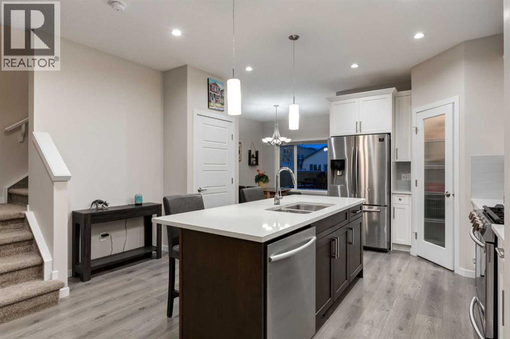**JOIN US for an OPEN HOUSE on SATURDAY, APRIL 25th from 2:00 pm-5:00 pm!!** WELCOME to this STUNNING DETACHED 2-STOREY HOME offering 2,028 SQ FT of TOTAL DEVELOPED LIVING SPACE featuring 4 BEDROOMS, 3.5 BATHROOMS in the SOUGHT-AFTER COMMUNITY of DRAKE LANDING in OKOTOKS! Situated on a 3,731 SQ FT CORNER LOT across from a GREEN SPACE, this home featuring a LOW-MAINTENANCE ROCK GARDEN FRONT YARD w/CLEAN, MODERN CURB APPEAL.From the moment you arrive, you’ll appreciate the CURB APPEAL, LOW-MAINTENANCE LANDSCAPING + welcoming FRONT PORCH. Step inside to a BRIGHT + INVITING FOYER highlighted by 9’ CEILINGS, MODERN LVP FLOORING + NEUTRAL TONES that flow seamlessly throughout the OPEN-CONCEPT MAIN FLOOR.The LIVING ROOM is warm + welcoming, centered around a STYLISH ELECTRIC FIREPLACE w/CUSTOM SHELVING, creating the perfect space to relax, unwind + gather w/family + friends. The KITCHEN is truly the HEART OF THE HOME, designed w/2-TONE CABINETRY, QUARTZ COUNTERTOPS, SS APPLIANCES w/GAS STOVE + a CENTRAL ISLAND perfect for prep + casual dining. A CORNER PANTRY provides ample storage, while the thoughtful layout makes cooking + entertaining feel effortless. The layout flows effortlessly into the DINING AREA, ideal for both everyday meals + hosting guests. A 2 PC BATH is discreetly tucked near the back door — ideal for guests + everyday use.Upstairs, you’ll find 3 BEDROOMS, including a SPACIOUS PRIMARY RETREAT feat. a WALK-IN CLOSET w/SHELVING to keep your wardrobe organized + a PRIVATE 4 PC ENSUITE complete w/a SOAKER TUB — perfect for relaxing after a long day. The 2ND + 3RD BEDROOMS are GOOD-SIZED + share a 4 PC BATH, while UPPER-LEVEL LAUNDRY adds everyday convenience.The FULLY DEVELOPED BASEMENT expands your living space even further, offering a LARGE FAMILY/REC ROOM, a 4TH BEDROOM + a 3PC BATHROOM — perfect for guests, teens, or extended family.Additional features include an AIR FILTRATION SYSTEM, LVP + CARPET FLOORING THROUGHOUT + a layout designed for MODERN F AMILY LIVING.Step outside to your PRIVATE BACKYARD, set on a SPACIOUS 3,731 SQ FT LOT, complete w/a DECK, BBQ GAS LINE, GARDEN AREA + SHED — perfect for summer BBQs, relaxing evenings, or letting kids + pets play freely. With 2 PARKING STALLS + rear lane access, this home offers both convenience + flexibility.Located in the VIBRANT COMMUNITY of DRAKE LANDING, you’re surrounded by PARKS, PLAYGROUNDS, WALKING PATHS + SCHOOLS, including ÉCOLE BEAUSOLEIL just a short walk away — making this an ideal location for families. Enjoy quick access to shopping, amenities + major routes, all while being part of a welcoming, connected neighbourhood.This is more than a home — it’s a TURNKEY OPPORTUNITY offering SPACE, STYLE + LOCATION in one of Okotoks’ most desirable communities. BOOK YOUR SHOWING TODAY! (id:63190)