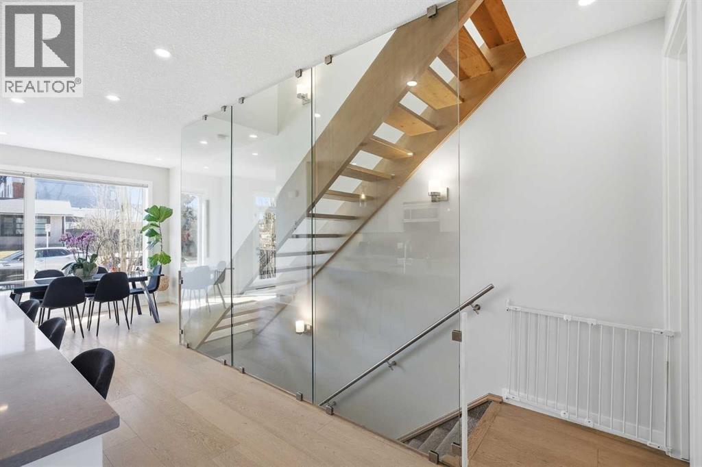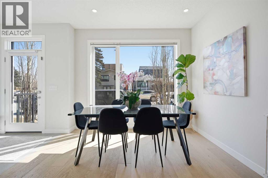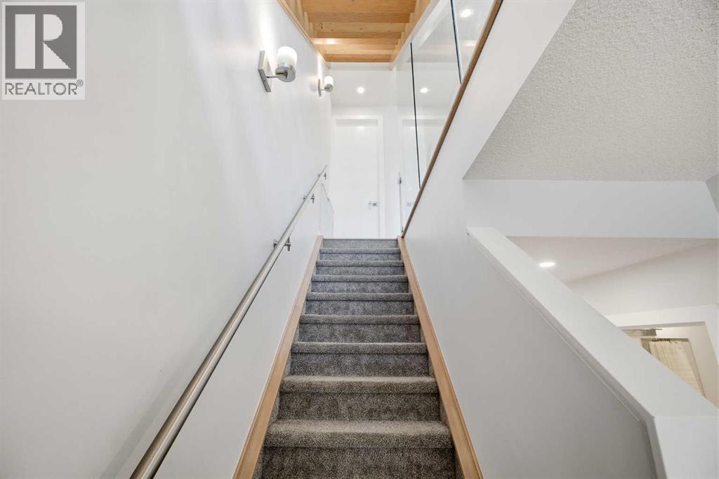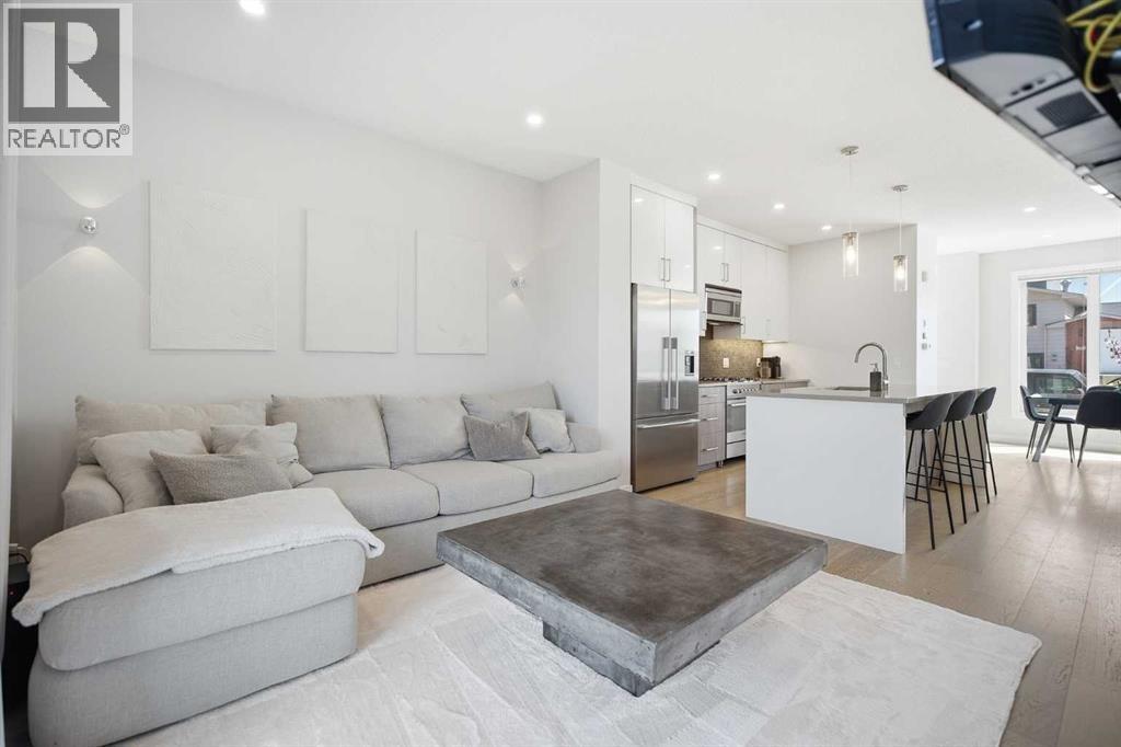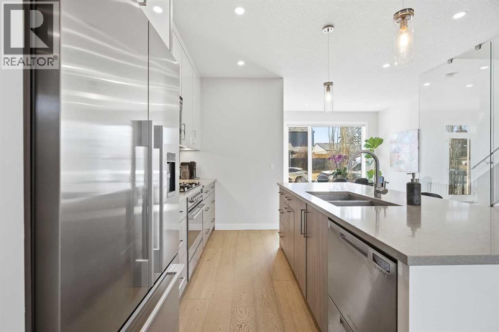 Welcome to this beautifully designed 4 bedroom, 3.5 bathroom townhouse offering 1,690 sq. ft. of total living space in the highly desirable community of Windsor Park. This spacious home features a functional layout for families and entertaining, with a bright open-concept living area and modern finishes throughout. Many up grades set this home apart, including a spectacular eye catching Open Riser Staircase with sleek glass panels, engineered Hardwood flooring, solid 8 ft doors throughout, 9 ft high ceilings, A huge Skylight, modern window coverings, and AIR CONDITIONING. The gourmet kitchen is a true highlight featuring Fisher & Paykel SS appliances, including a Gas stove, elegant neutral cabinetry, QUARTZ countertops and a large Island , all adjacent to a sun filled dining space, ideal for entertaining. The living room displays a gas fireplace so you can cozy up in the cooler months and a patio door for access to the the Private Fenced-in Patio backyard. The impressive and spacious primary suite offers soaring ceilings, a walk in closet, and a luxurious ensuite complete with dual sinks and a glass enclosed shower--truly a standout feature. Two additional bedrooms are good sized and the conveniently located Full sized Washer/Dryer add to the home's functionality. The fully developed basement features 9 ft ceilings, a comfortable Rec-room with a wet bar, a 4th bedroom and a full 4 piece bath--Ideal for guests, extended family or just entertaining. This townhouse is part of a SELF MANAGED Condo, with LOW fees of only $345.00 a month, offering an affordable option for maintenance and management. Included is a single detached garage. . Ideally located to an abundance of amenities such as: Britannia/Chinook Shopping Centers, Lina's Italian store, Stanley Park, Dog Parks, Brown's social house, Village Ice Cream, Sunterra Market, Monogram's, Schools, Public Transit, and easy access to Elbow Drive and Macleod Trail. This home has so much to offer...Location, Value a nd Affordability! Come see what Windsor has to offer ! (id:63190)