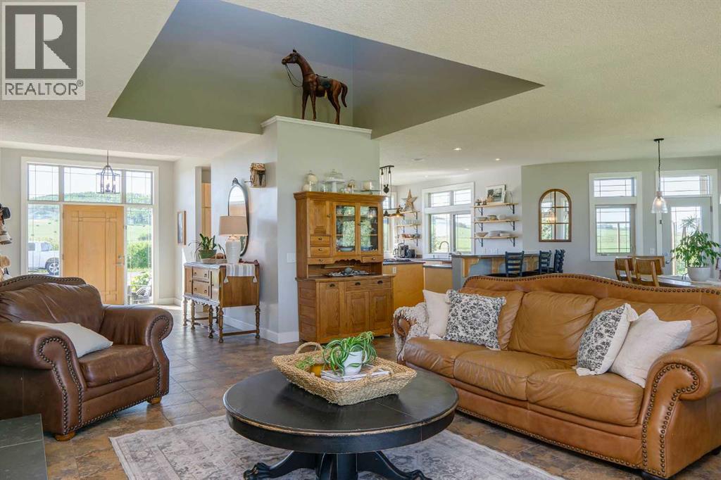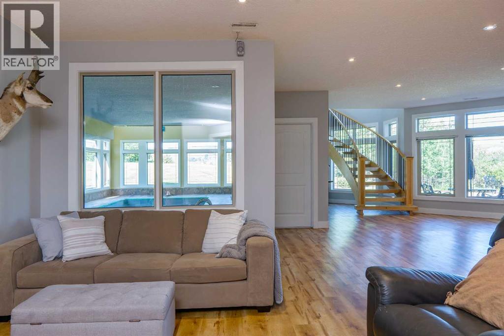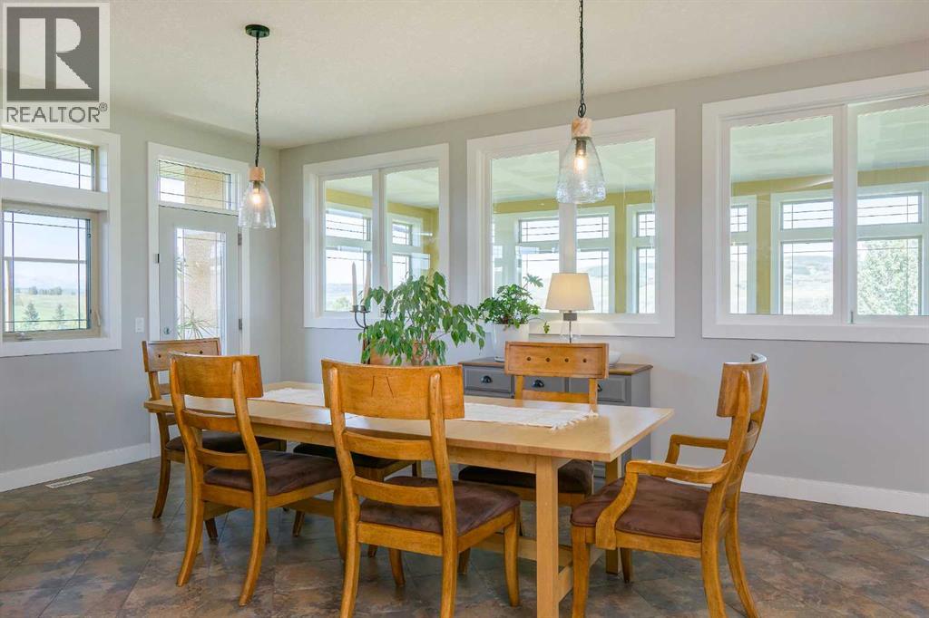 Set along the edge of the Jumping Pound Creek Valley, this remarkable 59-acre parcel is anchored by a thoughtfully designed custom residence, where architecture and landscape come together in perfect balance. Intentionally designed to maximize 360 degree views, this home captures the mountains to the West with valley and foothill vistas to the west and north and north - creating a living experience that feels both expansive and deeply connected to its setting. The walkout bungalow offers generous proportions and open, light-filled spaces that invite the outdoors in. Large expanses of glass frame the ever-changing wildlife filled landscape, while the layout reflects a careful consideration of how the home is lived in, with four bedrooms and three and a half baths designed to accommodate both everyday comfort and gathering. Positioned within the county, the eastern property boundary shares a property line with the town which services the property with a 2026 paved road & planned sidewalks, leading to two K-8 schools and commercial restaurants and services and offers a rare balance of privacy and accessibility. A newly completed custom 2023 accessory dwelling unit is permitted as a short term rental in a separate serviced yard site, which adds flexibility for extended family, guest use, or a guest house or office and workshop. Beyond the home, the land itself presents additional potential, whether as a private estate, an equestrian setting, or a longer-term vision for thoughtfully planned lots though further subdivision as Cochrane grows. A property defined by design, setting, and the freedom to shape what comes next. (id:63190)