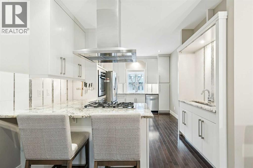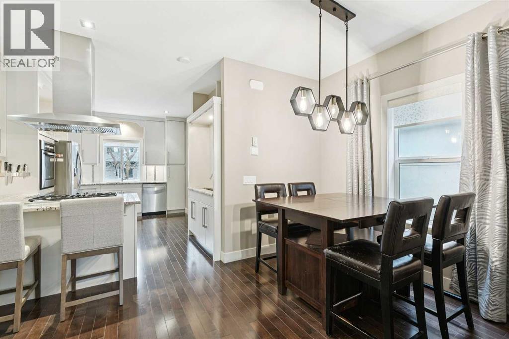 This is an exceptional opportunity to own a single detached home with a south backyard at an attractive price point in the heart of the vibrant Marda Loop area. It is perfect for a couple or small family seeking space, style, and walkable convenience. Inside, a neutral palette and warm hardwood floors create an inviting main floor designed for everyday living. A glass-enclosed home office provides a quiet, light-filled workspace, while a contemporary fireplace elegantly separates the living and dining areas, adding both function and architectural interest. The bright, open-concept kitchen is thoughtfully designed with a gas cooktop, stainless steel appliances, bar sink for entertaining, generous storage, and a breakfast bar for casual meals or morning coffee. A practical mudroom and powder room offer seamless access to the double detached garage, making daily routines effortless. Upstairs, the primary retreat features large windows, two closets, and a well-appointed ensuite with double sinks and a generous tub/shower combination. Two additional bedrooms, a full bathroom, and convenient laundry make this level well suited for family living. The fully developed basement extends the home’s versatility with a comfortable family room for movie nights, space for a games table or play area, plus a fourth bedroom and additional bathroom, ideal for guests, a teen, or extended family. Outside, the sunny south-facing backyard is a true highlight, offering a private deck with hot tub, mature trees, and room to relax or entertain all summer long. Located on a lively street in a sought-after inner-city neighbourhood, you’re just steps from Richmond School, playgrounds, and the Richmond Knob Hill outdoor skating rink. It is only minutes to Marda Loop and 17th Avenue’s trendy shops, restaurants, cafes, and groceries. With an easy bike commute to downtown, this home delivers outstanding lifestyle value in one of Calgary’s most desirable communities. (id:63190)