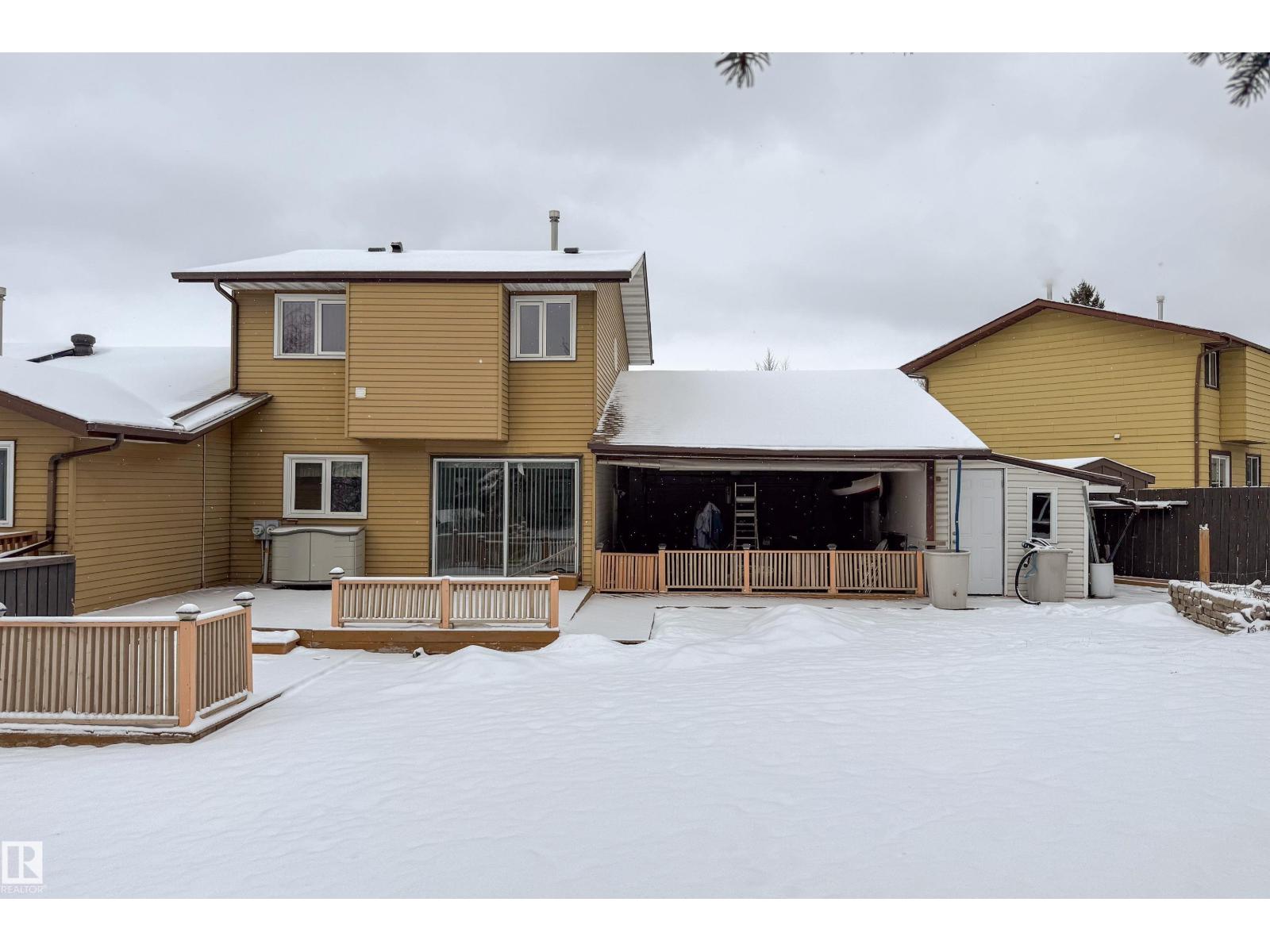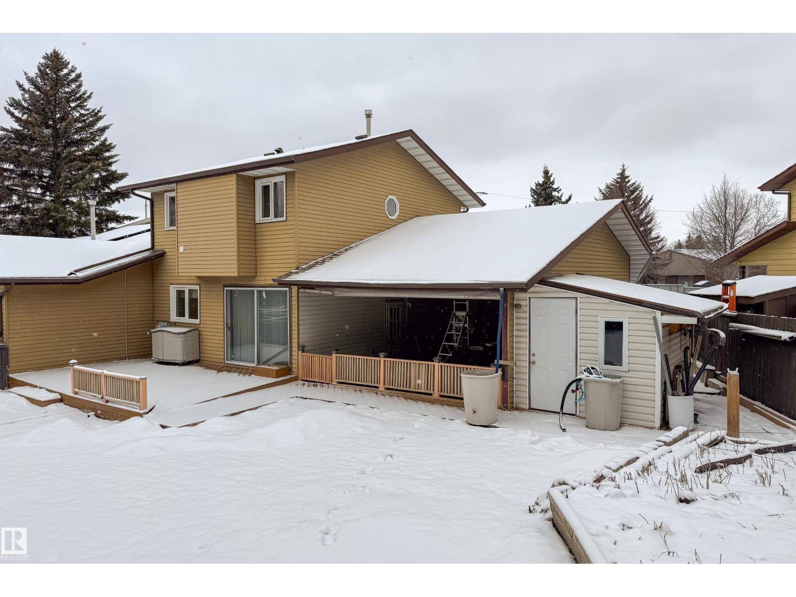 Welcome to this well designed half duplex on a pie-shaped lot in the desirable community of The Gardens (formerly Grandin). Located in a quiet, private cul-de-sac, with just over 1700 sqft of finished living space, this 3 bedroom, 1.5 bath is the ideal place to call home. Bright with natural light the main level features a spacious living room with hardwood floors, a dining room and an eat-in kitchen with a pantry. A convenient 2 pc powder room completes the main floor. Upstairs, you'll find the primary bedroom with a walk in closet, 2 additional bedrooms and a full bathroom. The finished basement includes a rec area, large laundry room, an office and additional storage. Step outside to a south facing two-tiered deck overlooking the fully fenced massive backyard with plenty of space to relax, garden, entertain and enjoy the summer days. The attached covered carport and driveway provide ample parking. New shingles in 2021 Close to schools, shopping, transit, parks and other amenities. (id:63190)