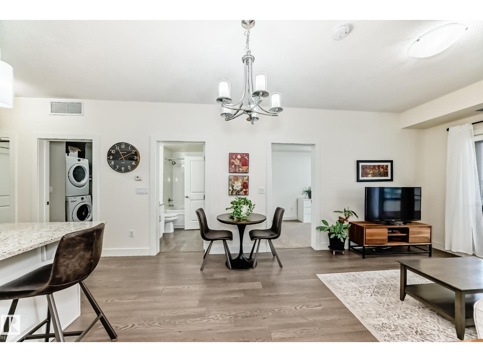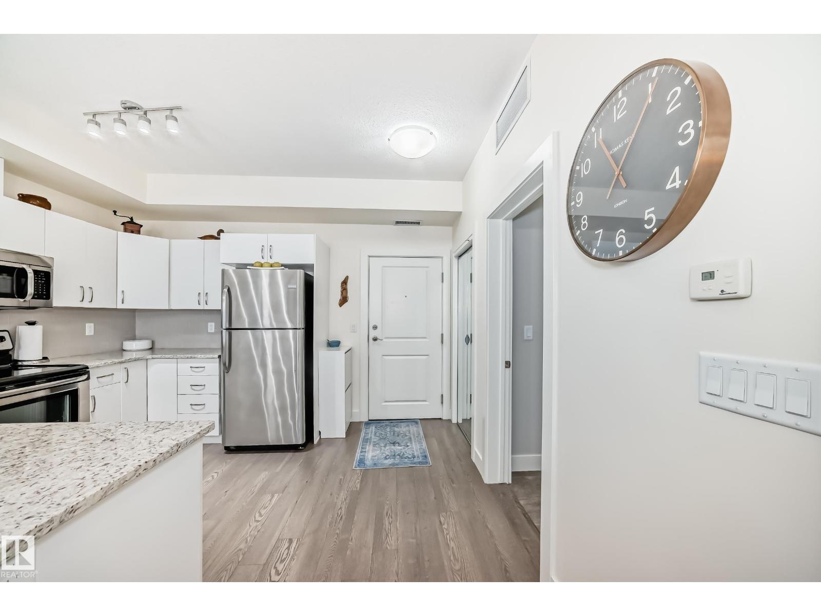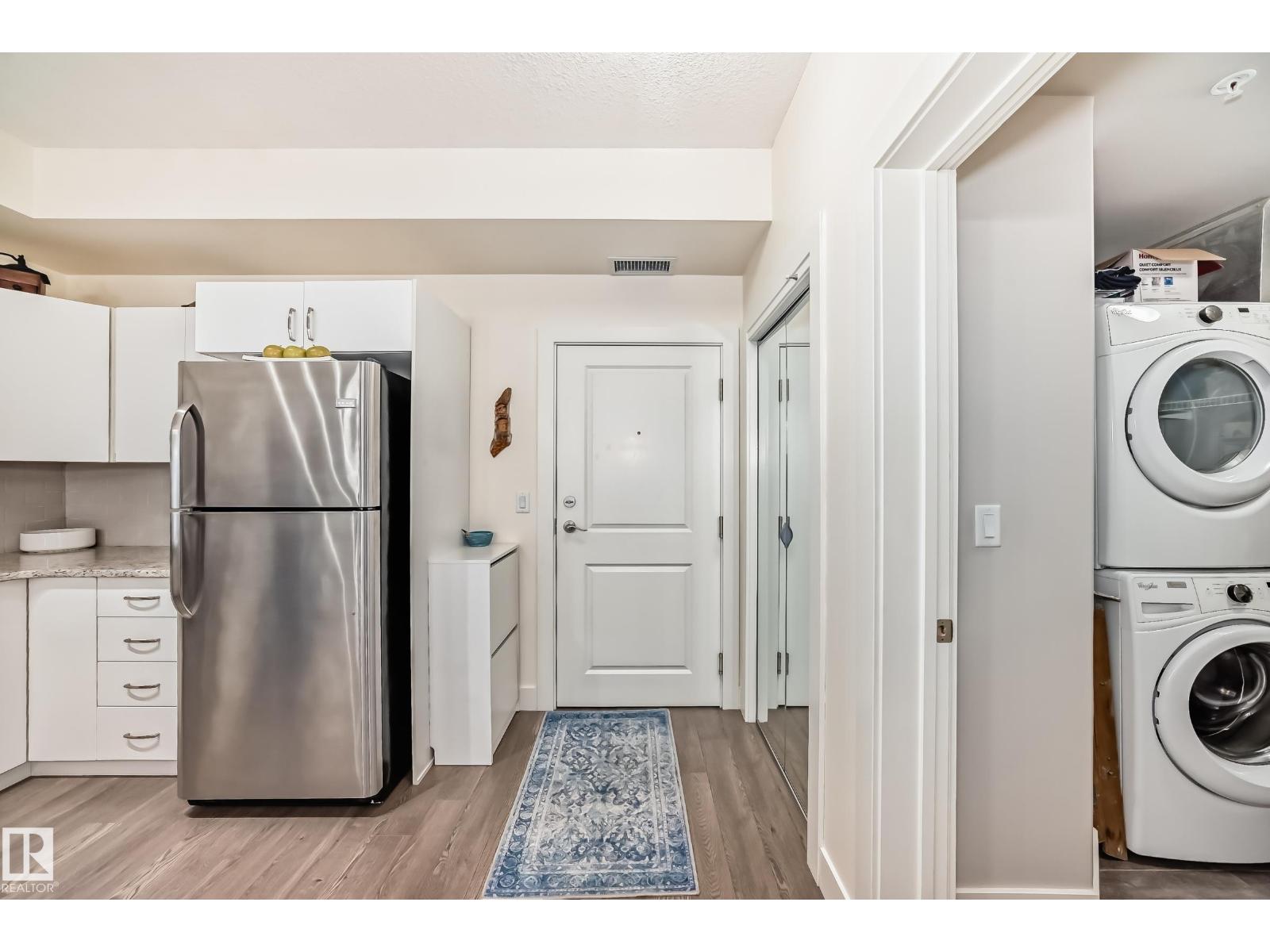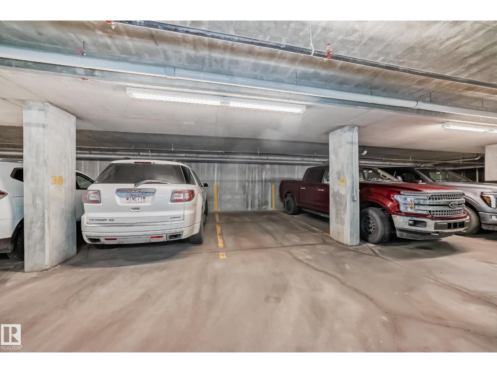 Eton Park Estates - Extremely clean, two bedroom two bathroom second floor of luxury suite that has a generous amount of storage and cabinetry, in-suite, laundry, 4 piece, ensuite, spacious primary suite and second bedroom with ensuite bath. This Quiet building is 18+ includes a heated, titled parking stall (close to elevator), plus a good sized secured storage cage, a great fitness room plus a suite available for rent for overnight guests. Condo fees include heat and water. Walk to Emerald Hills Shopping Plaza, many restaurants, Italian centre shop, close to hospital and more! (id:63190)