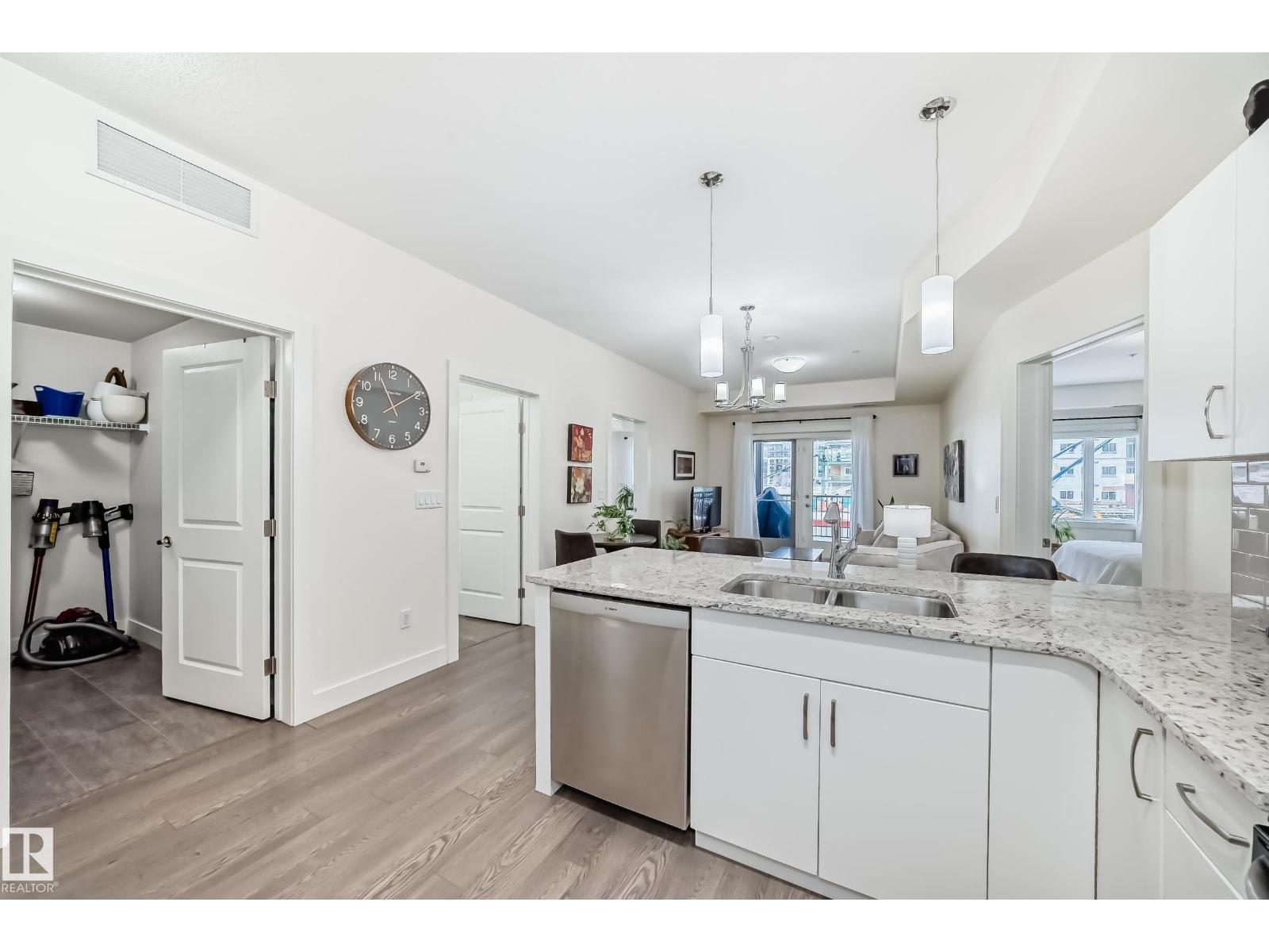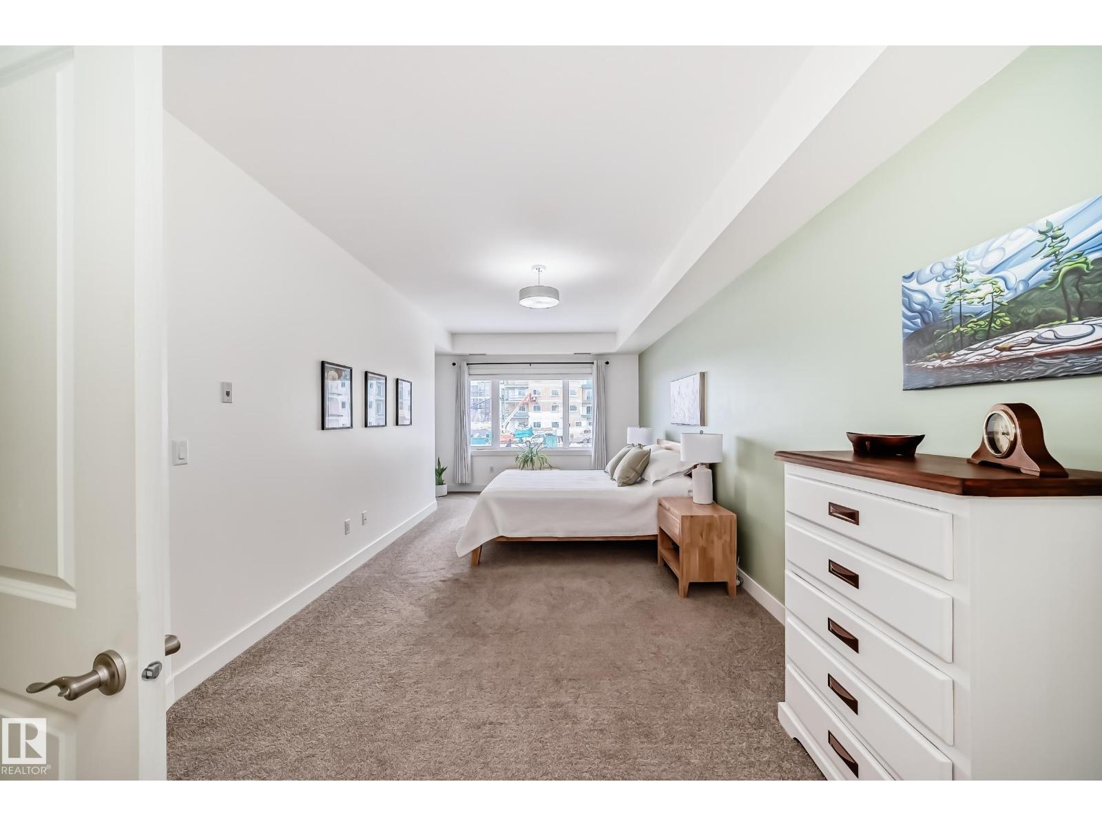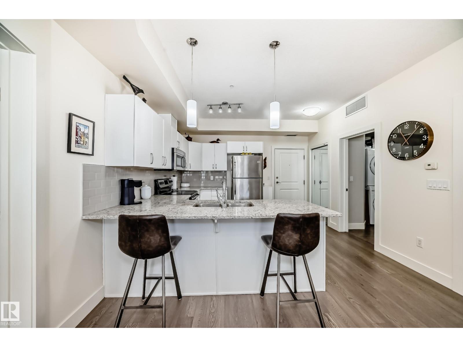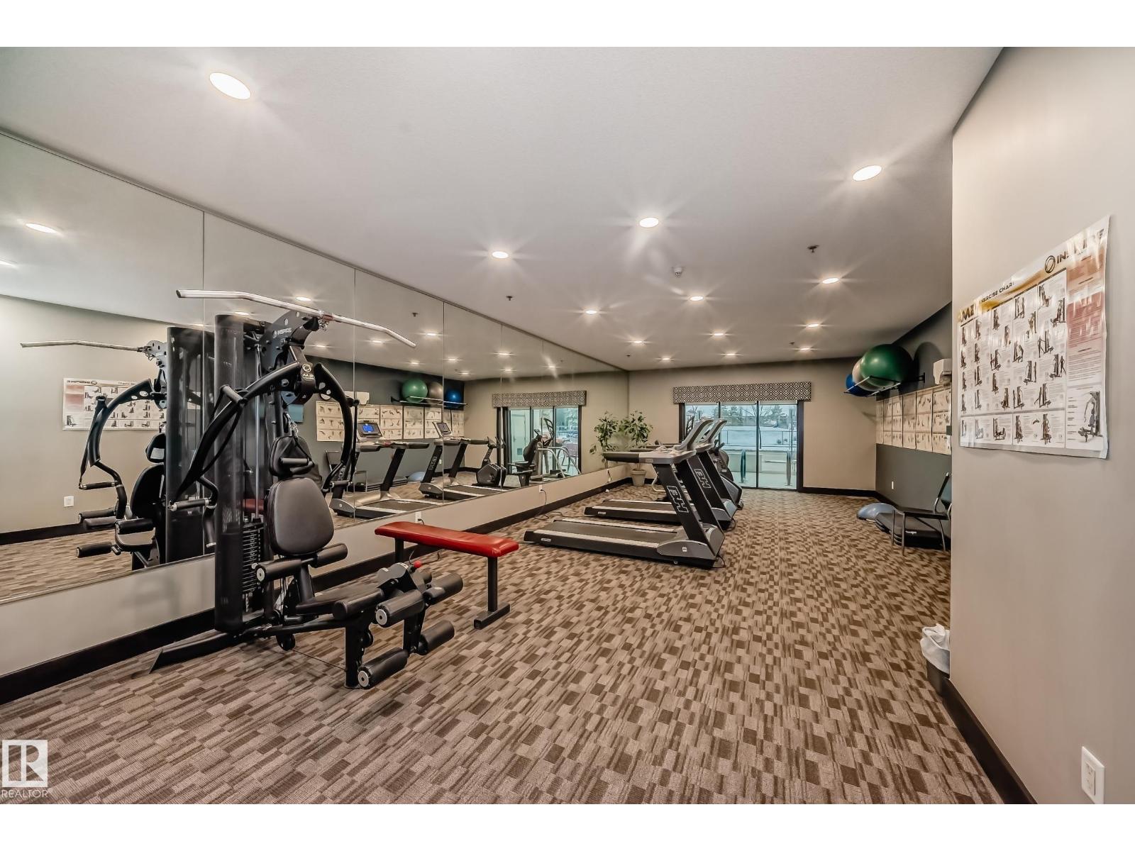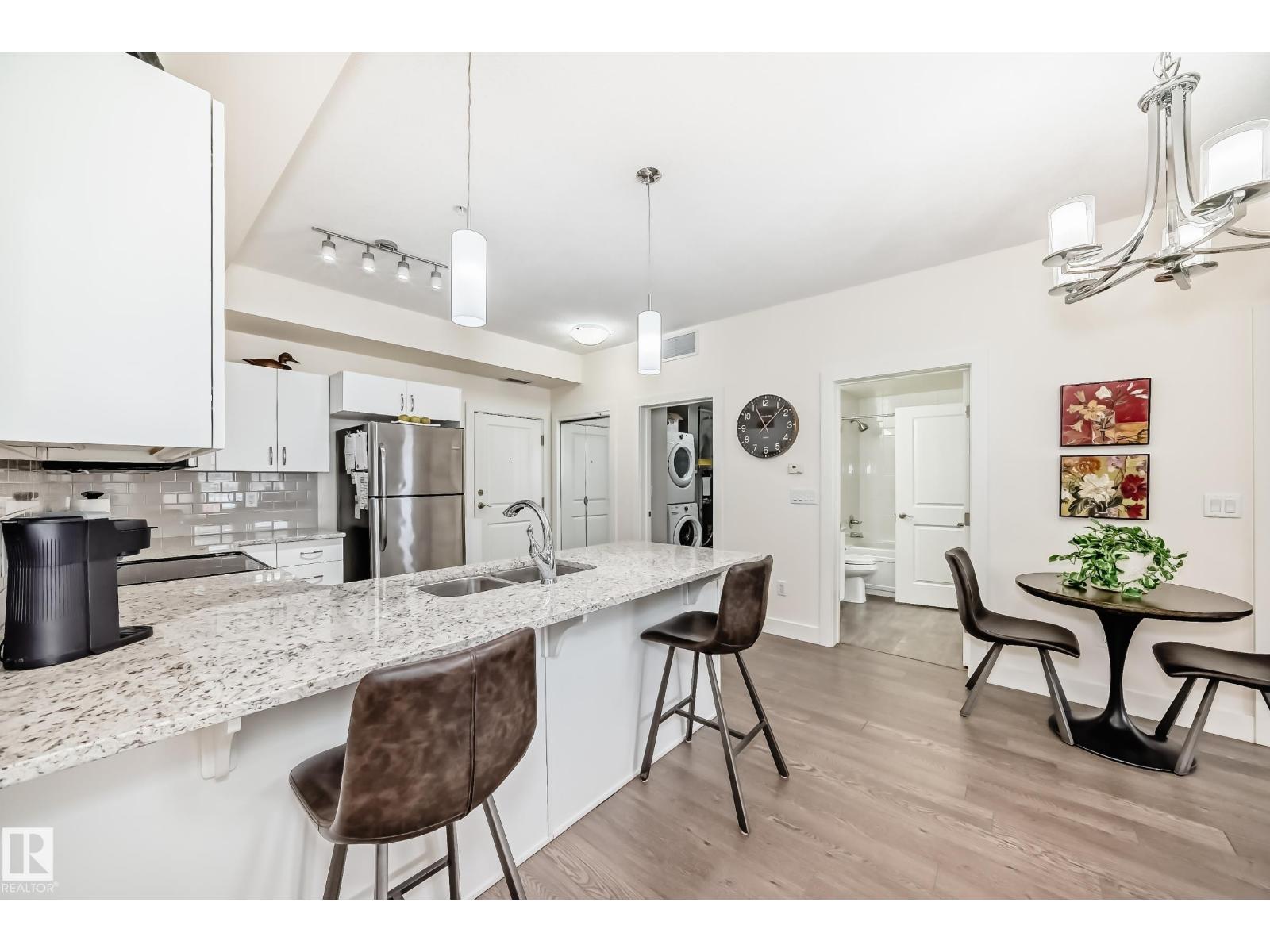 Eton Park Estates - Extremely clean, two bedroom two bathroom second floor of luxury suite that has a generous amount of storage and cabinetry, in-suite, laundry, 4 piece, ensuite, spacious primary suite and second bedroom with ensuite bath. This Quiet building is 18+ includes a heated, titled parking stall (close to elevator), plus a good sized secured storage cage, a great fitness room plus a suite available for rent for overnight guests. Condo fees include heat and water. Walk to Emerald Hills Shopping Plaza, many restaurants, Italian centre shop, close to hospital and more! (id:63190)