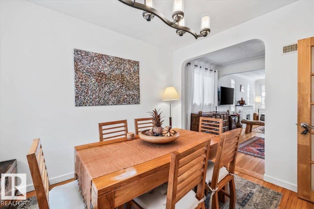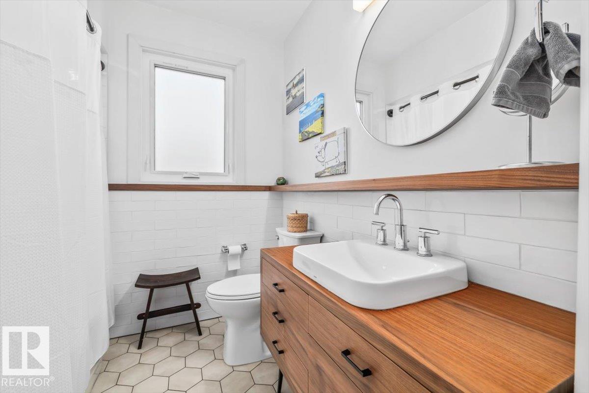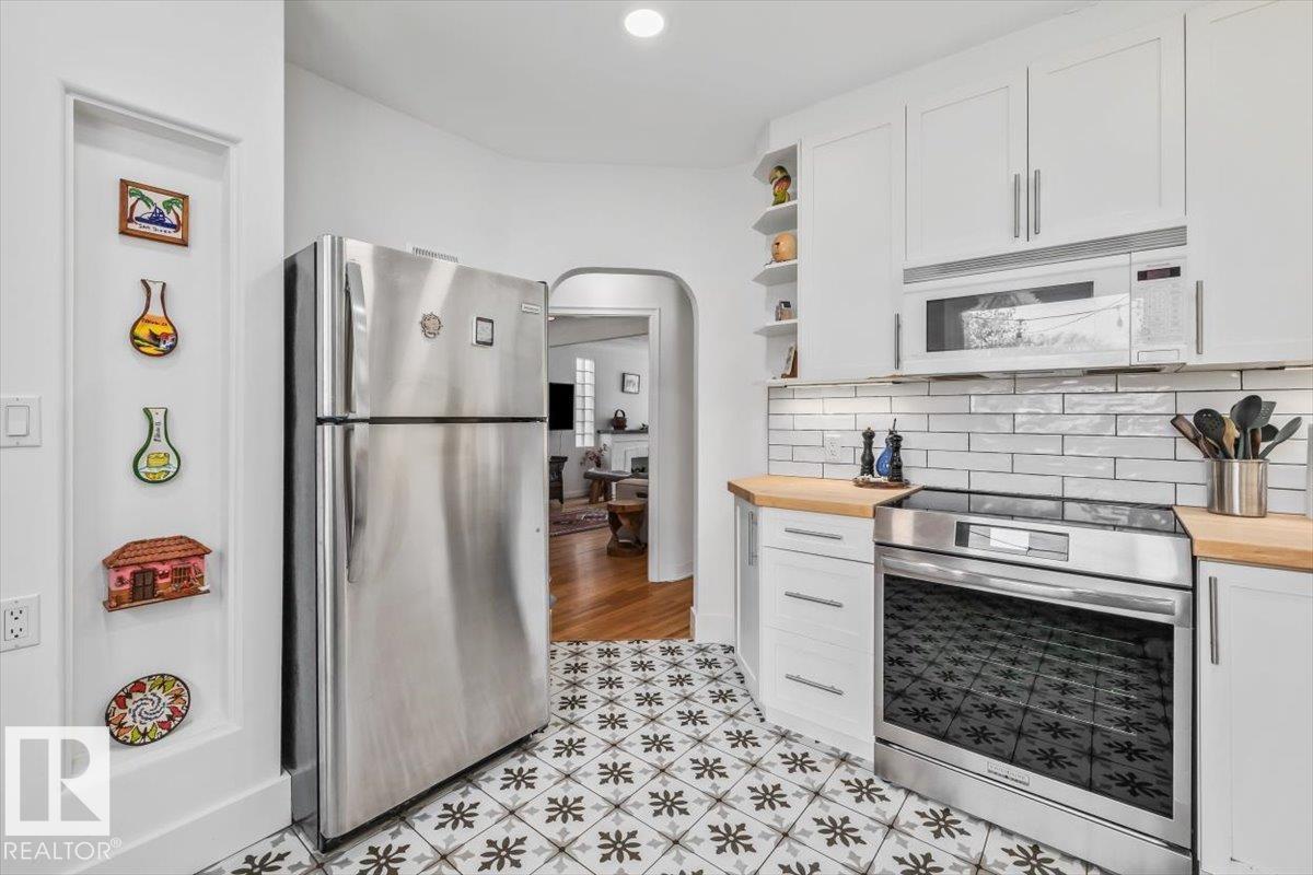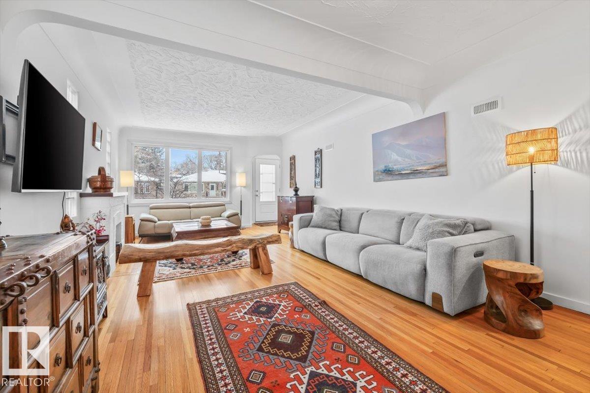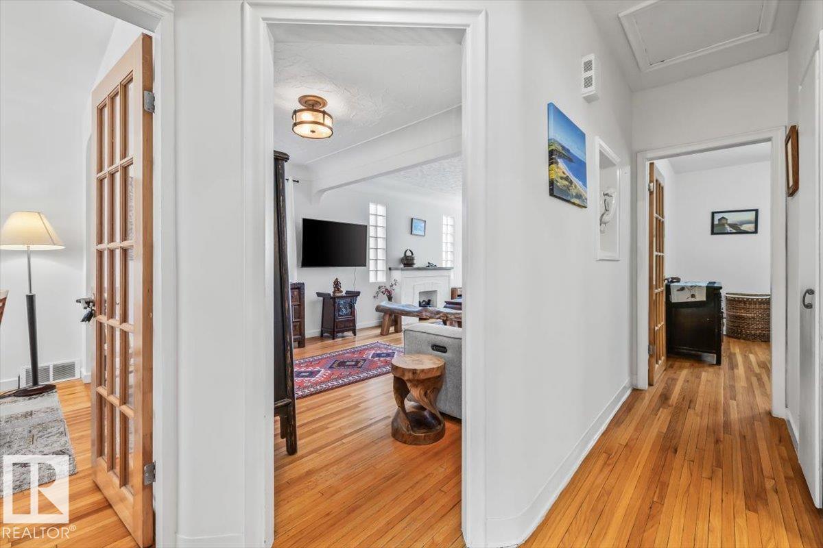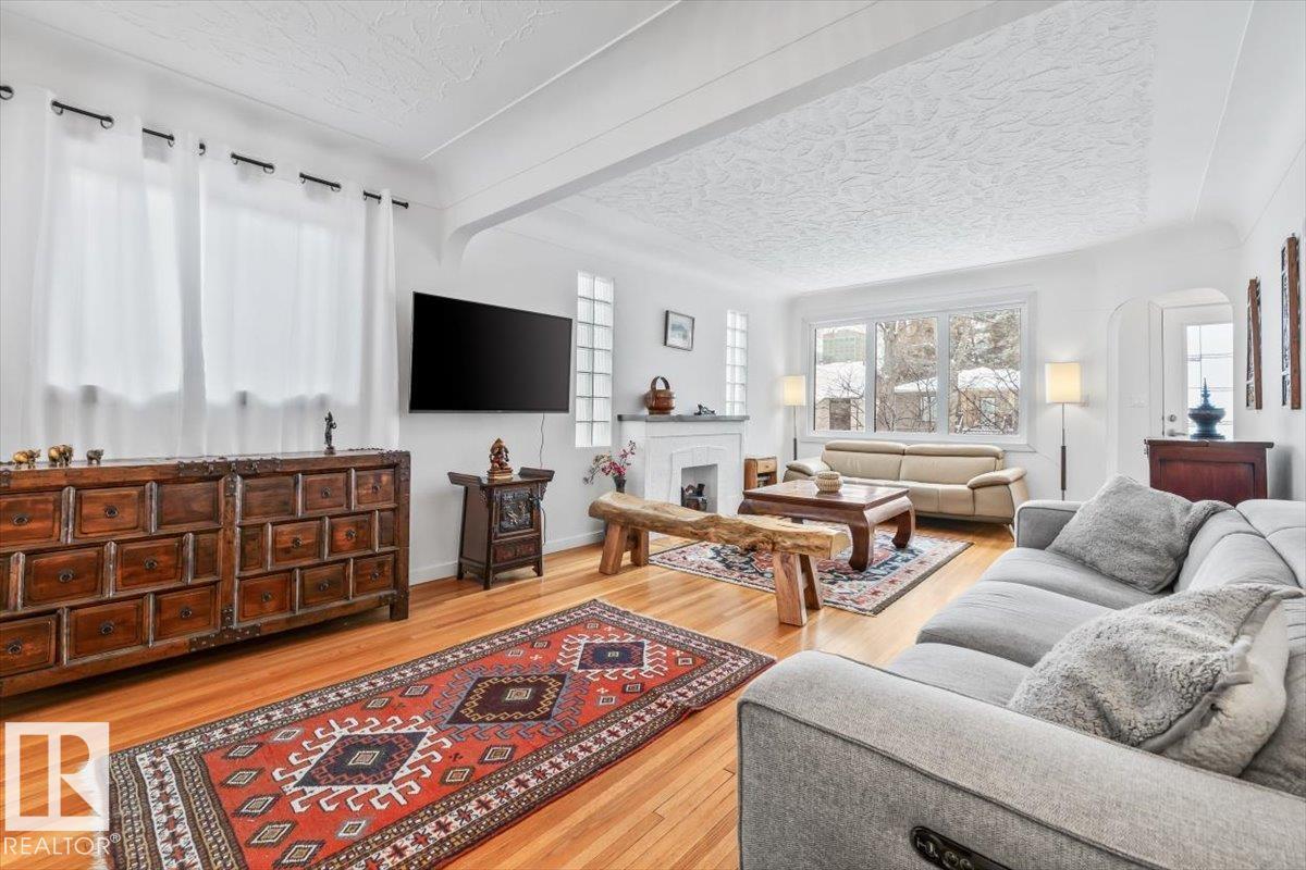 Picture morning coffee in a sun-drenched sanctuary tucked along the leafy streets of Edmonton’s sought-after McKernan. This 2-bed, 2-bath raised bungalow on a 33x132 ft lot offers an exceptional lifestyle for professionals looking to be near the UofA, LRT, Whyte Ave, and river valley. Inside, original hardwood meets modern design. Discover coved ceilings, sweeping architectural curves, and a stunning kitchen featuring warm wood countertops, an exposed brick wall, and a breakfast nook. Retreat to the bright bedroom and a stylishly renovated main bath (2021) with a mid-century vanity. Downstairs, the raised basement feels incredibly bright with large above-grade windows, warm wood floors, a cozy fireplace, and versatile living space, 2nd bedroom. Outside, enjoy a private yard and single detached garage with clever attic storage. Move in with peace of mind thanks to PRO UPGRADES: newer windows ('22), gutters ('23), roof ('17), HWT ('19), AC ('15), and sump pump. A true Edmonton gem, prime investor location. (id:63190)