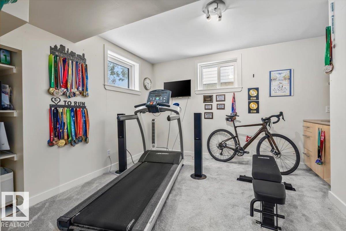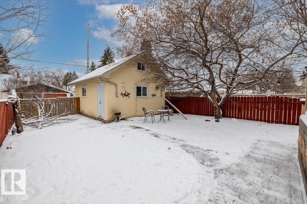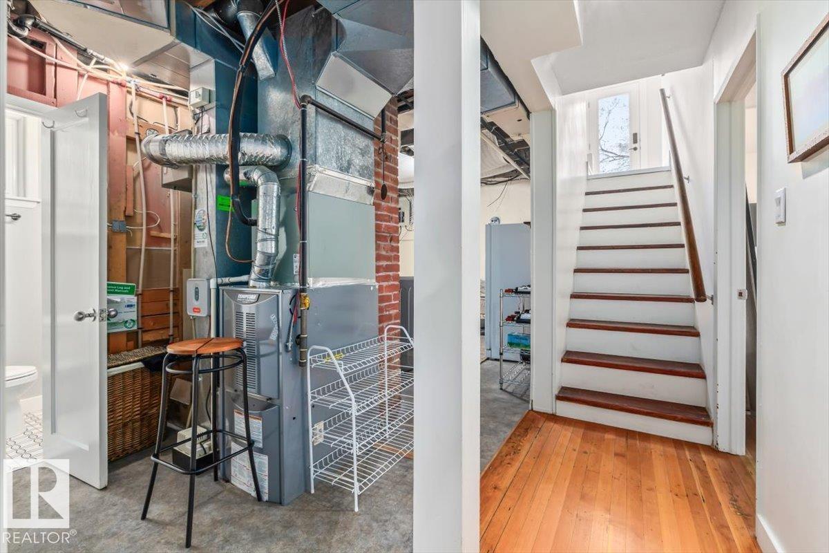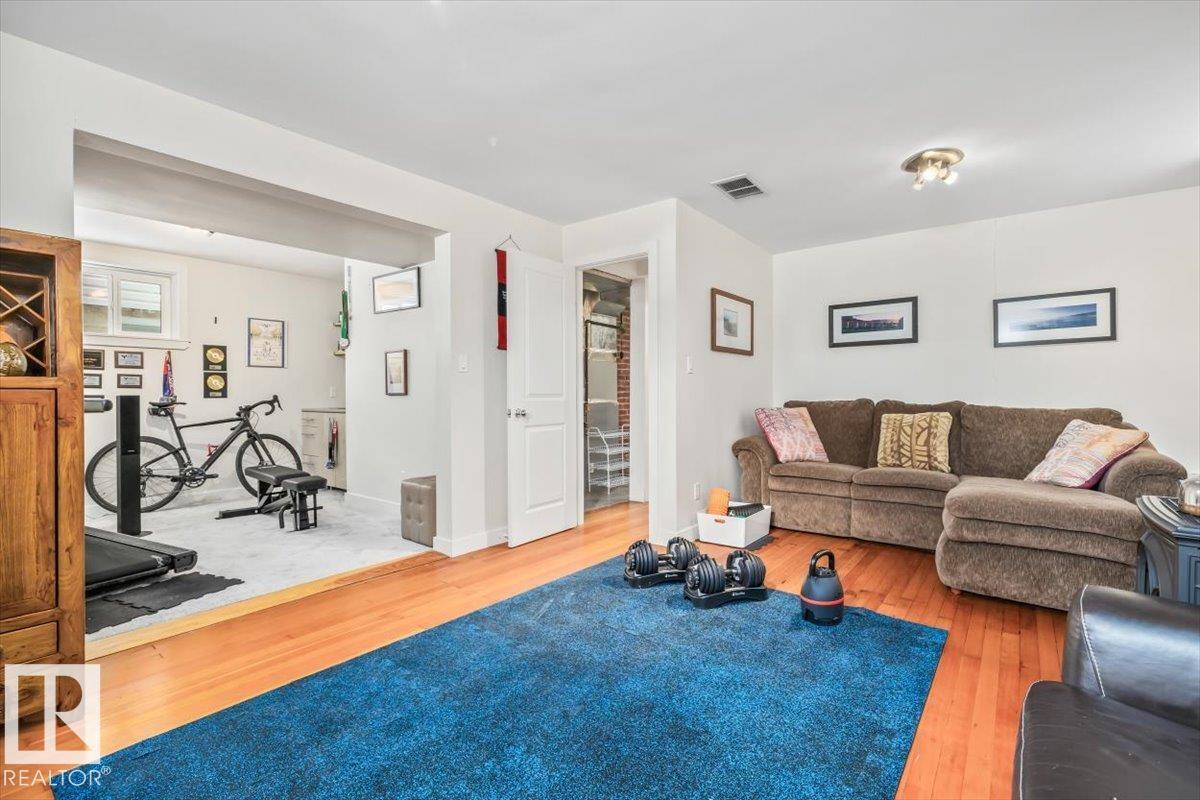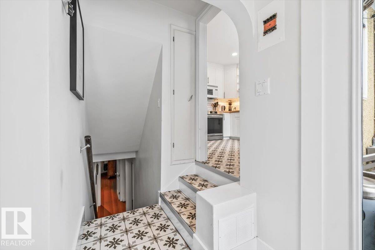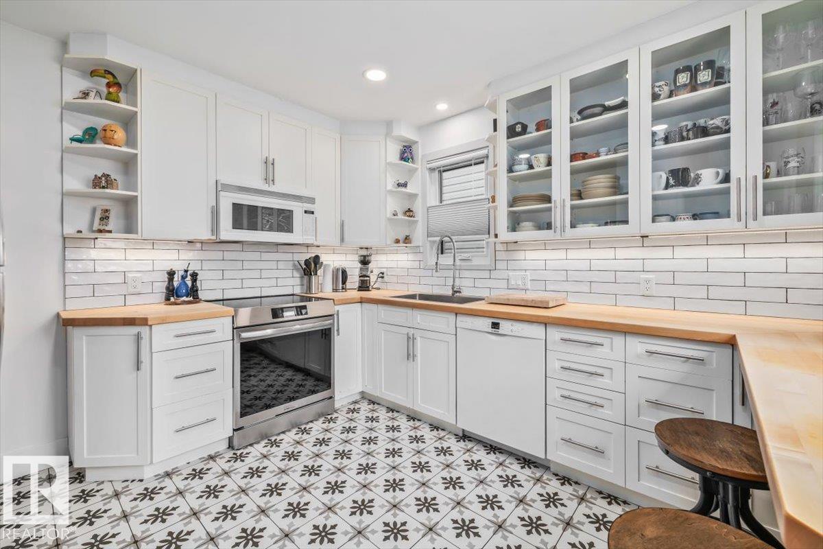 Picture morning coffee in a sun-drenched sanctuary tucked along the leafy streets of Edmonton’s sought-after McKernan. This 2-bed, 2-bath raised bungalow on a 33x132 ft lot offers an exceptional lifestyle for professionals looking to be near the UofA, LRT, Whyte Ave, and river valley. Inside, original hardwood meets modern design. Discover coved ceilings, sweeping architectural curves, and a stunning kitchen featuring warm wood countertops, an exposed brick wall, and a breakfast nook. Retreat to the bright bedroom and a stylishly renovated main bath (2021) with a mid-century vanity. Downstairs, the raised basement feels incredibly bright with large above-grade windows, warm wood floors, a cozy fireplace, and versatile living space, 2nd bedroom. Outside, enjoy a private yard and single detached garage with clever attic storage. Move in with peace of mind thanks to PRO UPGRADES: newer windows ('22), gutters ('23), roof ('17), HWT ('19), AC ('15), and sump pump. A true Edmonton gem, prime investor location. (id:63190)