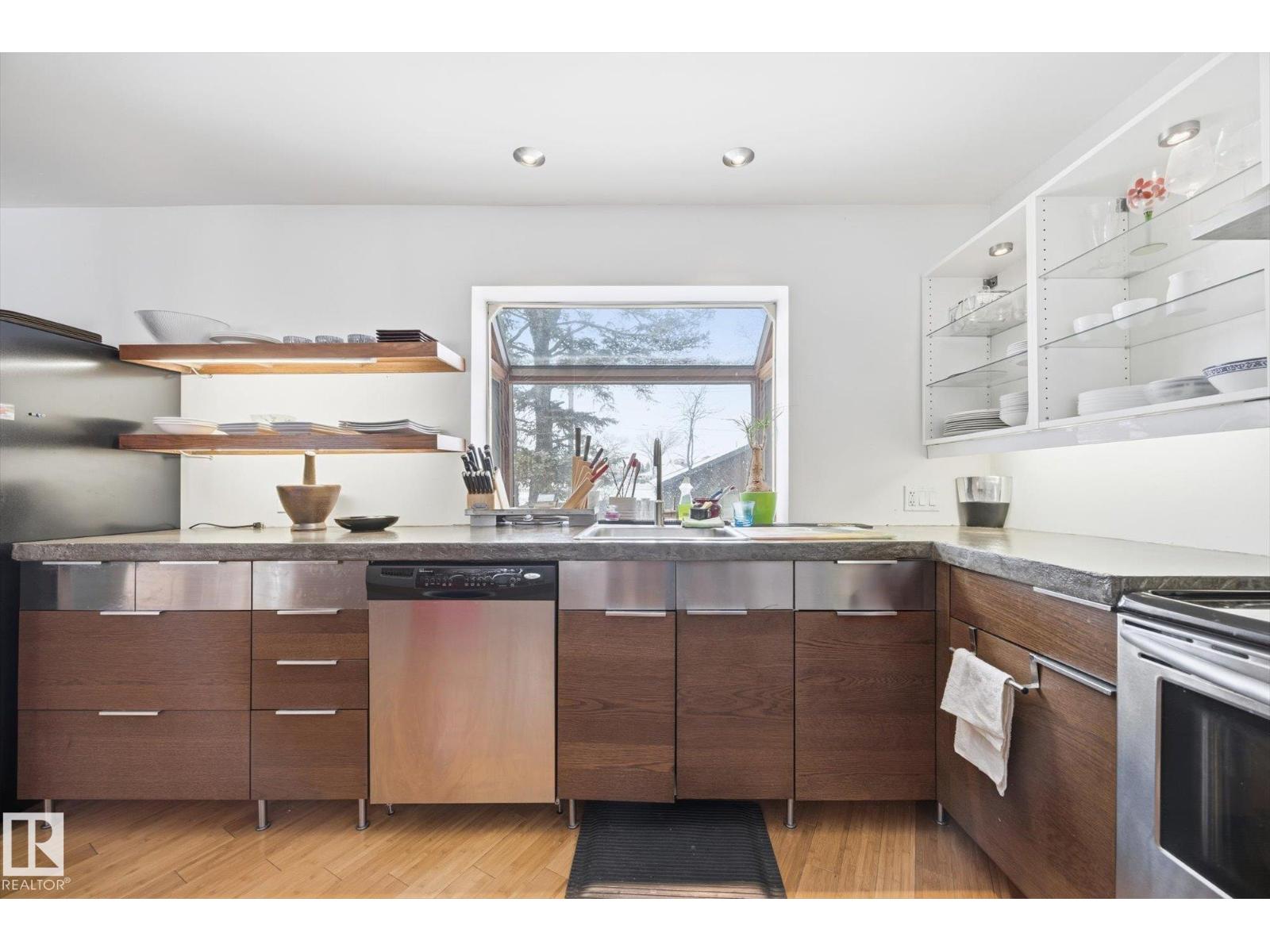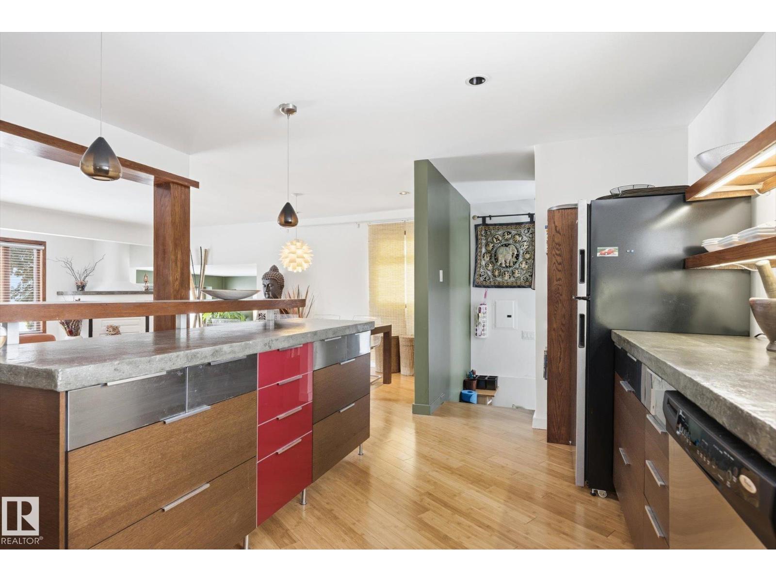 Nearly 1,500 sq. ft. in the heart of Queen Mary Park, situated on a huge corner lot with redevelopment potential and stunning downtown skyline views. This architecturally unique home features a striking tower addition with loft and sunroom, creating a one-of-a-kind living experience with a clean, Asian-inspired design. The redesigned kitchen offers concrete countertops and abundant cabinetry, seamlessly blending style and function, while bamboo flooring adds warmth and continuity throughout. Large windows invite natural light and showcase the mature, tree-lined surroundings. Recent mechanical updates include a hot water tank (2014) and a boiler system for in-floor and hot water heating with a new pump (2017), providing comfort and efficiency. Ideal for professionals working downtown who love to entertain, this home offers both character and lifestyle in a prime central location. Whether you’re looking to enjoy it as-is, invest, or explore future redevelopment, this is a rare opportunity close downtown (id:63190)