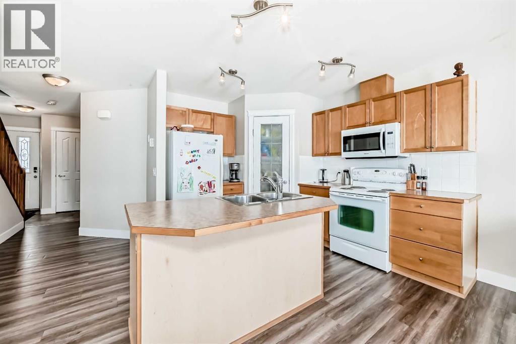 This well-kept two-storey duplex offers a bright, functional layout and the added privacy of an end unit. The main floor features new vinyl plank flooring throughout and an open-concept design that flows seamlessly from the living room into a well-designed wrap-around kitchen, complete with island, corner pantry, and plenty of workspace. A convenient half bathroom rounds out the main level. Upstairs continues with the same updated vinyl plank flooring and offers three comfortable bedrooms, including a primary suite with its own 4-piece ensuite, along with a full 4-piece main bathroom. The fully finished basement provides additional living space with a family room and utility area, ideal for relaxing or extra storage. Outside, the fully fenced and landscaped yard is ready to enjoy, with a back deck featuring a privacy wall, brand new low-maintenance decking, and storage underneath. A single attached garage adds everyday convenience. A solid option for buyers looking for a move-in ready home with practical space and a great layout. (id:63190)