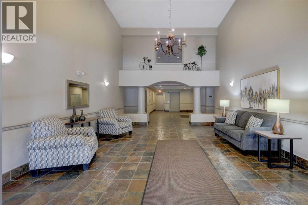 Let the sun shine in and lift your spirits!! You've found the home that is bathed in an abundance of natural light with this corner unit. An 18+ Adult complex, with this 2 bed/2 bath, main floor home featuring 2 patios. One patio enjoys street-side activity perfect for bar-b-quing , while the second patio provides a more peaceful experience overlooking the lush greenspace. You'll appreciate the convenience of a sidewalk off the driveway that leads directly to the patio doors of this unit as well. So many more advantages this unit offers to talk about...The open floor plan invites entertaining and conversation, with an ease for furniture placement due to no awkward baseboards to deal with. Two kitchen windows contribute to the light-filled experience, while one presents a lovely view of the mountains. The thoughtfully designed kitchen offers an excellent capacity for more than one cook at a time. With more than ample counter top, cupboard and pantry space for storage. The primary bedroom is sizeable enough for a king size suite and includes a well sized walk in closet and 4 pc. ensuite. The 3 pc. bath off the main area adds convenience for guests, as does the second bedroom - also with a view of the mountains! In-suite laundry, a titled underground parking stall and an assigned 9'X5' storage locker in front of the parking stall round off the added value you'll find here. Now for the very well managed complex...a games/community room with library, pool table and comfy meet-up area are located in bldg. 2. While bldg. 1 hosts a fitness room with sauna/change room & shower. A car wash bay is steps away from the parking stall. The landscaped courtyard showcases a charming gazebo and lovely pond to enjoy. Easy access with a short drive to a multitude of shopping options, restaurants, professional services, the beautiful lake you'll have priviledges to, the LRT system, Crowchild & Stoney Trails...Need I say more?! You truly need to start your car and view this unit... (id:63190)