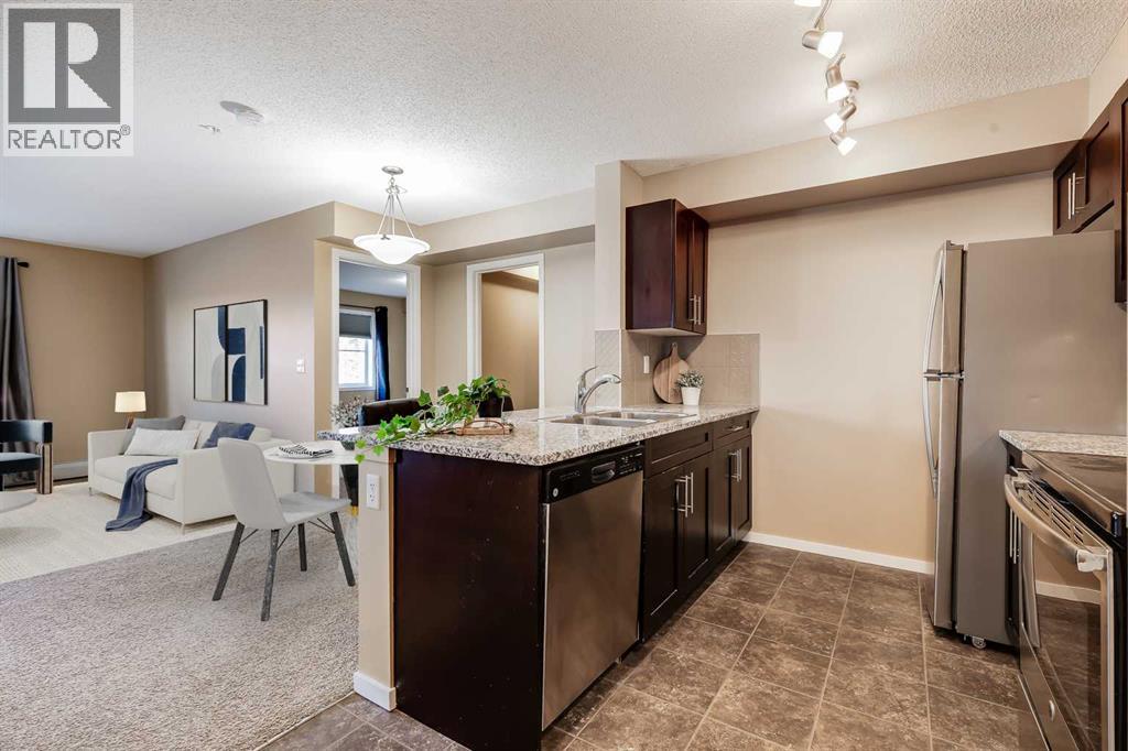 This well-appointed main floor condo offers over 950 square feet of thoughtfully designed living space, featuring three bedrooms and two full bathrooms. A spacious entryway welcomes you in, leading to an open-concept kitchen, dining, and living area that balances function and comfort. The kitchen stands out with granite countertops, stainless steel appliances, real wood cabinetry with soft-close doors, and a convenient breakfast bar for casual meals or entertaining. The living room provides a comfortable place to relax, with direct access to a large patio overlooking a quiet green space, an ideal setting to enjoy some fresh air or unwind at the end of the day. Positioned with neighbors on only one side and located close to the elevator, the unit offers a more private atmosphere along with easy access to the heated underground parkade. The primary bedroom is generously sized and features a walk-through closet leading to a private three-piece ensuite complete with an oversized shower. Two additional rooms offer flexibility for family, guests, or a dedicated home office. A full four-piece bathroom serves the secondary spaces, while the in-suite laundry and storage room add everyday practicality. This home includes a titled underground parking stall in a heated parkade, along with secure bicycle storage. Pet owners will appreciate that cats and dogs up to 15 kg are permitted with board approval. Situated in the established and growing community of Legacy, this location offers a strong balance of natural surroundings and urban convenience. Residents enjoy access to extensive walking paths, parks, playgrounds, and nearby environmental reserves, along with a variety of shops, restaurants, fitness options, and essential services just a short distance away. The area is also home to All Saints High School and a brand-new K–9 school opening in 2026, making it a practical choice for a range of lifestyles. Commuting is straightforward with quick connections to major routes inclu ding Macleod Trail and Stoney Trail, while public transit options are close by. Nearby destinations such as Fish Creek Park, Spruce Meadows, and the Bow River add to the appeal for those who enjoy outdoor activities, with the mountains within reasonable reach for weekend trips. Take advantage of your opportunity to see this incredible property in person, book your showing today! Be sure to check out the floor plans and 3D tour for a closer look before your visit. (id:63190)