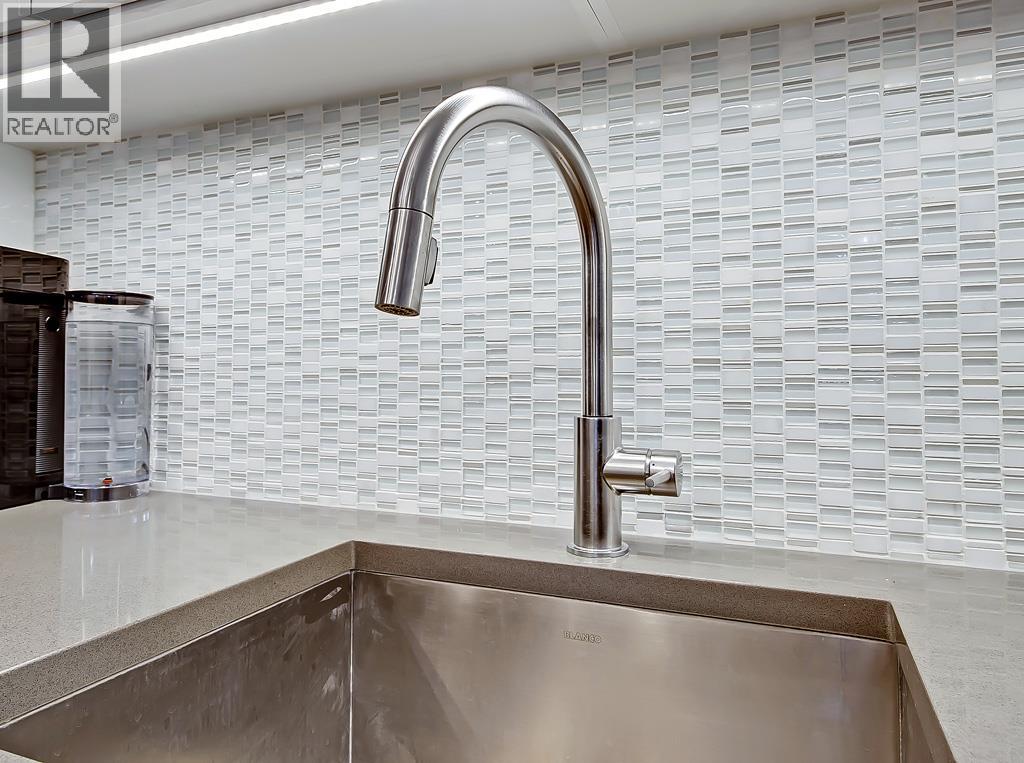 This EXECUTIVE 2-BEDROOM, 1-bath condo offers a highly functional OPEN-CONCEPT layout and shows absolutely spectacular. Loaded with upgrades, the home features STYLISH laminate flooring throughout and a gourmet kitchen that truly stands out—complete with quartz countertops, mosaic backsplash with under mount lighting, gas stove, matching stainless steel appliances, soft-close glossy white cabinetry, a movable island, and a modern pantry.The bright and inviting living room opens onto a very PRIVATE BALCONY—perfect for barbequing and entertaining. The spacious primary bedroom includes a floor-to-ceiling wardrobe, while the second bedroom is ideal for guests or a home office and offers ample storage. A full 4-piece bathroom completes the interior.Additional highlights include IN-SUITE WASHER AND DRYER, TITLED HEATED UNDERGROUND PARKING, a storage locker, and access to a beautifully designed common rooftop patio.This PET-FRIENDLY building is ideal for professionals, couples, or investors. Low condo fees include heat, water, and more. Conveniently located within walking distance to shopping and transit. The condo offers a highly functional open-concept layout and shows absolutely spectacular. Loaded with upgrades, the home features stylish laminate flooring throughout and a gourmet kitchen that truly stands out—complete with quartz countertops, mosaic backsplash with undermount lighting, gas stove, matching stainless steel appliances, soft-close glossy white cabinetry, a movable island, and a modern pantry.The bright and inviting living room opens onto a very private balcony—perfect for barbequing and entertaining. The spacious primary bedroom includes a floor-to-ceiling wardrobe, while the second bedroom is ideal for guests or a home office and offers ample storage. A full 4-piece bathroom completes the interior.Additional highlights include in-suite washer and dryer, titled heated underground parking, a storage locker, and access to a beautifully designed common rooftop patio.This pet-friendly building is ideal for professionals, couples, or investors. Low condo fees include heat, water, and more. Conveniently located within walking distance to shopping and transit. (id:63190)