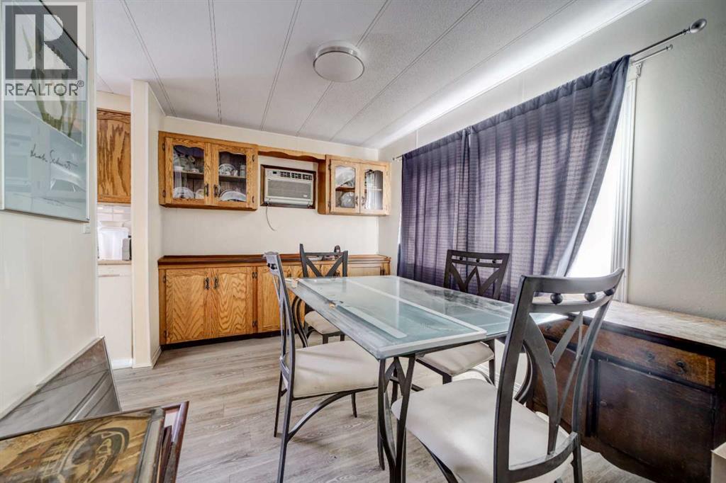 Well-built double wide mobile home offering comfortable, low-maintenance living at an affordable price. Updates include newer shingles (2014), a newer refrigerator (2014), and a portable A/C unit (2013). The home features two large bedrooms, including a spacious primary bedroom with a huge walk-in closet.You’ll appreciate the functional layout with both a dining nook and a separate dining room, along with a large living room and newer vinyl flooring throughout. Outside, enjoy a private yard with a porch and vinyl storage shed for extra storage.Conveniently located close to shopping, Exhibition Park, Henderson Lake, and the golf course a great option for buyers looking for space, comfort, and value in a mobile home. (id:63190)