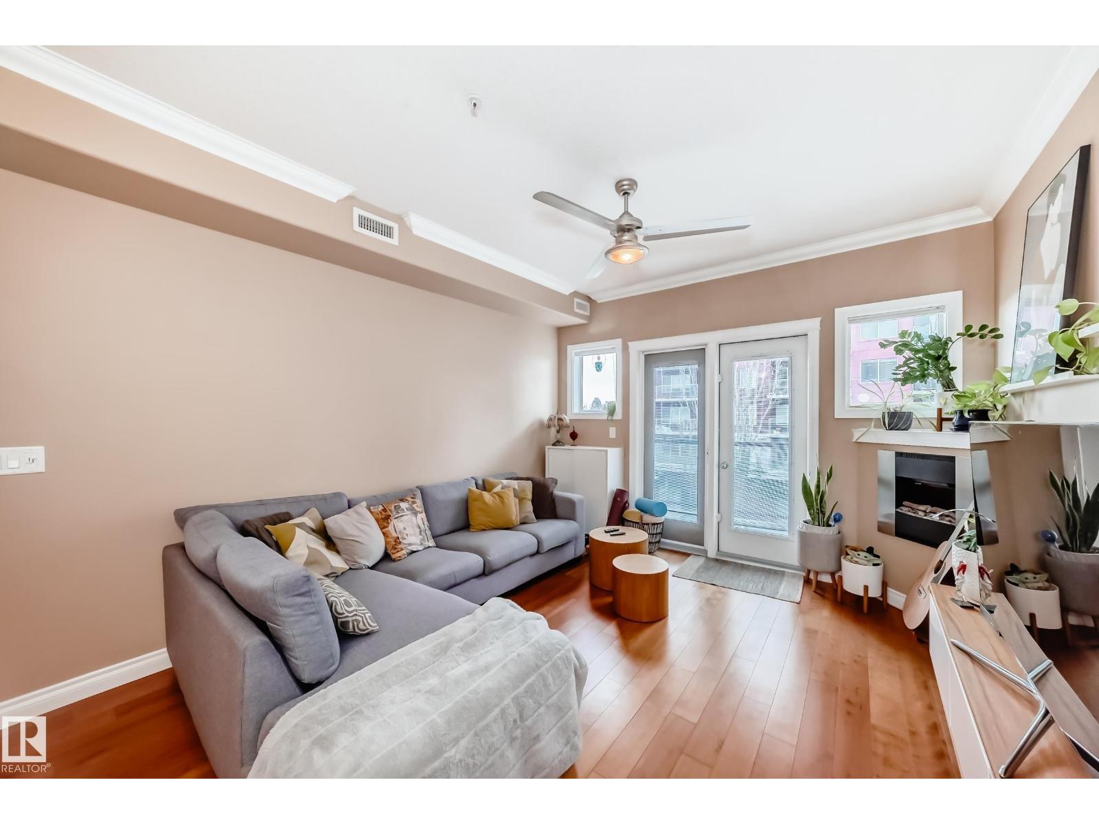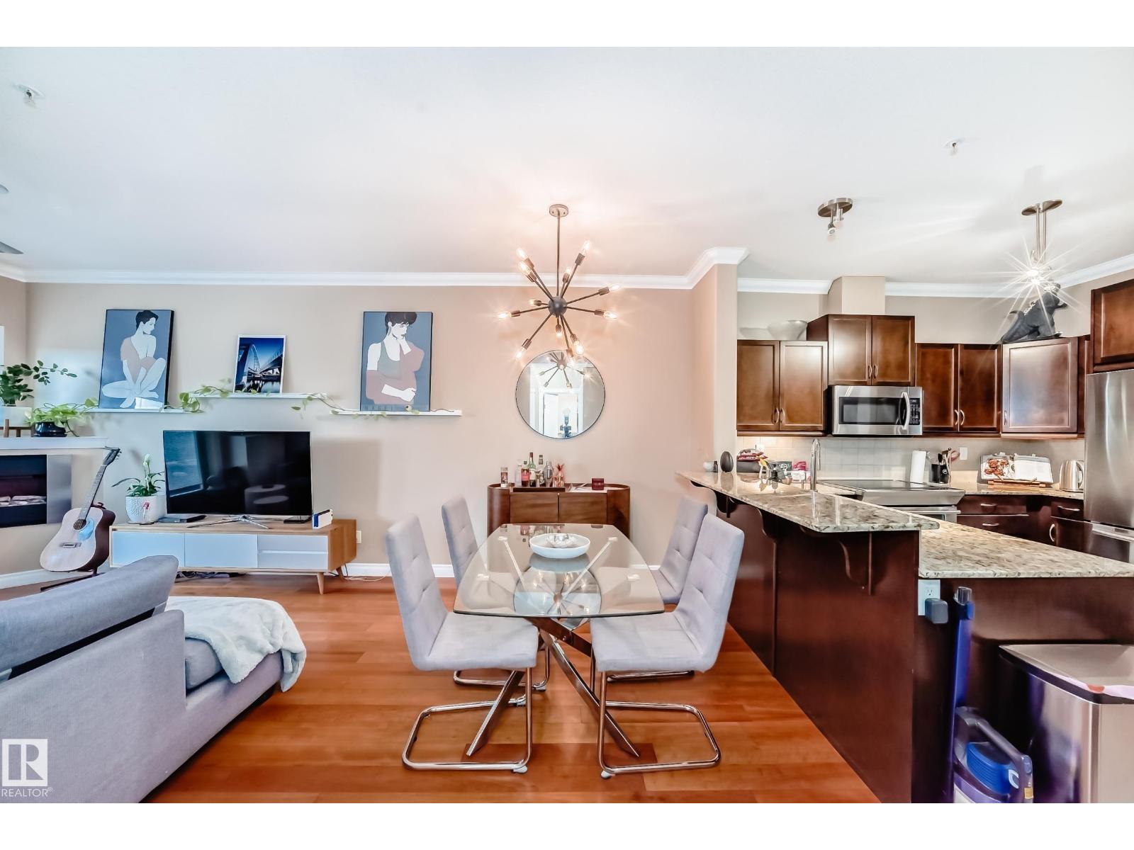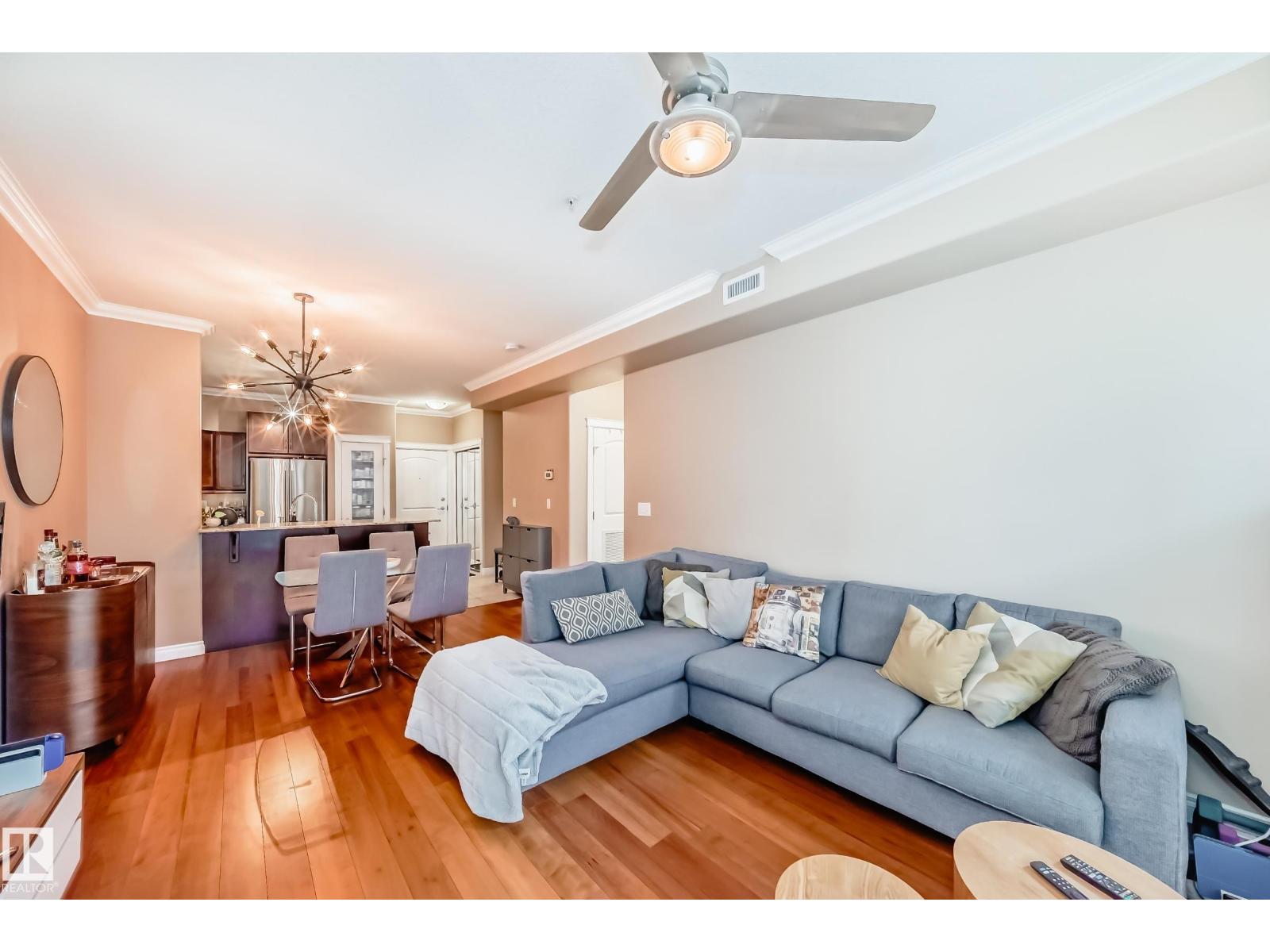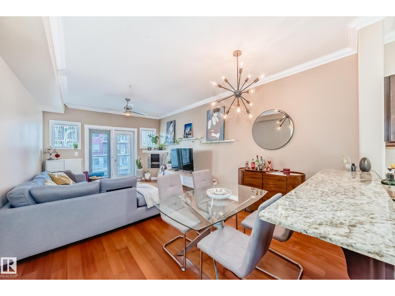 RITCHIE / SCONA GARDENS / 1 BED + DEN / A/C / U/G PARKING Welcome to Scona Gardens in the heart of Ritchie, just steps to Whyte Ave, the University of Alberta, cafés, and local shops. This immaculate 3rd floor unit offers 9’ ceilings, an open layout, and an east-facing balcony with great morning light. Featuring 1 bedroom + den, it’s perfect for professionals, students, or investors. The kitchen includes granite countertops, mocha cabinetry, and upgraded stainless steel appliances, including an induction stove. Enjoy upgraded laminate flooring, in-suite laundry, and central A/C. Includes underground heated parking and storage. The building amenities include a fitness room, a guest suite, and a car wash bay. Ideal for those seeking location, lifestyle, and low-maintenance living. (photos digitally staged or modified) (id:63190)