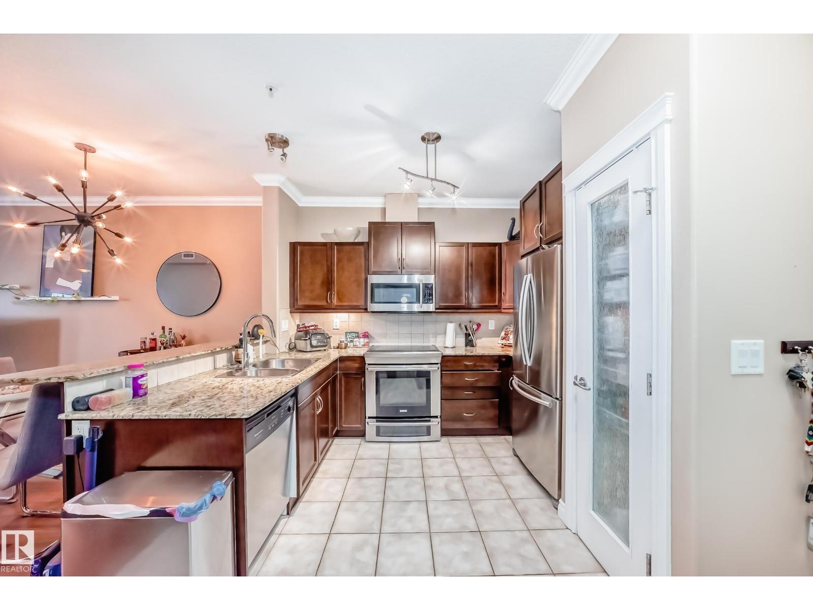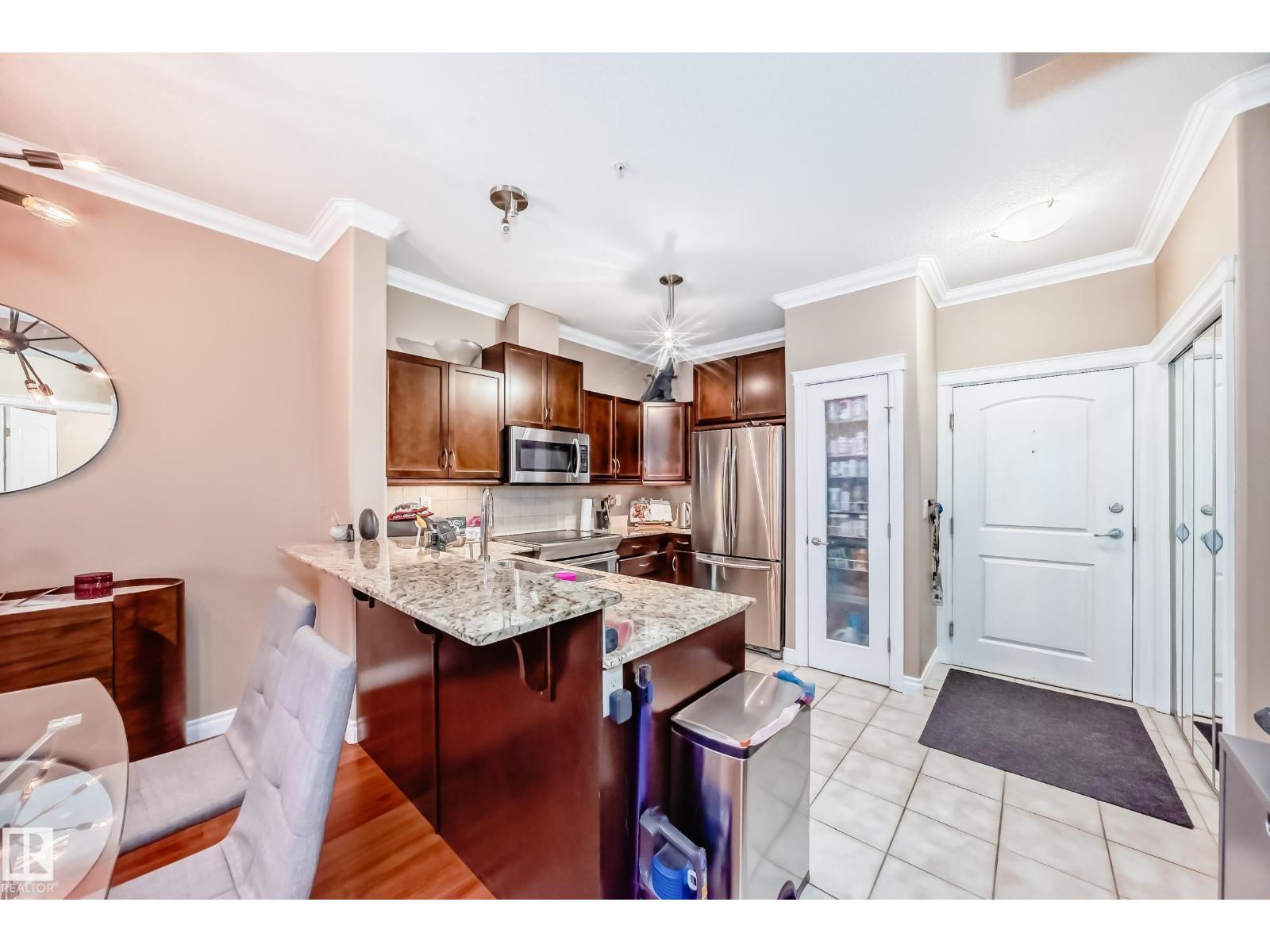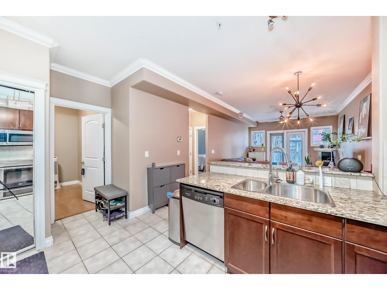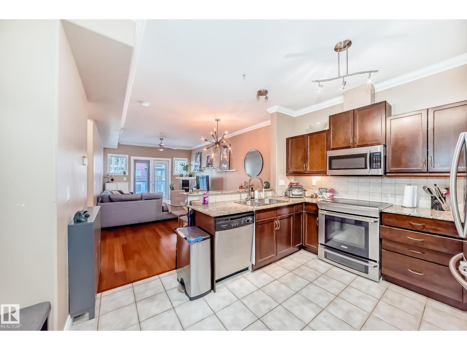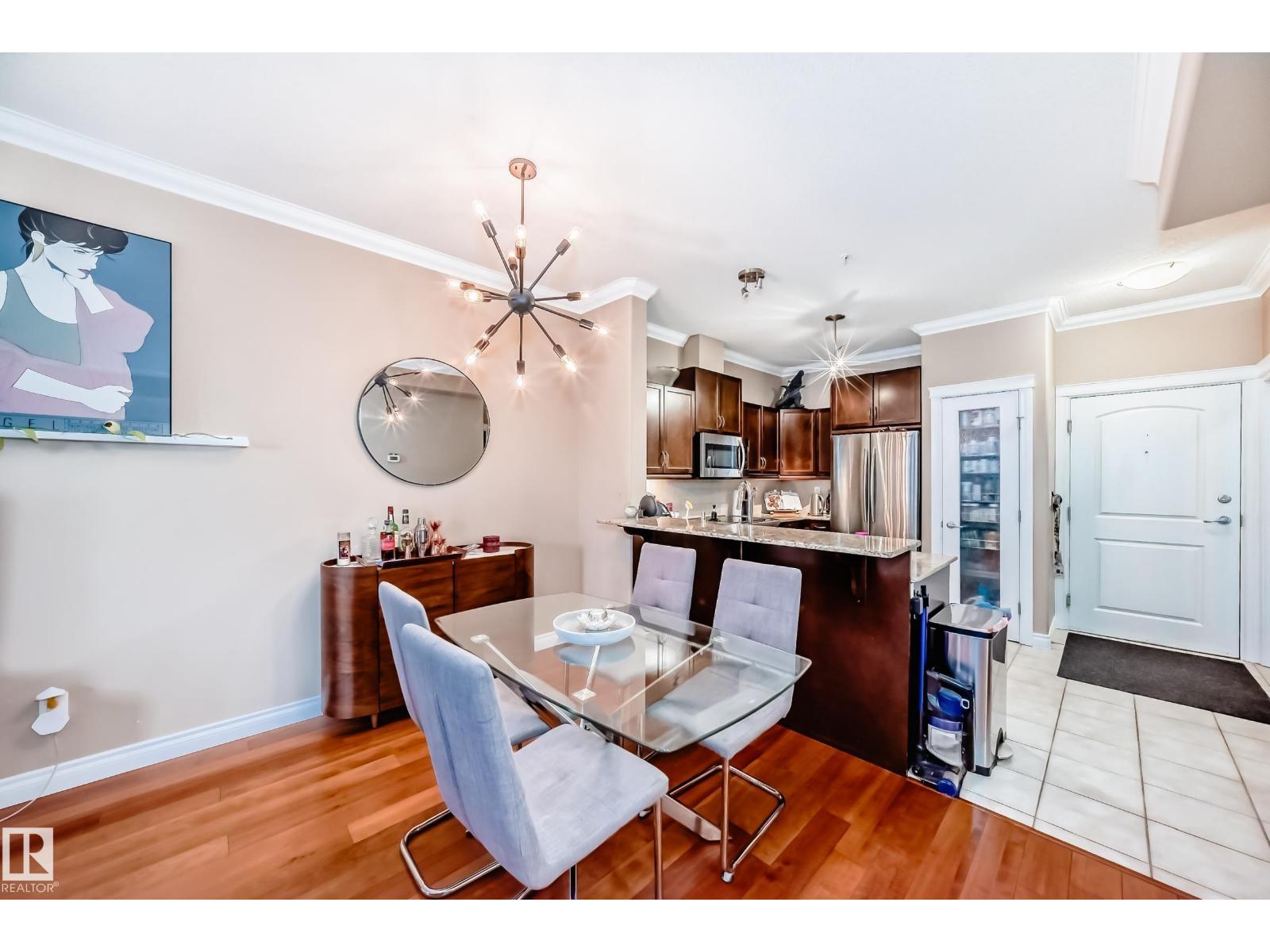 RITCHIE / SCONA GARDENS / 1 BED + DEN / A/C / U/G PARKING Welcome to Scona Gardens in the heart of Ritchie, just steps to Whyte Ave, the University of Alberta, cafés, and local shops. This immaculate 3rd floor unit offers 9’ ceilings, an open layout, and an east-facing balcony with great morning light. Featuring 1 bedroom + den, it’s perfect for professionals, students, or investors. The kitchen includes granite countertops, mocha cabinetry, and upgraded stainless steel appliances, including an induction stove. Enjoy upgraded laminate flooring, in-suite laundry, and central A/C. Includes underground heated parking and storage. The building amenities include a fitness room, a guest suite, and a car wash bay. Ideal for those seeking location, lifestyle, and low-maintenance living. (photos digitally staged or modified) (id:63190)
