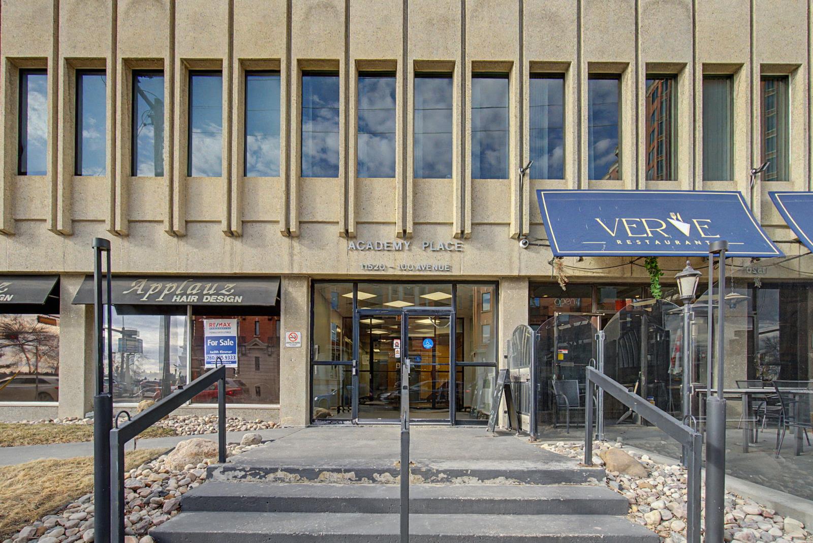 Exceptional opportunity to own a premium commercial office space in the heart of Downtown Edmonton. Currently operating as a law office, this versatile property is ideally suited for a wide range of professional uses including legal, accounting, consulting, medical, or creative firms.Recently upgraded flooring to luxury Vinyl plank throughout. Move in ready for the next business to takeover this immaculate and spacious unit. Prominently positioned at the corner of 100 Avenue and 115 Street, directly across from the historic LeMarchand Mansion and Grant Notley Park, this mixed-use building offers outstanding visibility, accessibility, and prestige.Purchase to pay less than rent and build equity. The well-designed layout includes:Seven generously sized private officesA spacious boardroom ideal for meetings and presentationsSpace for a fully equipped kitchenAn inviting reception areaA central open workspace suitable for additional desks or modular workstationsExpansive windows in every office flood the space with natural light, creating a bright and productive work environment. The building also features its own private parkade, providing convenient on-site parking for both staff and clients.With residential units above, the property benefits from the energy and convenience of a vibrant mixed-use setting. This is a rare opportunity to secure a beautifully appointed office space in one of Edmonton’s most desirable downtown locations. (id:63190)
