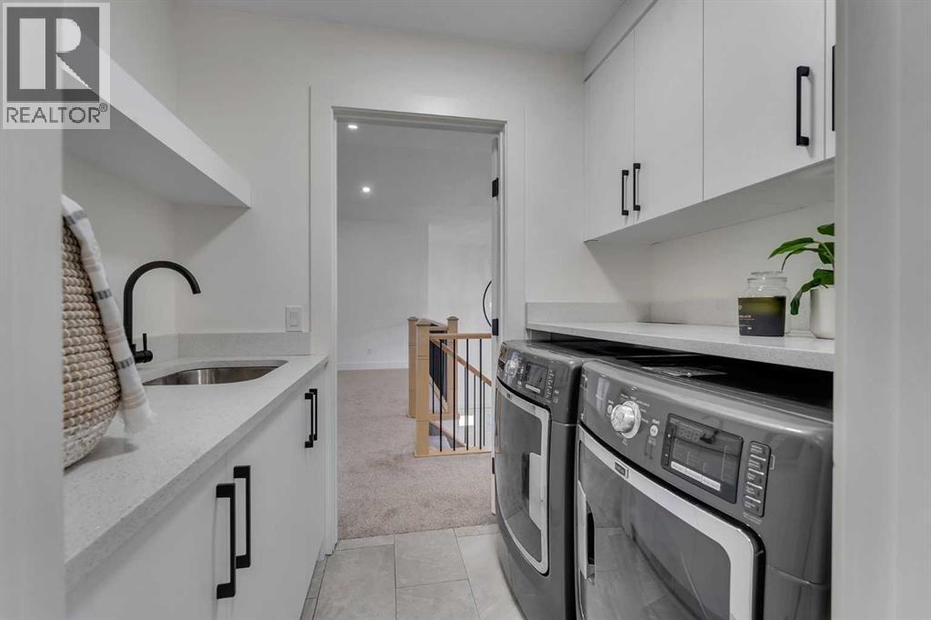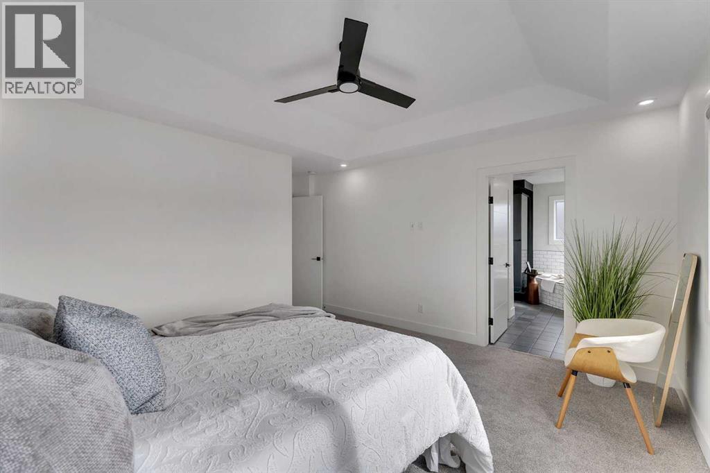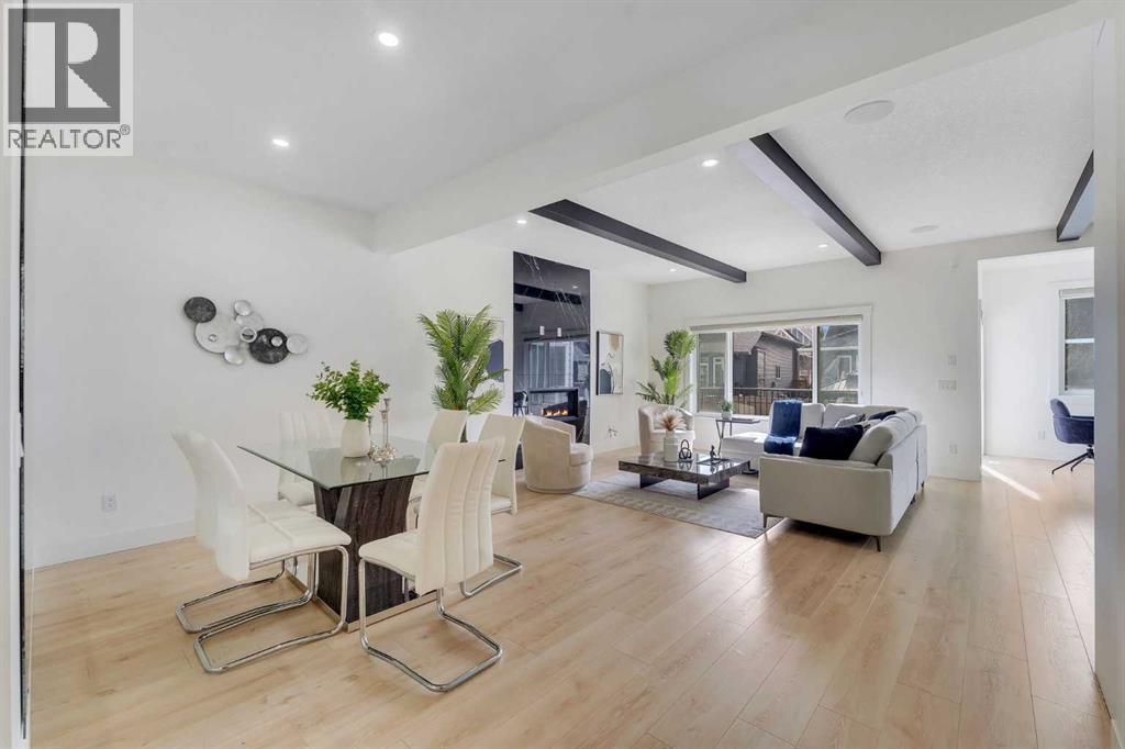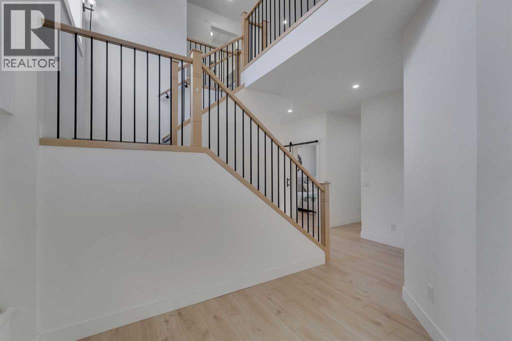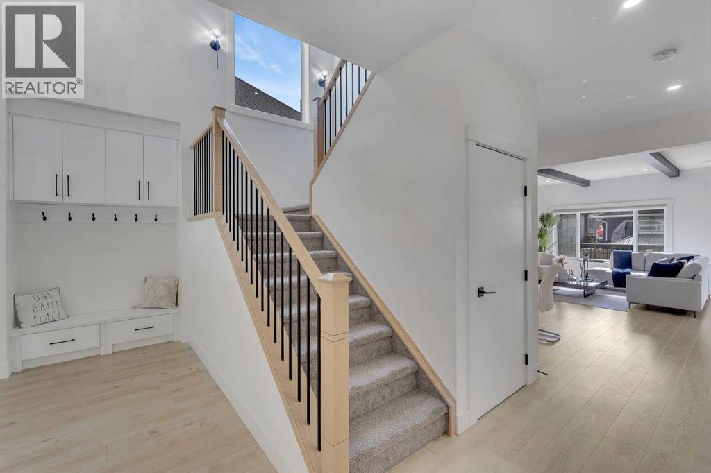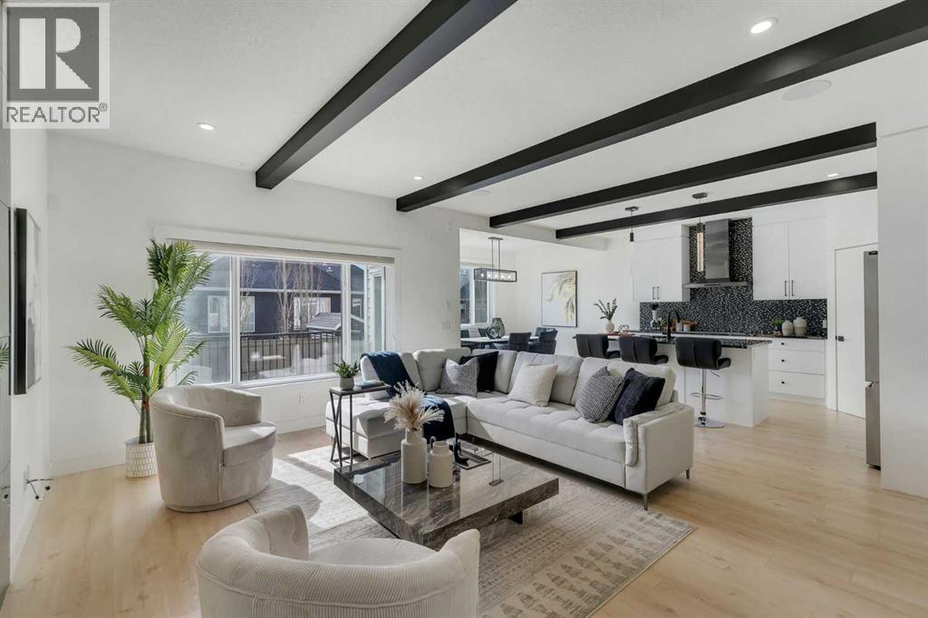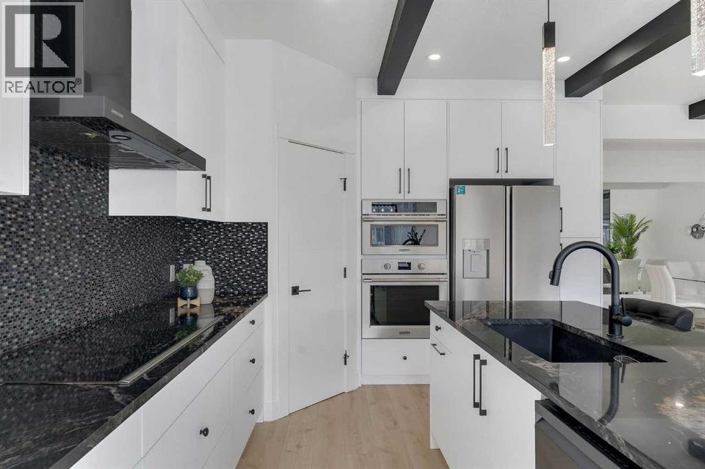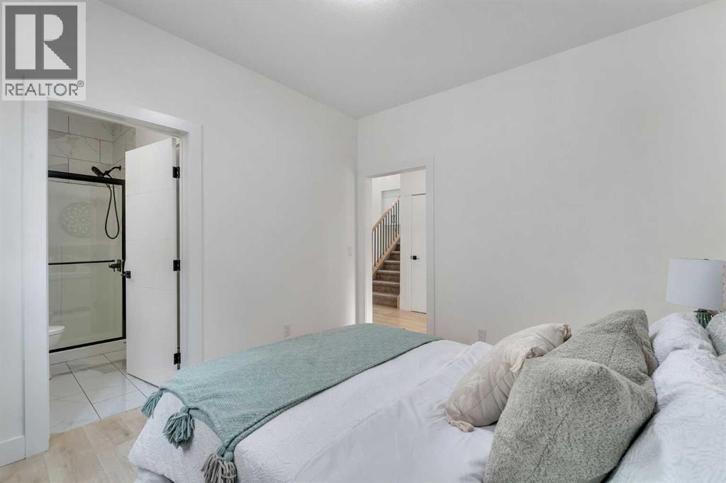 Welcome to this stunning luxury home located in the highly sought-after community of Coopers Crossing. Offering approximately 2,637 sq. ft. of thoughtfully designed living space, this elegant two-storey residence perfectly combines modern upgrades with timeless style.This home features 5 spacious bedrooms and 4 full bathrooms, ideal for growing families or multi-generational living. The main floor boasts a bright and open layout, complete with two dining areas, a full bedroom, and a 3-piece bathroom with a standing shower. The grand double-door entrance creates a welcoming first impression.The chef-inspired kitchen is beautifully upgraded with built-in appliances, a chimney-style hood fan, ceiling-height cabinetry, and sleek black hardware throughout. The living room showcases a striking feature fireplace with bold black tile detailing, adding warmth and sophistication. Large windows across the main floor allow for an abundance of natural light, while the elegant spindle railing enhances the overall design.Upstairs, you will find 4 generously sized bedrooms and 3 full bathrooms, along with a spacious bonus/family room featuring a vaulted ceiling—perfect for relaxation or entertainment. The primary bedroom offers a tray ceiling, a luxurious 5-piece ensuite with a jetted tub, separate glass shower, and a large walk-in closet.The upper-level laundry room is equipped with a sink and additional storage for convenience. All secondary bedrooms are well-proportioned, with access to two additional full bathrooms.Step outside to enjoy a large rear deck and fully fenced backyard—ideal for outdoor living. A side entrance to the basement provides excellent potential for future development.The home is further enhanced with durable and premium James Hardie (Hardie Board) exterior siding and features a Double wide car garage, offering extended parking space or additional storage flexibility.Conveniently located close to schools, parks, playgrounds, and shopping plaza s, this home delivers exceptional value in one of Airdrie’s most prestigious neighbourhoods.Don’t miss this incredible opportunity to own a premium home in Coopers Crossing. (id:63190)