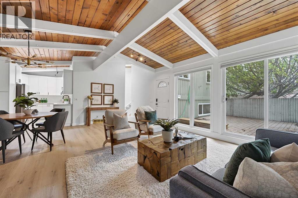 3 BEDS | 2 FULL BATHS | TOTAL 1,878 SQFT | 4-LEVEL SPLIT | VARSITY | RENOVATED | FENCED PRIVATE PATIO | QUIETLY FACING GREENSPACE | EXPOSED BEAMS | WOOD BURNING FIREPLACE | LARGE SOUTH FACING WINDOWS | QUICK POSSESSION AVAILABLE | POTENTIAL TO ADD BED AND BATH | PRIMARY BEDROOM RETREAT ON SEPARATE LEVEL *OPEN HOUSES SAT & SUN FROM 12-2* This is not your typical cookie-cutter townhouse. Welcome to one of the most unique townhomes in Varsity, offering 1,878 sqft of total space across a standout 4-level split with character you simply don’t find anymore. Think exposed beams, skylights, a cozy wood-burning fireplace, and a layout that actually feels like a home, not a box.The main level is bright and inviting with large south-facing windows, an updated kitchen, and open dining and living space perfect for everyday living or entertaining. Two more bedrooms upstairs, while the entire third level is a private primary retreat with a renovated full bathroom, your own escape at the end of the day.Use the unfinished basement as extra storage or develop with plenty of space to add another full bed and bathroom.Step outside to your large, fully fenced private patio (new fence 2025) backing directly onto greenspace, ideal for summer nights, pets, and letting the kids roam.Located in the highly sought-after Oxford Mews, a pet-friendly complex with lush landscaping, fire pit, community gardens, and walking paths, this is a true hidden gem.Unbeatable Varsity location, minutes to Market Mall, University of Calgary, Children’s Hospital, LRT, Bow River pathways, top schools, and quick access to Crowchild Trail.Homes like this rarely come up. Don’t miss it. (id:63190)