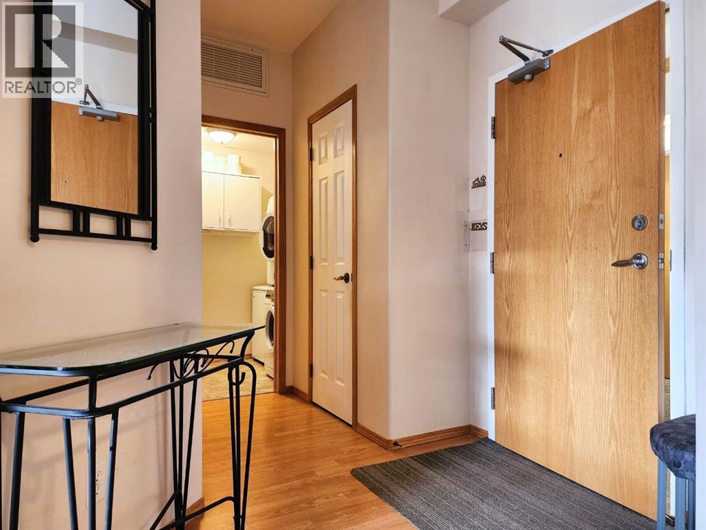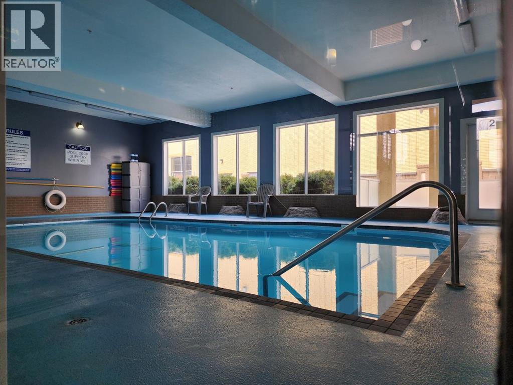 Welcome to the Sierras of Courtyard Terrace. This nicely kept unit is very close to the North entrance and has a sunny South exposure looking onto the courtyard. This one bedroom home has a bright and cheerful living space with a den, granite countertops and stainless appliances with a corner pantry in the kitchen, as well as in suite laundry. Out on the deck you can choose to soak in that sunshine, or lower the remote operated shade if you prefer. The amenities here are outstanding and include a swimming pool, library, pool tables, guest rooms, workshop, car wash bay, and a large common dining area for special functions. The titled parking spot and storage is located very close to the stairs and the car wash bay. This could be just the spot for you if you are wanting to be located close to shopping and the amenities of South Lethbridge while enjoying a lock and go lifestyle. (id:63190)