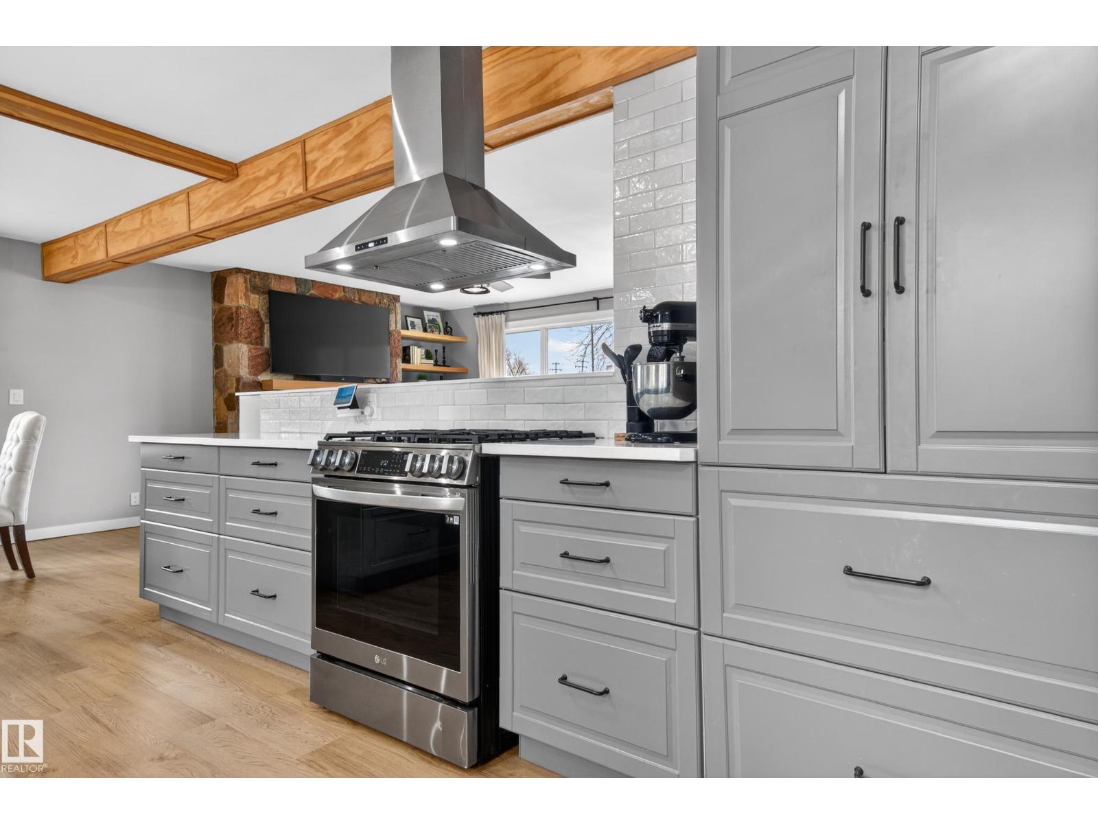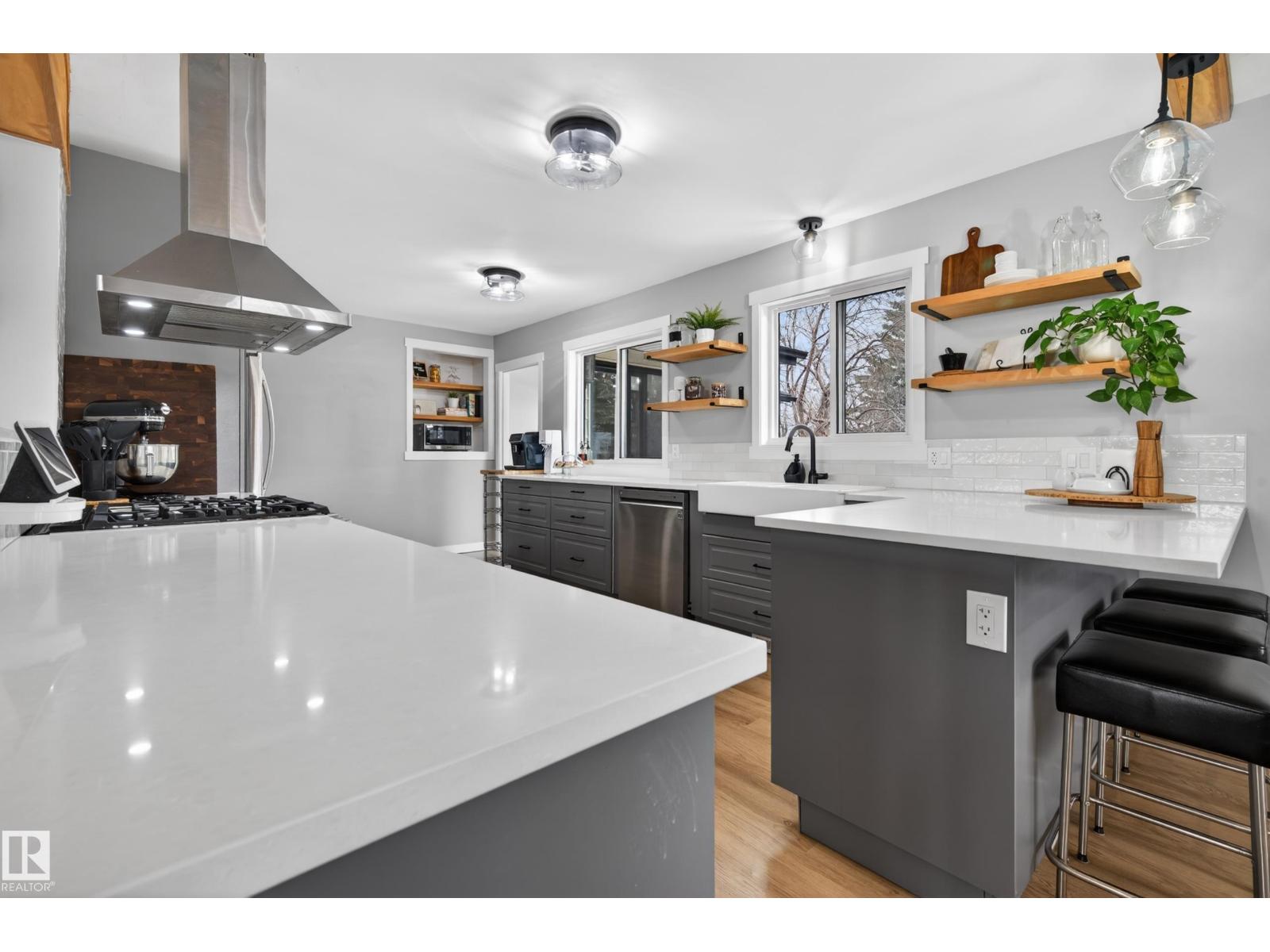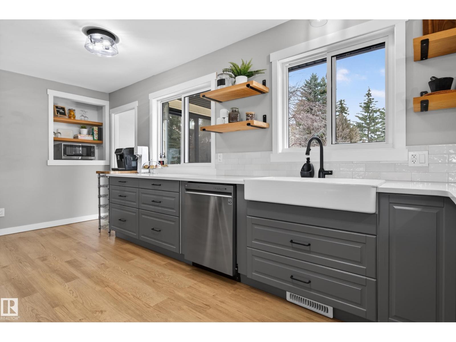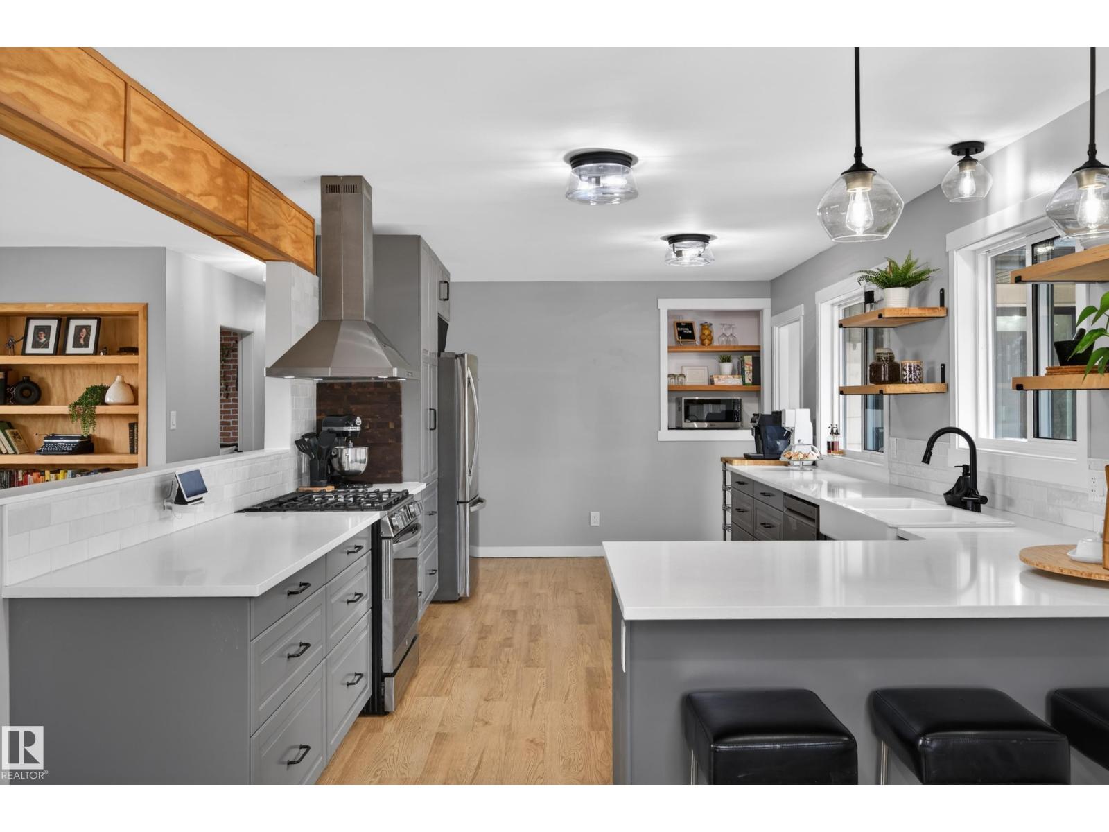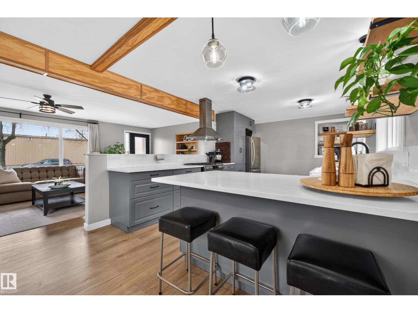 This UNIQUE 6 Beds + 3 Baths A/C HOME has 3650.25 Sq Ft of Development w/HEATED TRIPLE GARAGE on a MASSIVE .52 ACRE CORNER LOT (on 3 titles) in BRUDERHEIM! Entering you see the BUILT-IN bookcase, LVP flooring, WOODEN Ceiling Beams + NEUTRAL colour tones throughout. The Wood Fireplace is SHOWCASED by the BEAUTIFUL STONEWORK w/Wooden MANTLE + Bookcases in the Living room. There is the Dining room + SLEEK Kitchen has Modern Cabinetry, SS Appliances incl/GAS Stove, QUARTZ Countertops w/Breakfast Bar, a Tile Backsplash + the door leading to the North Backyard incl/Deck. A 4 pc Bath, 4 Beds, the Primary Bed, a 5 pc EN-SUITE Bath + a WALK-IN Closet. The Mudroom & Laundry room lead to Garage. The Reno'd Basement has the 6th Bed, Flex room, a 3 pc Bath, a HUGE Rec room w/WOOD Fireplace, + Utility room. The Backyard has RV Parking, so much room to use! More Upgrades: Roof/H2O/Furnace in 2022, Windows/Doors/Basement in 2025. This BEAUTIFUL HOME is VALUE for the $$$, ENJOY! (id:63190)