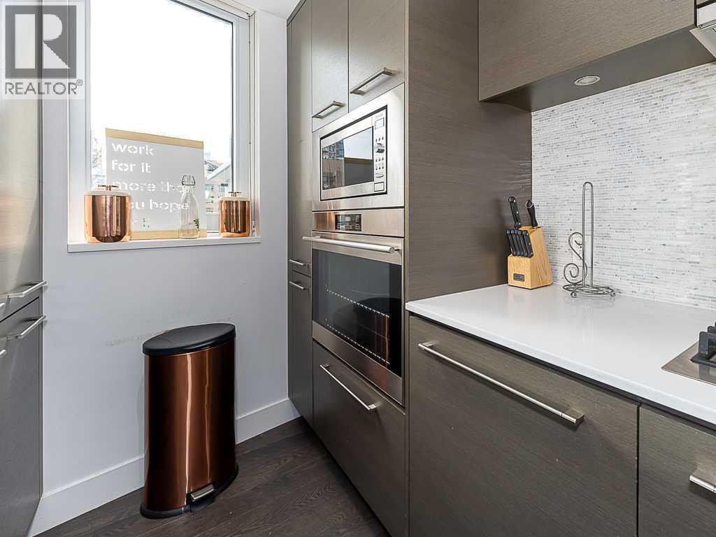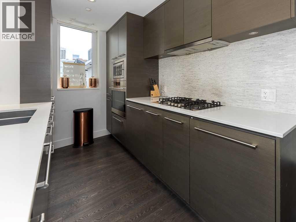 Welcome to this bright and spacious 2-bedroom, 2-bathroom condo in the sought-after Downtown West End. Featuring a massive private patio, this home offers exceptional indoor-outdoor living—perfect for entertaining or relaxing. The upscale interior is complete with rich hardwood flooring, quality carpet, air conditioning, and in-suite laundry. The gourmet kitchen is appointed with premium built-in appliances, including a built-in refrigerator, high-end 5-burner gas stove, built-in microwave, quartz countertops, and sleek modern cabinetry. Enjoy your private outdoor space with panoramic river and city views. The open-concept layout and split-bedroom design provide both functionality and privacy. Steps to the C-Train, Bow River pathways, and Kensington’s shops and restaurants. Full-service building with 24-hour concierge, fitness centre, dog wash, and bicycle workshop. Includes 2 titled side-by-side underground parking spaces, titled storage locker, and heated underground visitor parking. A rare opportunity to own a premium unit in one of Calgary’s upscale downtown buildings. (id:63190)