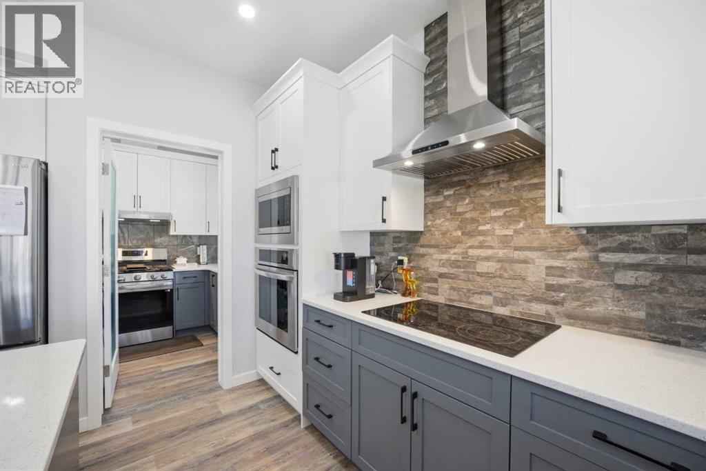 Welcome to this stunning, fully developed 2-storey home located in the sought-after community of Cobblestone SW in Airdrie. Situated on a massive pie-shaped corner lot of approximately 7,200 sq ft, this property offers exceptional space, privacy, and functionality—perfect for growing families or savvy investors. Step inside through the impressive double door entry into a grand, open foyer that sets the tone for the rest of the home. The main floor features a spacious bedroom and a full bathroom, ideal for guests or multi-generational living. The expansive living area is highlighted by a cozy gas fireplace and large windows that flood the space with natural light. The upgraded chef’s kitchen is a true showstopper, complete with built-in stainless steel appliances, a stylish range hood, and a large island countertop—perfect for entertaining. A separate spice kitchen with a gas stove adds extra convenience, while the bright dining area overlooks the backyard. Upstairs, you’ll find a well-designed layout featuring a luxurious primary bedroom with a 5-piece ensuite and walk-in closet. A second primary bedroom includes its own 3-piece ensuite, while two additional bedrooms share a full bathroom. The central bonus room provides extra living space, and a dedicated laundry room adds everyday convenience. The fully developed basement features a separate entrance and includes a legal 3-bedroom suite with 2 full bathrooms, its own kitchen, and laundry—an excellent investment opportunity. Additional upgrades include a water softener , water purification system and 8 feet garage door with tons shelves for extra storage . Enjoy outdoor living in the huge backyard with no rear neighbors, offering beautiful sunset views. The two-tier deck is perfect for entertaining, and there is ample space for RV parking. This exceptional property combines luxury, space, and income potential—all in a prime location close to amenities like schools, shopping plaza, playground, Parks, future recreat ion arena, church and many more. Don’t miss out on this rare opportunity—book your private showing today! (id:63190)