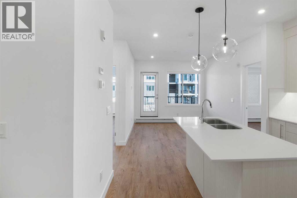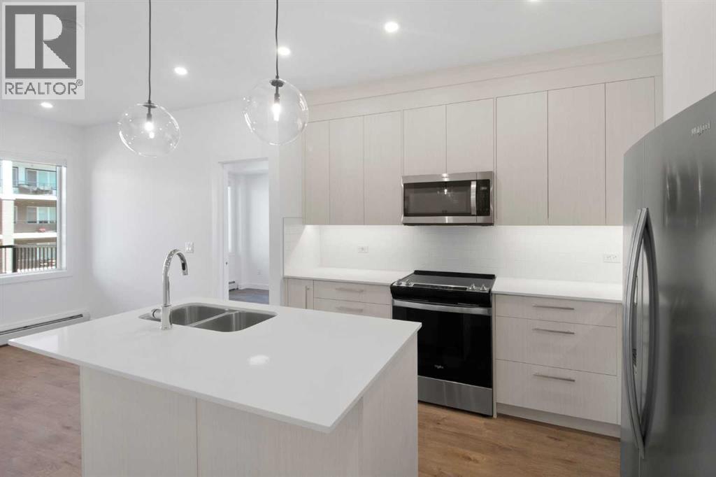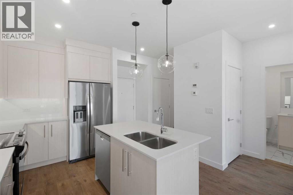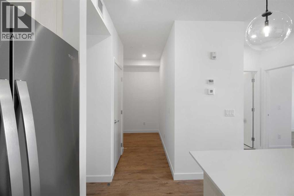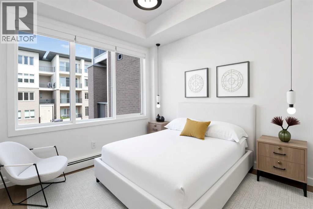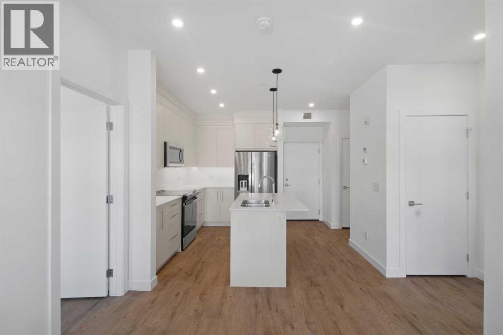 Welcome to this BRAND NEW, never-lived-in 2-bedroom, 2-bathroom condo with a den and 2 TITLED PARKING STALLS, ideally located in the vibrant lake community of Chelsea, Chestermere. Built by TRUMAN, this modern home offers a seamless blend of contemporary design, smart functionality, and everyday comfort—perfect for first-time buyers, downsizers, or investors. Enjoy the lake lifestyle just minutes from Chestermere Lake, featuring beach access, a boat launch, scenic walking paths, parks, and playgrounds. Everyday conveniences are close by, with Chestermere Station and Chestermere Crossing nearby, plus the added benefit of being just a 5-minute drive to EAST HILL Shopping Centre, home to Costco, Walmart, a cinema, and a wide variety of shopping and dining options.Inside, the open-concept layout is bright and inviting, featuring a versatile den ideal for a home office or flex space. Premium finishes include luxury vinyl plank flooring, soaring ceilings, and a chef-inspired kitchen with full-height cabinetry, soft-close drawers, quartz countertops, stainless steel appliances, a pantry, and a large eat-up island—perfect for casual dining or entertaining.The spacious primary bedroom offers a walk-through closet and a private 3-piece ensuite, while a second bedroom, a full 4-piece main bath, and in-suite laundry complete the thoughtfully designed floor plan.Residents of Lockwood enjoy exclusive access to a fully equipped fitness centre, a stylish owners’ lounge, and convenient bike storage—supporting an active and connected lifestyle.Bright, modern, and truly move-in ready, this never-occupied home delivers small-town lake living with big-city convenience—just minutes from Calgary.Live better. Live Chelsea. (id:63190)