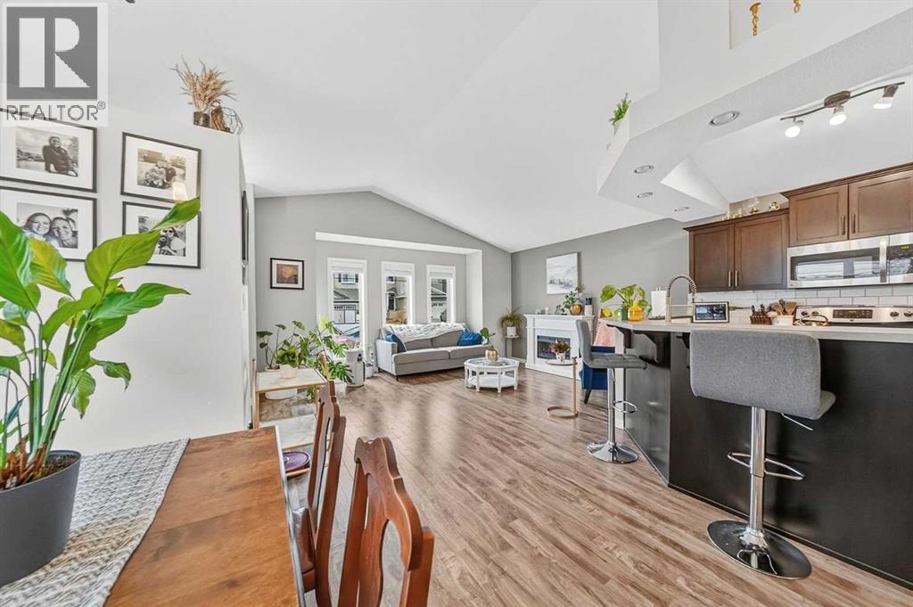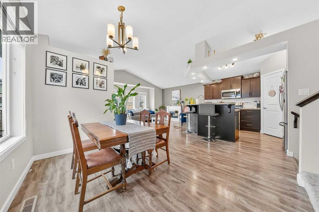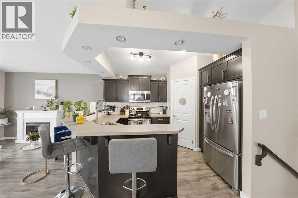 Welcome to Copperwood, one of Lethbridge’s most sought-after family-friendly communities. This well-maintained 4-level split home offers 3 bedrooms, 3 bathrooms, central air conditioning, underground sprinklers, and a functional layout designed for modern living.The main floor features a bright open-concept design with a spacious living room, dining area, and kitchen, all enhanced by vaulted ceilings and large windows that bring in natural light. The kitchen is equipped with stainless steel appliances, a generous peninsula with raised bar seating, and a stylish ceiling detail that adds character to the space. Durable laminate flooring runs throughout the main level, and convenient side access leads directly to the backyard.Upstairs, the primary bedroom includes a walk-in closet and a private ensuite with a large shower, extended vanity, ample storage, and tile flooring. This level also features a second bedroom, a full bathroom, and the convenience of upper-floor laundry.The third level offers a comfortable family room, a third bedroom, and another full bathroom— ideal for guests, teenagers, or a flexible living space.The basement is partially finished with luxury vinyl plank flooring and provides excellent storage, with potential to customize as a home gym, office, playroom, or additional living area.Outside, enjoy a low-maintenance yard complete with underground sprinklers, decorative rock landscaping, and a private side patio—perfect for relaxing or entertaining. A large rear parking pad provides space for two vehicles and the opportunity for a double car garage.Located close to parks, playgrounds, schools, shopping, and Cavendish Farms Centre, this move-in ready home offers the perfect balance of comfort, functionality, and location. (id:63190)
