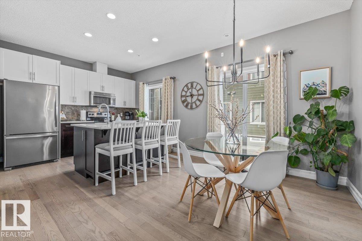 Welcome to this privately situated 2 storey CORNER UNIT in the sought after community of Magrath. Enjoy the warm summer months making the most of the AIR CONDITIONING featured in the home. Upon entry, you'll find HARDWOOD FLOORING throughout the main floor. The inviting living room offers ample space for lounging or hosting. Making your way down the hall, you will enter the large kitchen area with dining space. This kitchen features an abundance of counter space with an ISLAND, perfect for those who love to cook. Upstairs, you'll find 3 spacious bedrooms, perfect for a first time homebuyer or those looking for a bit more space. The primary bedrooms features a walk-in closet and the convenience of an ENSUITE BATHROOM. Enjoy the convenience of a DOUBLE ATTACHED GARAGE, with lots of storage space. The FRONT YARD is the perfect spot for a barbecue in the summer months. Just minutes from nearby amenities such as shopping, grocery stores, and the Whitemud ravine! (id:63190)