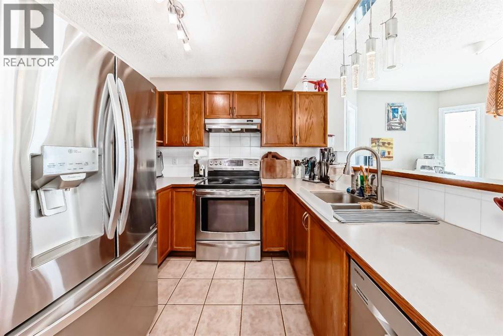 Welcome to this beautifully maintained 3-bedroom, 2.5-bathroom END-UNIT townhome offering OVER 2,000 sq ft of finished living space in the highly desirable Scenic Gardens community. IDEALLY located just a SHORT 5-MINUTE WALK TO THE LRT AND TWO SCHOOLS, this home combines convenience with comfort—making it a perfect choice for both homeowners and investors.The bright main floor features a welcoming tiled entry and kitchen with maple cabinetry, stainless steel appliances, LED lighting, and a dedicated dining area. The spacious living room is enhanced by rich hardwood flooring and a central gas fireplace, creating a warm and inviting space for everyday living and entertaining.Upstairs, you’ll find 3 generous bedrooms and two full 4-piece bathrooms, including a primary ensuite. All bathrooms are finished with tile tub surrounds for a clean, modern touch.The fully developed lower level offers a large rumpus room with durable laminate flooring, a separate office, and a laundry room with ample storage—perfect for growing families or those working from home.An attached garage provides secure parking and direct access to the home. Situated in a well-managed complex, this property offers both peace of mind and long-term value.Don’t miss this exceptional opportunity in a sought-after location! (id:63190)