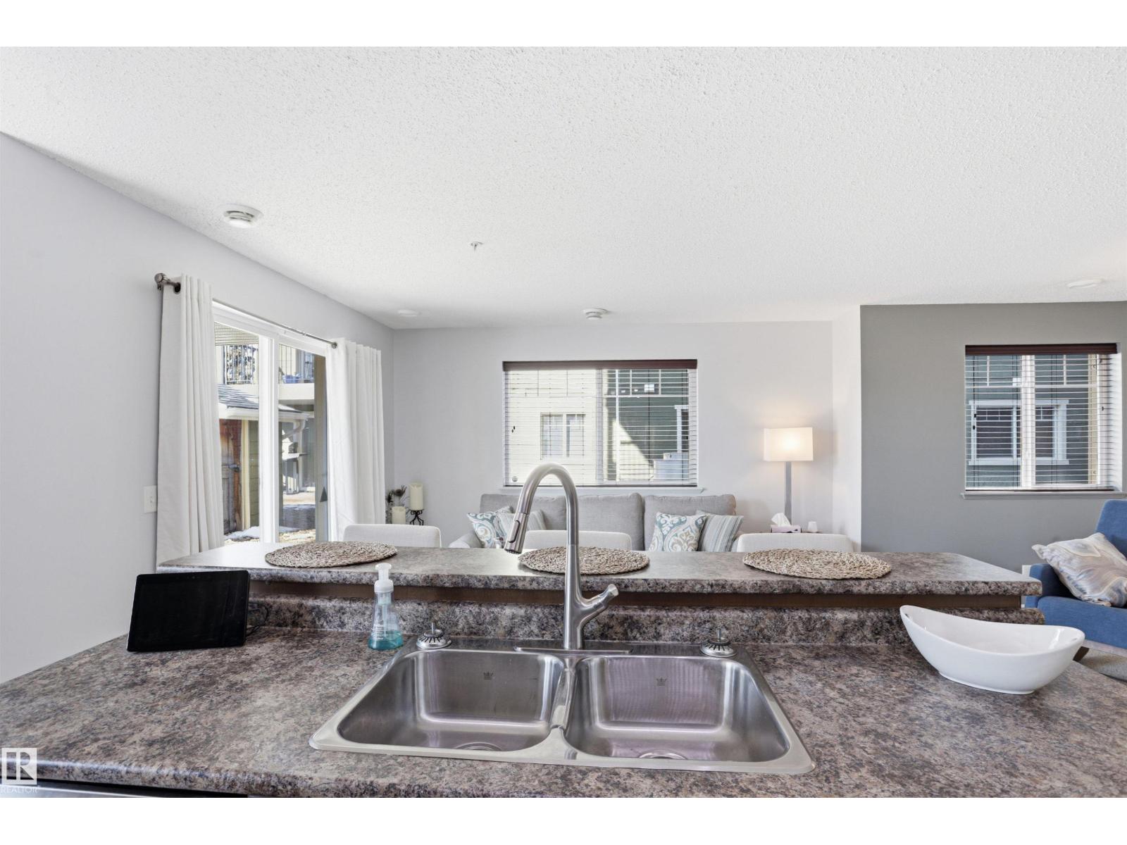 Beautifully maintained main floor end unit offering 1,016 square feet with 2 bedrooms and 2 full bathrooms. The open concept layout features a bright kitchen, dining area, and living room filled with natural light from the many windows this end unit provides. The kitchen offers a large island with eat-up bar seating and a pantry for added storage. The living room has a large sliding door leading to your quiet patio. The spacious primary bedroom features a beautiful ensuite and a large walk-in closet. The second bedroom is ideally located on the opposite side of the unit, right beside the main full bathroom. You’ll also appreciate the laundry room near the front entrance along with a generous entry closet. This unit comes with an underground parking stall. Conveniently located close to shopping and with quick access to Whitemud Drive and Anthony Henday. (id:63190)
